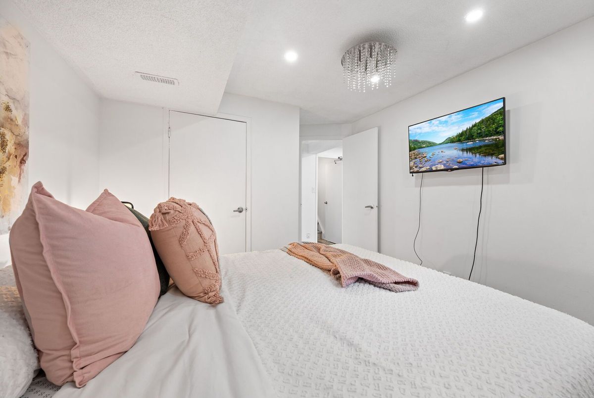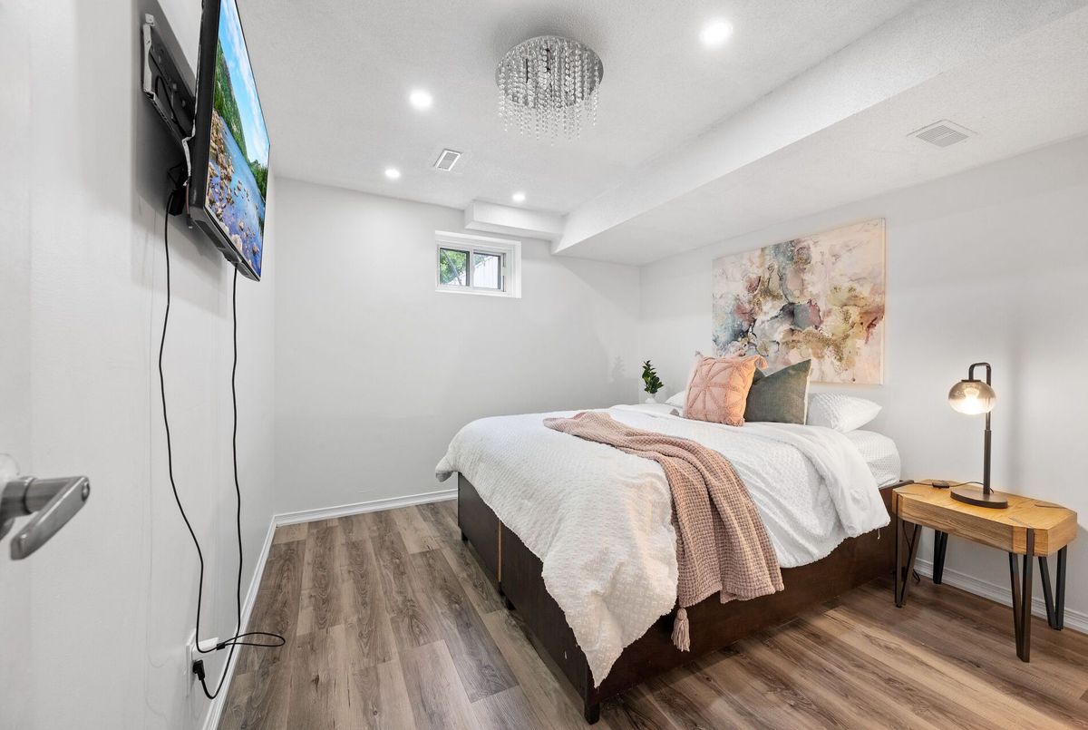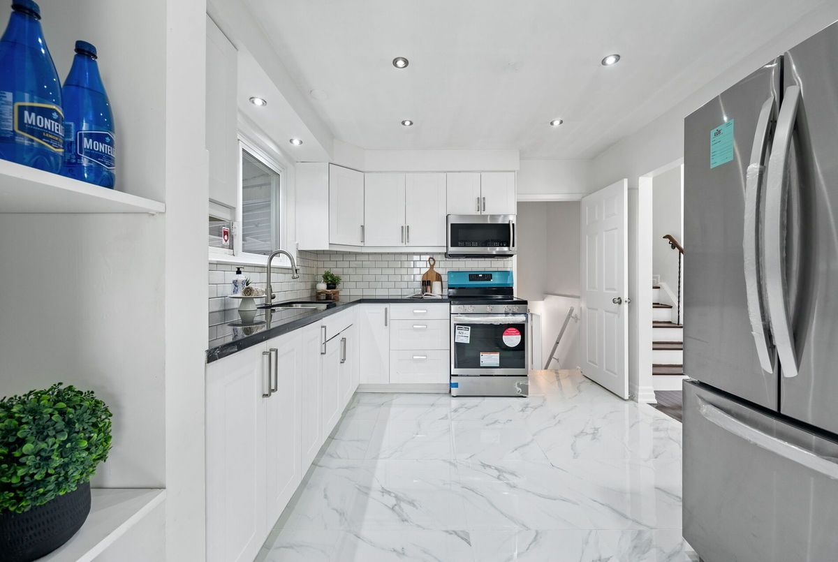 Welcome to this beautifully maintained 3 level back split offering comfort, convenience & versatility in one of the most sough after neighbourhood. Featuring 3 spacious bedrooms on the upper level & a fully self contained basement apt. with separate entrance ideal for extended family or rental income. Step into a fully renovated kitchen featuring brand new marble tile flooring, repainted cabinetry, Stainless Steel appliances including brand new 2025 Fridge & Electric Range. Bright Pot Lights illuminate the main living room & kitchen creating afresh & welcoming space. The entire home has been freshly painted in a clear white finish & light fixture have been installed thro' out. The lower level features 1 Bed basement apt. complete with a kitchen, new flooring, a stand in shower washroom and appliances including a 2025 Fridge & 2024 electric range, Air Conditioner 2025. The renovated stairs & flooring leads to a comfortable move in ready basement space entrance with pot lights. Outside the home boasts extensive upgrades designed for entertainments & curb appeal. A new concrete pad & stairs with stylish railing enhance the front entrance along with the concrete pad below the large front window. In the backyard a spacious painted concrete patio creates the perfect space for gatherings, complemented by a custom fire pit are built with patio stones in the corner. A wooden gate has been added next to the main entrance for extra privacy. The concrete area around the basement entrance has also been freshly painted. The right side backyard fence have been built in 2023 & painted white. Enjoy the convenience of being just minutes of top rated schools, major shopping malls, public transit, parks & all essential amenities whether you are a 1st time buyer, a growing family or an investor. This home checks all the boxes