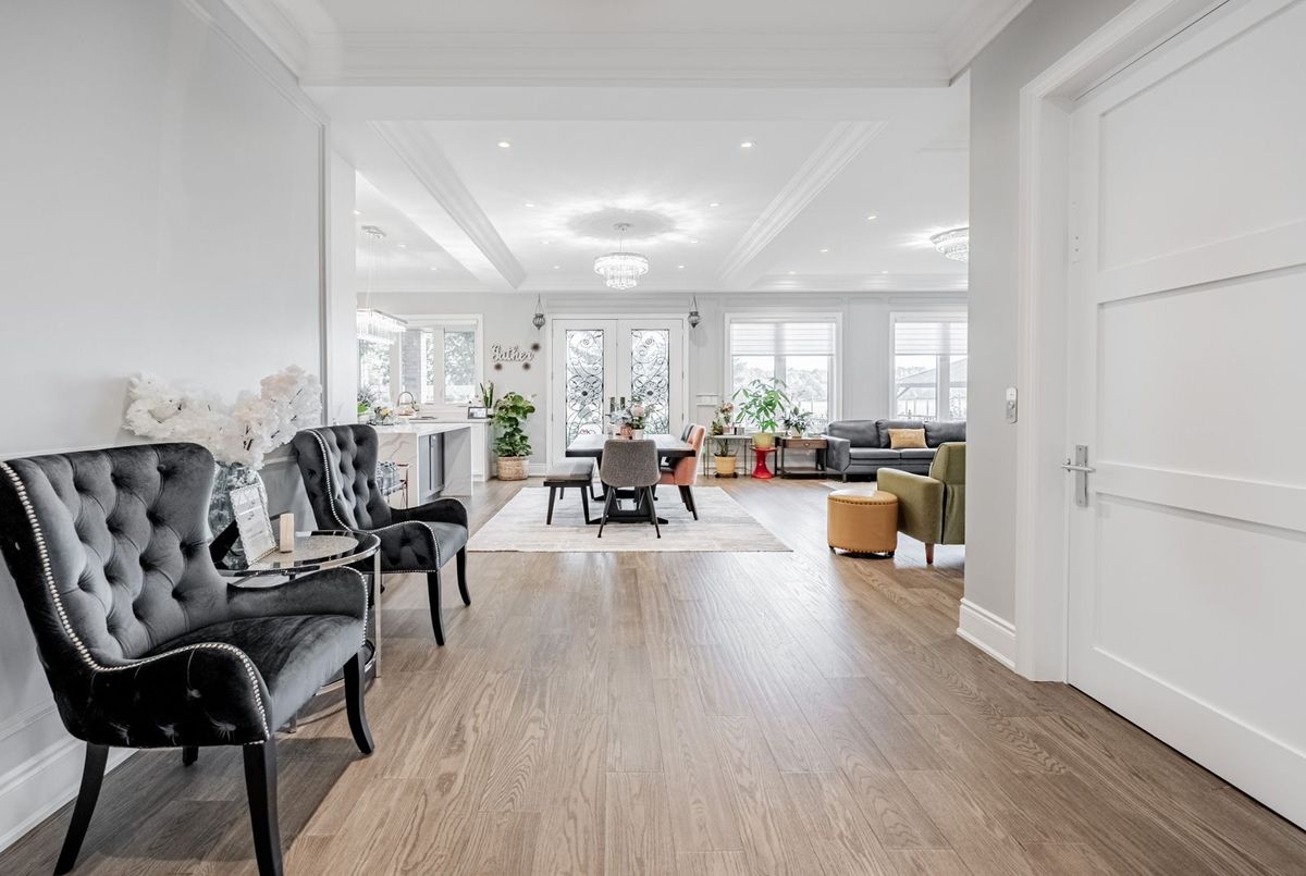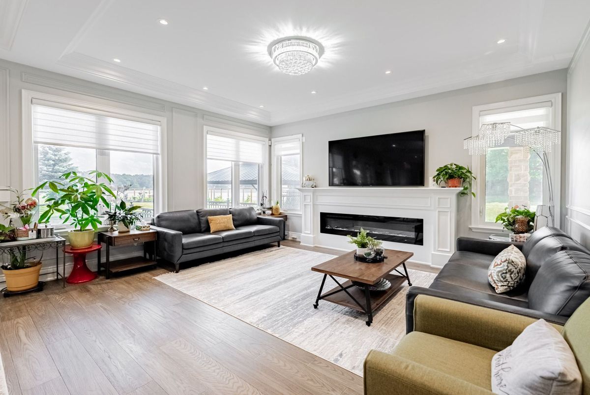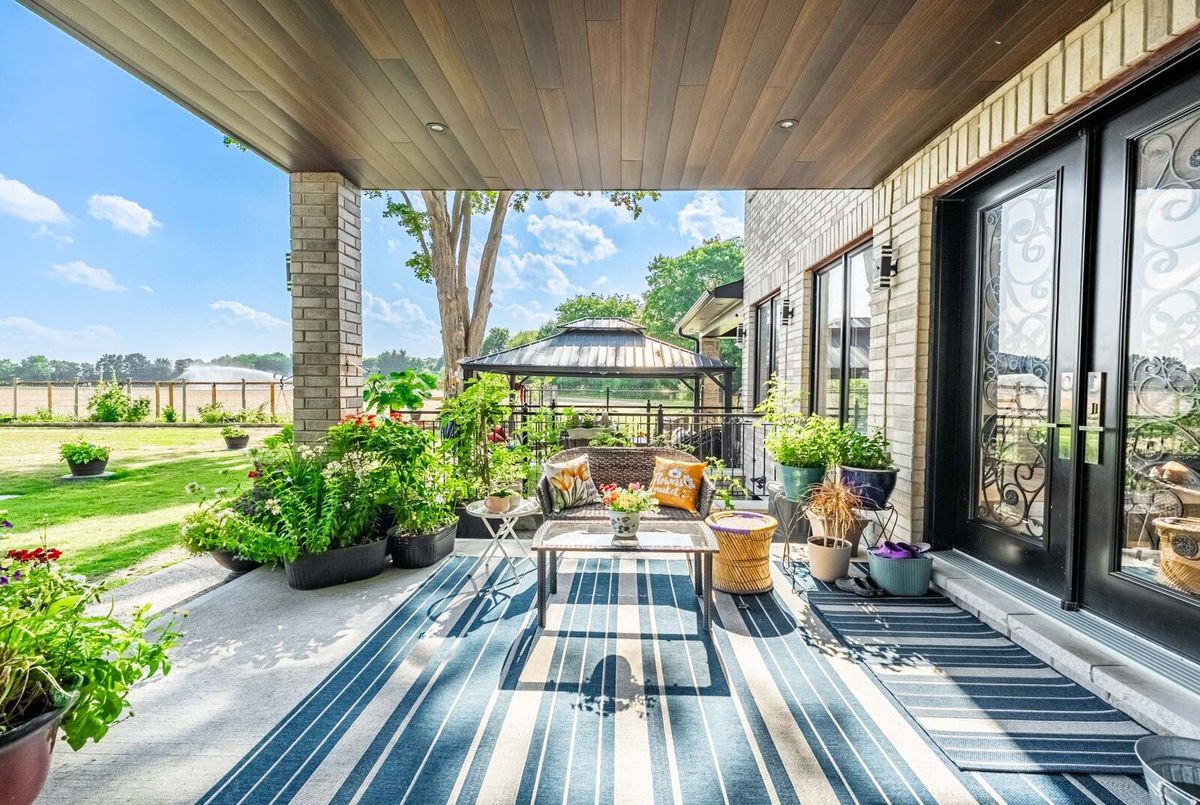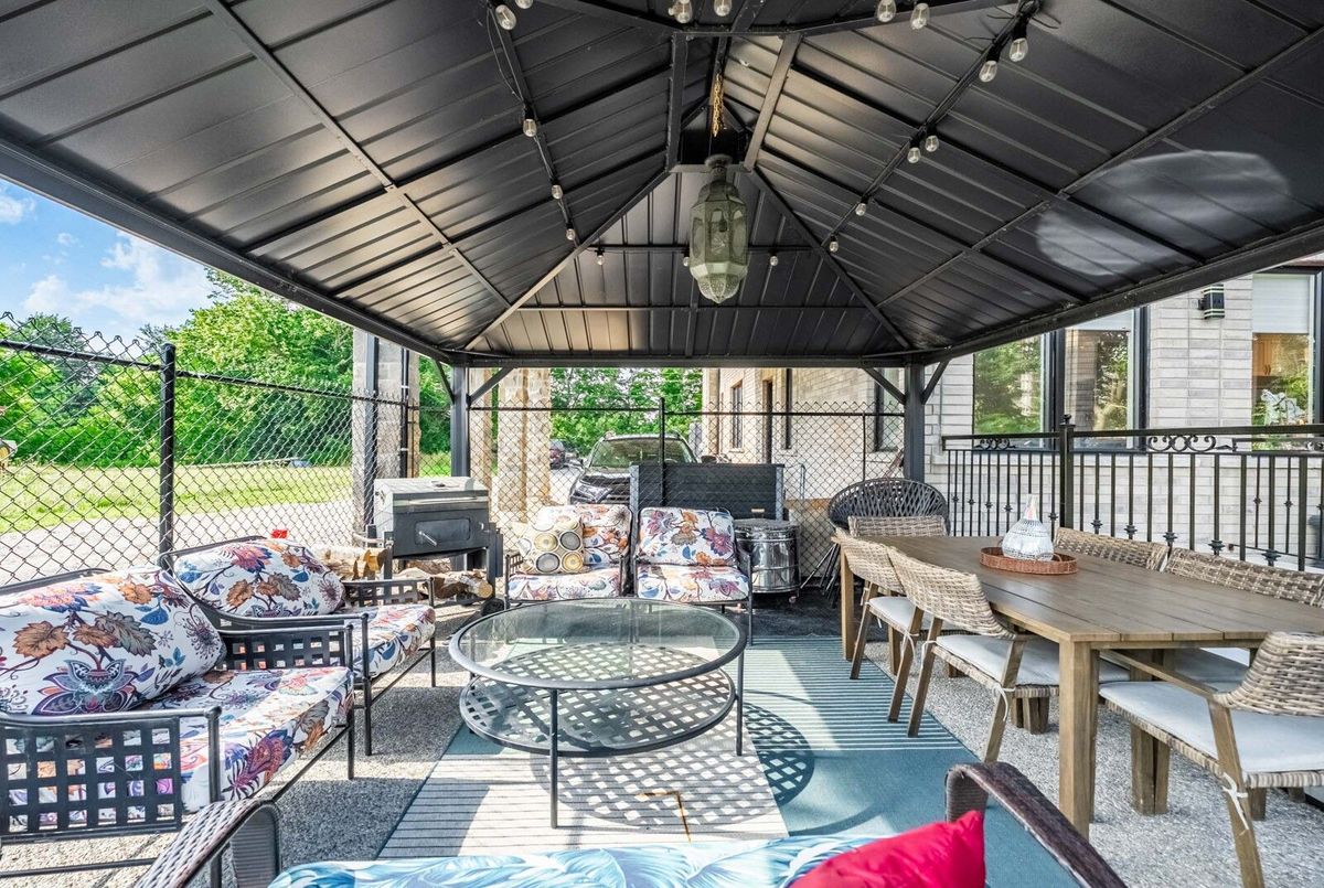 Step into luxury in this executive residence featuring a grand open-concept layout and impeccable designer finishes throughout. The main floor impresses with 10 Ft coffered ceilings, hardwood flooring, and a gourmet kitchen with high-end appliances. Spacious principal rooms offer elegance and function, including a cozy family room with gas fireplace and a dedicated office. Upstairs with 9 Ft Ceilings unwind in a lavish primary suite with a spa-like ensuite and custom walk-in closet. Additional 3 bedrooms are generously sized with ample storage with Walk in Closet & Ensuite. With its own Private Entrance, Kitchen , Living and ample storage, the Nanny Suite balances privacy with convenience an ideal solution for modern family living. Currently Rented for $1550 Per Month. It also has a 2 Separate basement with Separate Entrance. One side with 2 Bed & 2 Wash with in law suite with Kitchen & Separate Laundry. Other side is with Huge Rec Room with Wet Bar & Theatre which is walk up the Yard. Basement also has Heated Floor . This Exceptional home is equipped with a private in-home Elevator, seamlessly connecting all levels for maximum comfort and accessibility. Enjoy serene outdoor living with multiple covered patios, a charming gazebo, and a spacious deck perfect for entertaining or relaxing. The home boasts a beautiful blend of modern design and rustic charm with stone and wood finishes, large windows, and a beautifully landscaped yard. Whether youre savoring sunsets on the balcony or enjoying peaceful mornings on the patio, this home offers luxury and tranquility in perfect harmony. Ideal for those seeking space, privacy, and refined rural living.This House is A true blend of style, comfort, and sophistication.