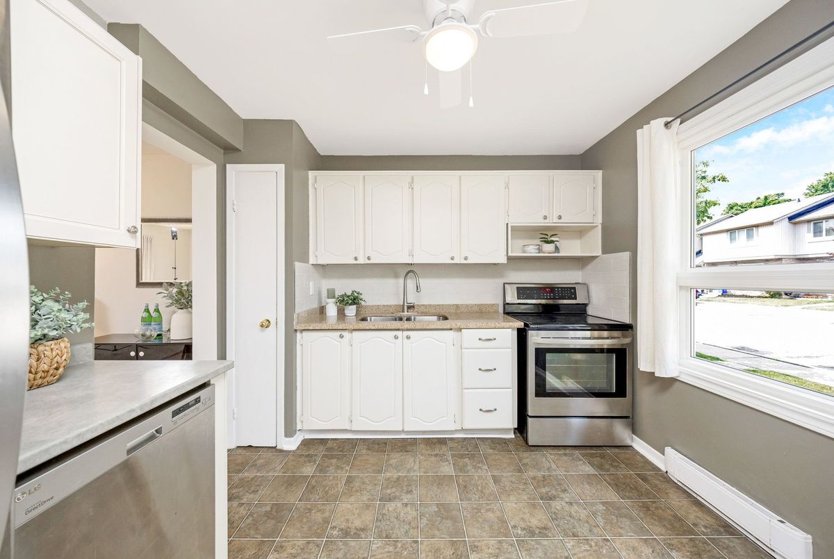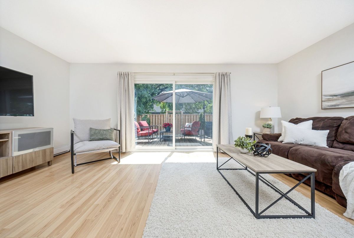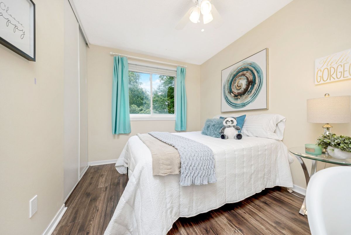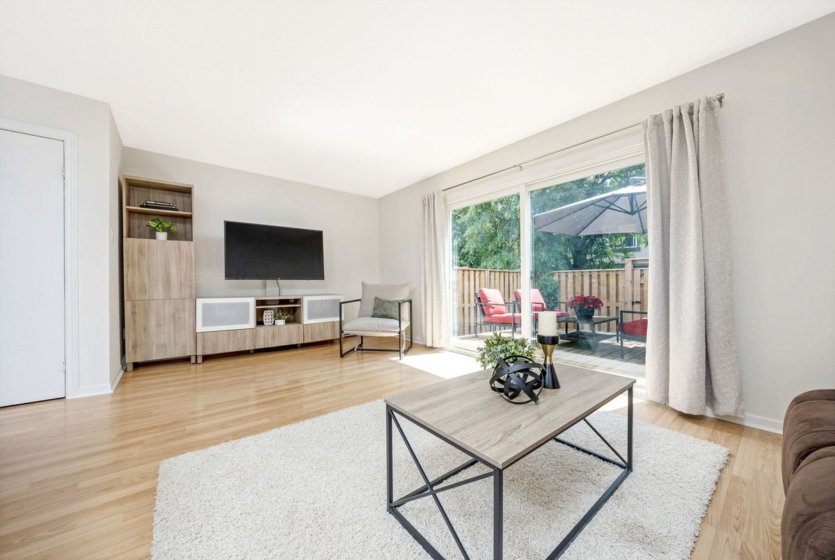UPDATED, SUNNY and surrounded by TREES and WALKING TRAILS in sought-after Dorset Park! This 3-Bedroom townhome is perfect for FIRST-TIME HOME BUYERS and EMPTY-NESTERS and is located SET BACK in the well-maintained and quiet Wilwood community. This wonderful home has charming curb appeal and room to breathe! Fully fenced and backing directly onto the WIDE OPEN greenspace, it is the perfect area for the kids to safely play. The WHITE KITCHEN has extra built-in cabinets and countertops, stainless steel appliances and a pantry. There is laminate flooring throughout the living/dining room, upper hallway and one of the bedrooms, a large open-concept dining room and living room with patio doors to the PRIVATE FULLY-FENCED BACKYARD. All rooms are very generous in size, updated electrical wiring (2017) and the home has been freshly painted in soothing neutral tones by Benjamin Moore (2025). The FULLY FINISHED BASEMENT is bright and features a massive recreation room, laundry room and loads of additional storage space. The rear yard is truly a peaceful retreat with a large deck, overlooking mature trees - the perfect quiet spot to unwind. Additional features include: one exclusive use parking space, one additional parking space for visitor use, and an abundance of 15-hour street parking, new light fixtures in hallways and bathroom, ceiling fans in each bedroom, and the main floor staircase to upstairs was just freshly carpeted (July 2025). It is ideally located close to all amenities: walk to fantastic restaurants, Tim Horton's, English and French schools, parks, walking trails, shopping, movie theatre, library, public transit, GO Train and quick and easy highway access. Welcome Home this is the one you have been looking for!