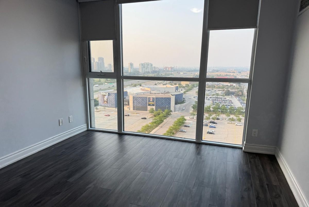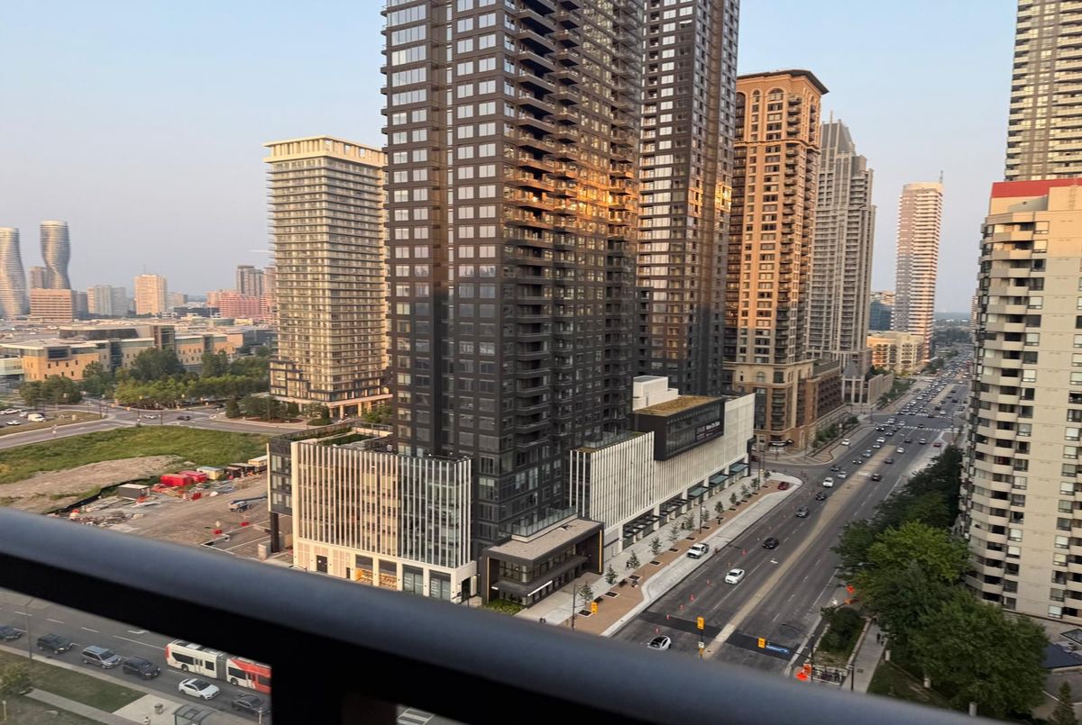 Gorgeous Corner Unit with Unobstructed Southeast Views Overlooking Square One!Bright and spacious 2 Bed + Den layout (865 sq ft interior) with 9-ft floor-to-ceiling windows, 2 full bathrooms with tubs, and a modern kitchen featuring granite countertops and generous storage. The extended primary bedroom includes an ensuite and walk-in closet. Enjoy top-tier amenities: 24-hr security, indoor pool, gym, sauna, tennis court, bowling, party room, theater, guest suites, and more. Steps to Square One, Sheridan College, Celebration Square, and transit. Just move in and enjoy the lifestyle!