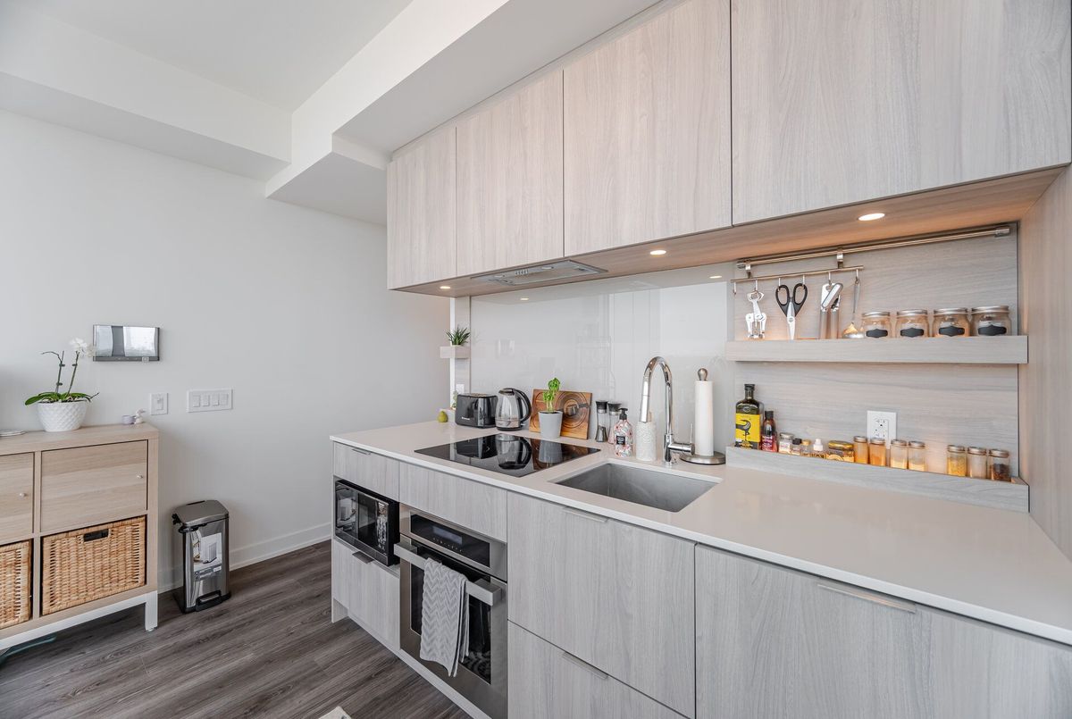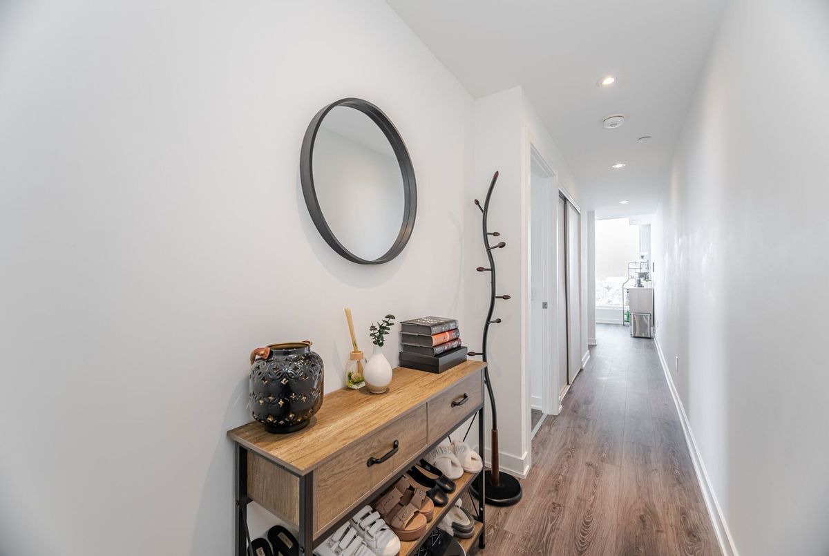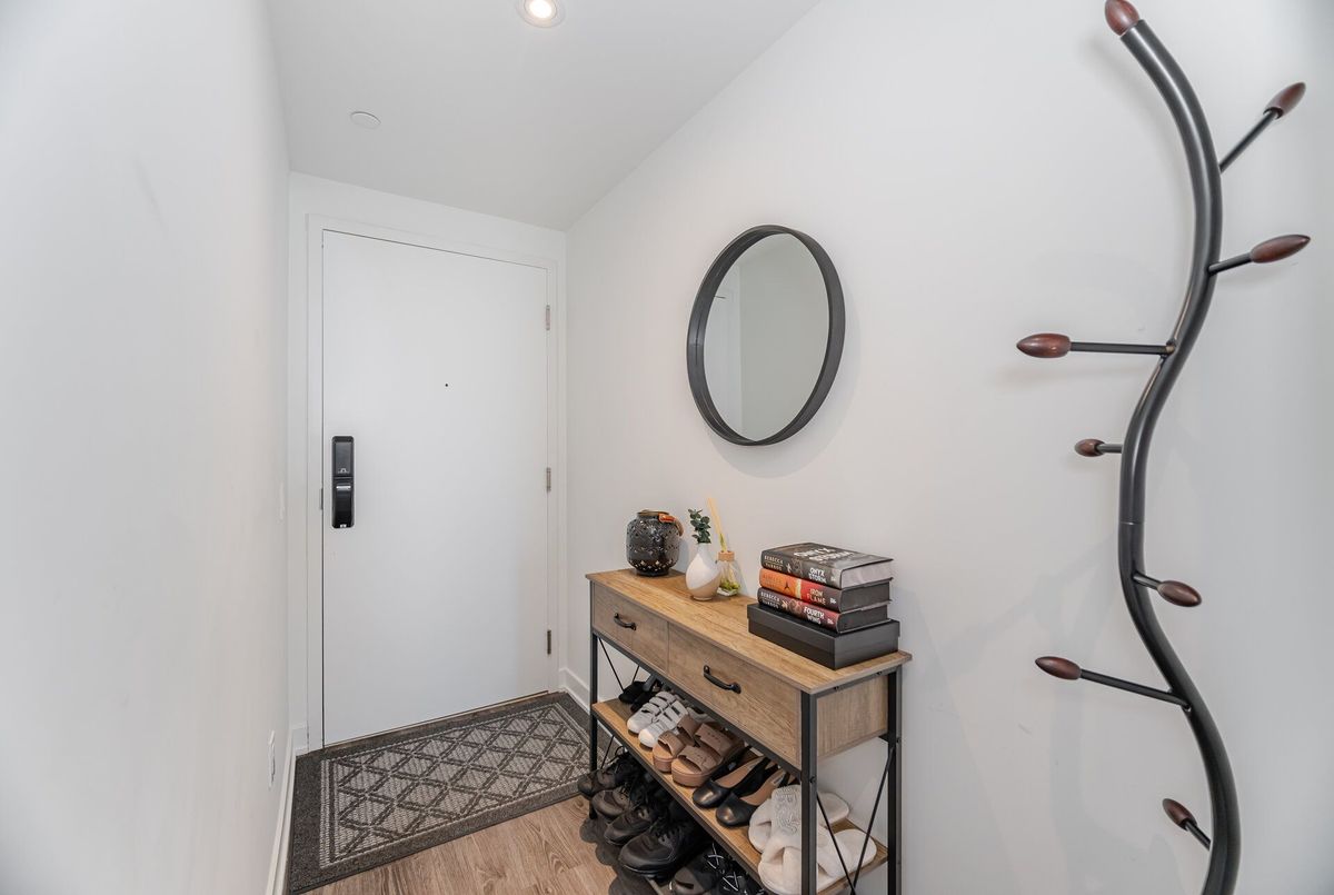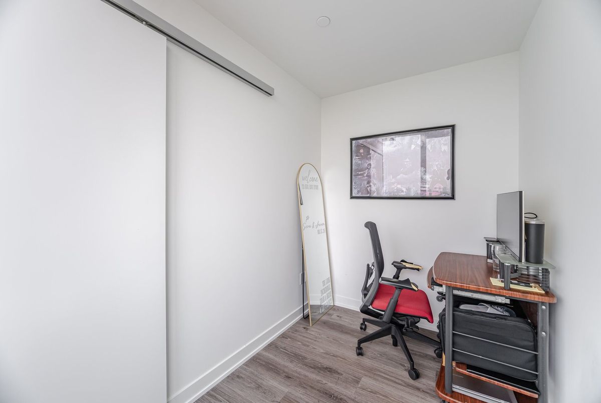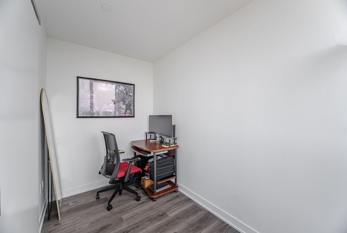 Welcome Home To Westport Condos Located In The Highly Coveted, Vibrant Waterfront Community Of Port Credit. Experience Luxury Living At Its Finest With 5-Star, State-Of-The-Art Hotel-Inspired Amenities Right At Your Doorstep. Just 1 Year New, This Stunning Corner Suite Offers A Sleek And Modern Open-Concept Layout With Soaring 9-Ft Ceilings And Floor-To-Ceiling Windows. Open Concept Living And Dining Room With Walk-Out To Private Balcony Offering Panoramic Views Of The Skyline! Stylish Kitchen Features Built-In Appliances, Undermount Lighting And Contemporary Backsplash. Bonus Fully Enclosed Den Perfect For Home Office Or Guest Bedroom. Spacious Bedroom With Double Closet. Residents Can Enjoy Exclusive Access To 15,000 Sq Ft Of World-Class Amenities And Services Including 24-Hour Concierge, Fitness Centre, Rooftop Lounge, BBQ Areas, Party And Meeting Rooms, Guest Suites And More. Walking Distance To The Waterfront, Parks, Shops, Dining, Cafe's And The Endless Amenities Port Credit Offers. Multiple Commuting Options Including Port Credit GO, Transit And Easy Access To Highways. 1 Parking And 1 Locker Included.