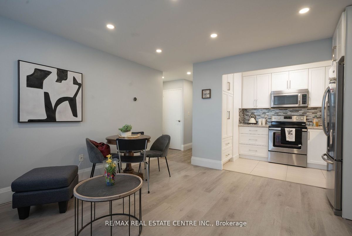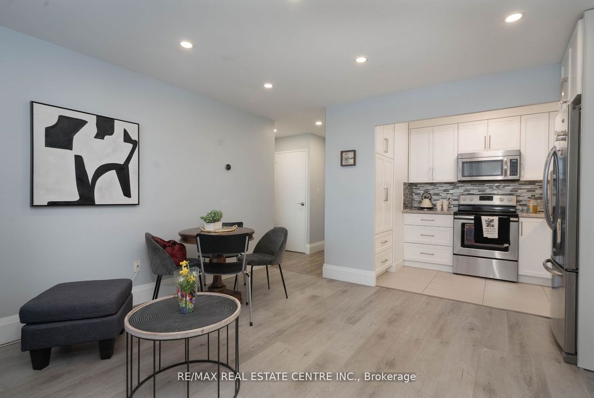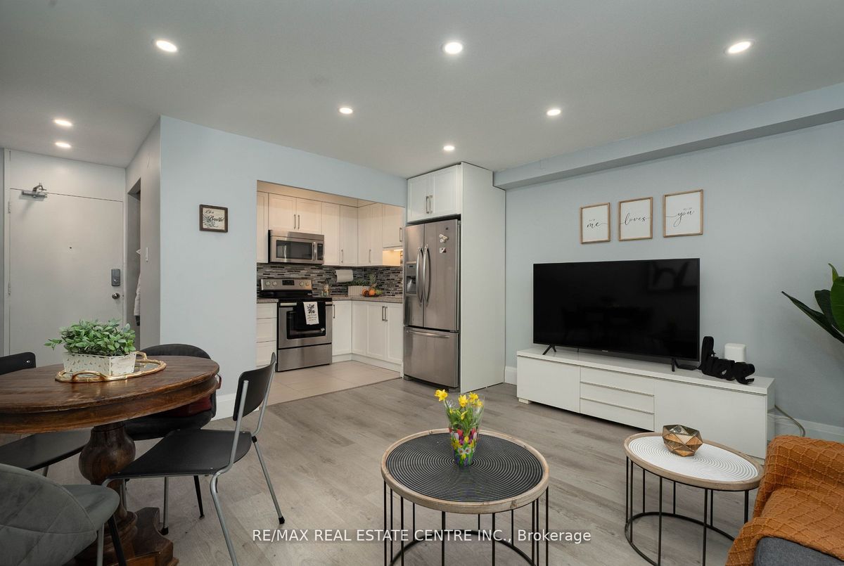 Incredible value in South Etobicoke! This beautifully upgraded one-bedroom unit offers all-inclusive living just steps from the TTC, Long Branch GO, Lake Ontario, No Frills, and local shops. Fully renovated with dropped drywall ceilings and LED pot lights, modern vinyl plank flooring, upgraded interior doors, fresh paint throughout, and 7-1/4 baseboards. Kitchen features granite countertops, custom cabinets, a full-size stove, and the largest fridge possible in the building with water and ice dispenser. Spacious open-concept layout leads to a large private balcony. Upgraded electrical panel. Maintenance fees are just $599/month and include heat, hydro, water, property taxes, digital cable, high-speed internet, underground parking, and locker. Well-managed co-op in a landscaped setting with outdoor pool, party room, meeting room, and laundry. A rare opportunity for first-time buyers, downsizers, or investors looking for affordable, stress-free living in a growing community. Fridge with water/ice dispenser, full-size stove, upgraded electrical panel, all light fixtures, custom cabinetry, granite counters, upgraded interior doors, new vanity, fresh paint, pot lights, 7-1/4 baseboards, underground parking, locker.