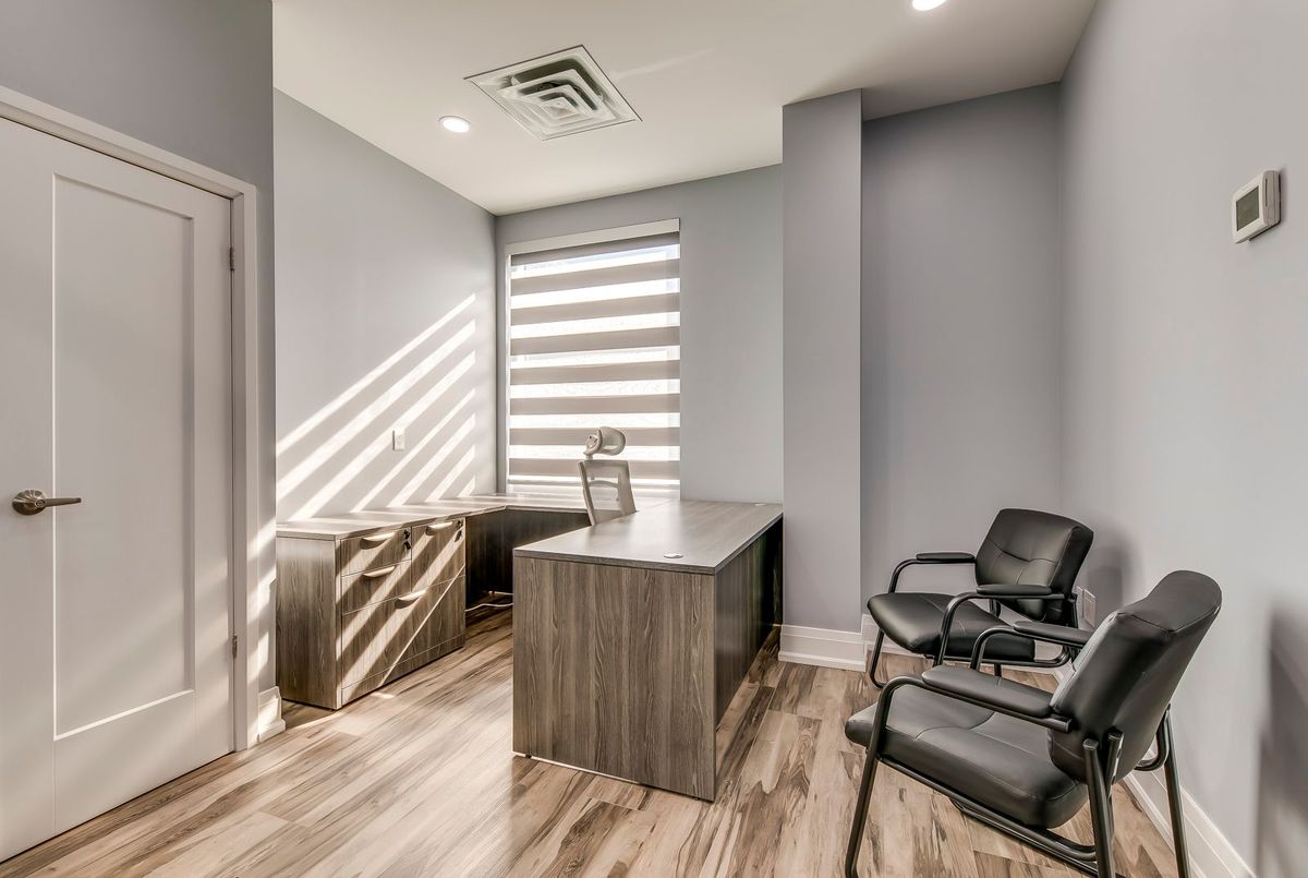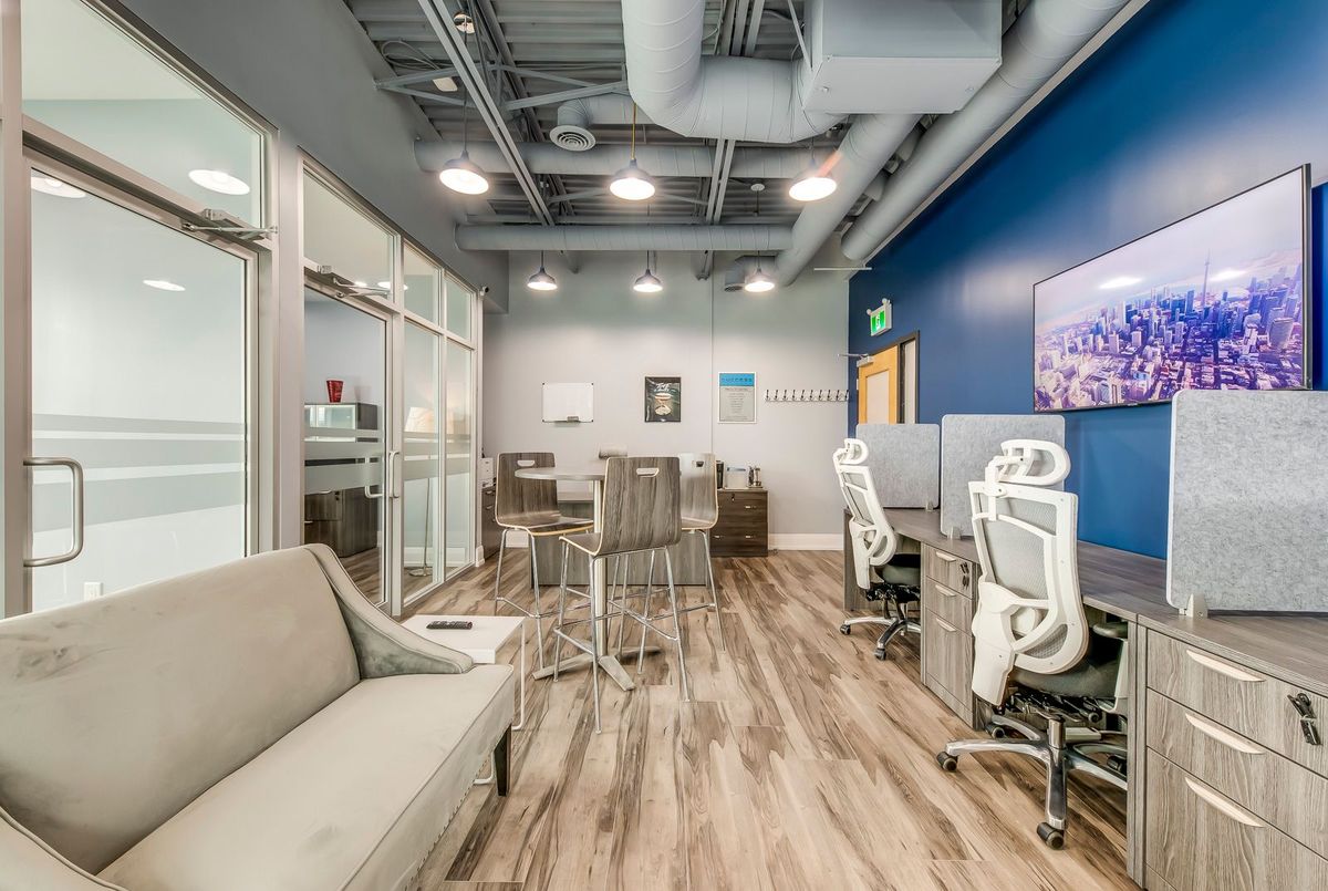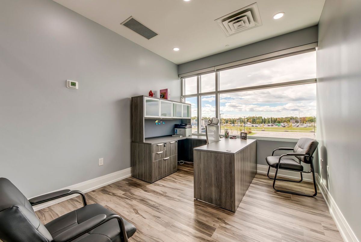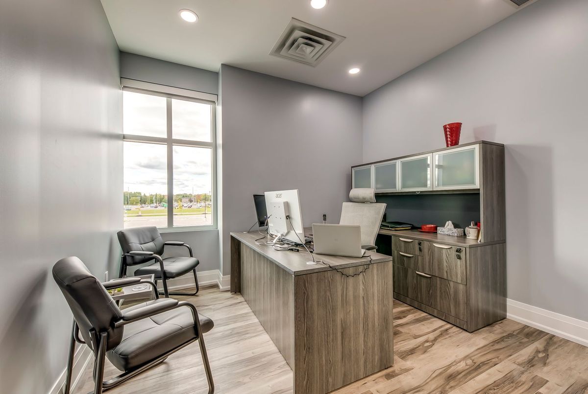 Flexible, serviced and furnished modern office room with large windows for rent, designed for professionals across industries such as real estate, mortgage, law, accounting, immigration, IT, media, services and more. Discover this recently built prime corner office unit with plenty of natural light. Located on the second floor of a fully accessible two-story building, offers convenience and a professional atmosphere with excellent visibility and ample free surface parking, situated at the Oakville & Burlington border. Close walk to many retail amenities with public transit at the door. Enjoy access to high-speed internet, printer, scanner, kitchen area, spacious boardroom, elevator, bathrooms, utilities and ample parking ensuring a seamless work experience.