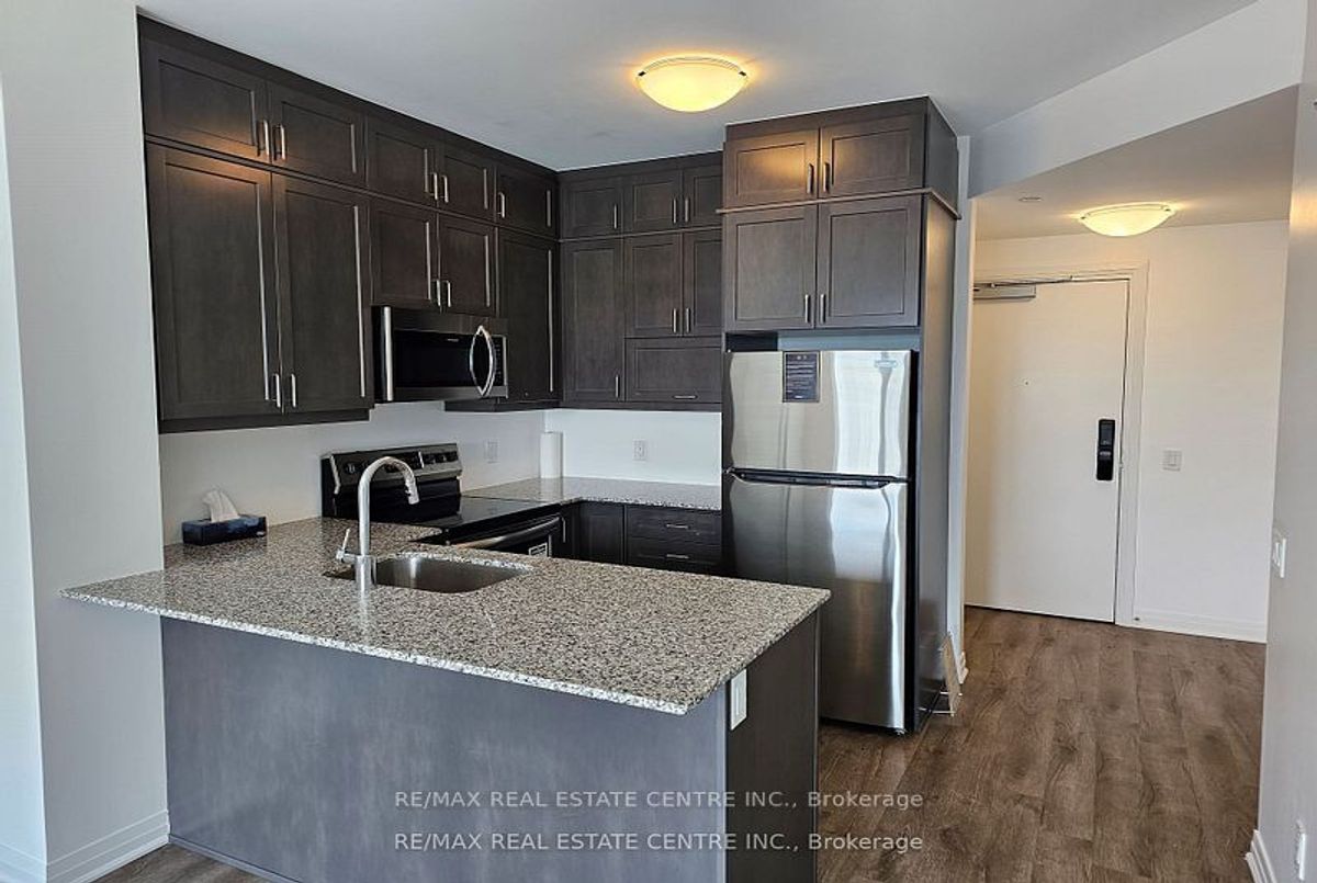Bright & Spacious 1-Bedroom in 5 North Condos, Oakville North! Modern 3-year-old Mattamy unit with 9 ft. ceilings, open concept layout, sleek kitchen with quartz counters, extended cabinets & stainless steel appliances. Enjoy unobstructed views from your private balcony on the same floor as the stunning rooftop terrace. Smart home features include keyless/fingerprint entry, touchscreen controls, and integrated lighting/heating. Comes with 1 parking space and a locker on the same floor as the unit. Building amenities: Rooftop BBQ terrace, party room, fitness centre & more. Prime location-steps to shops, dining, transit & minutes to Oakville Hospital, 403/QEW.