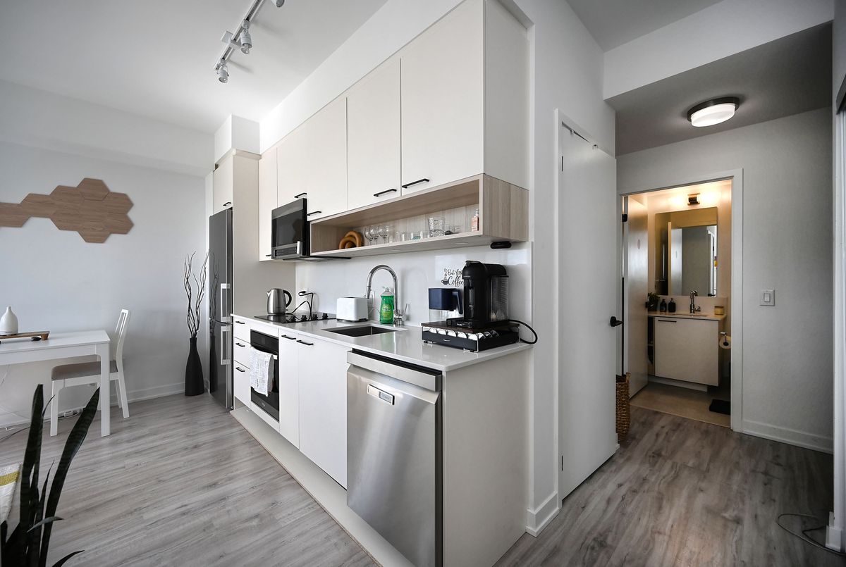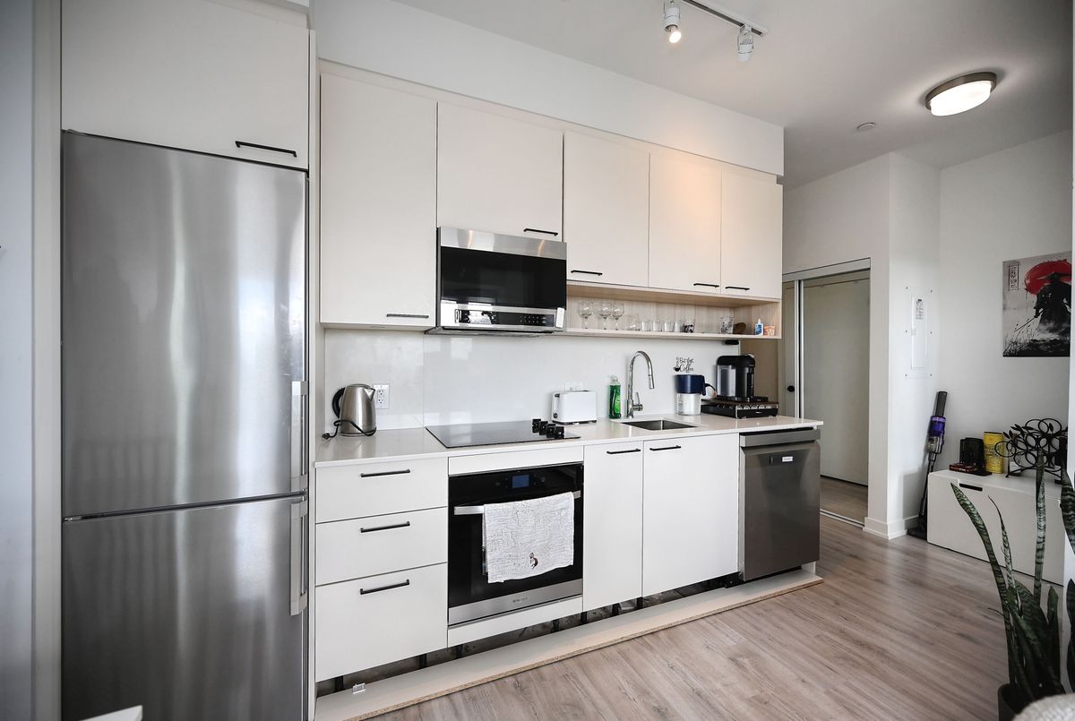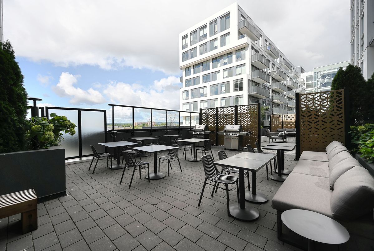 Welcome to The Bronte! This boutique-style condominium is perfectly situated in Oakville's historic Old Bronte community, offering the best of modern living in a charming and well-connected location. This spacious southwest-facing 2 bedroom, 2 bathroom CORNER suite comes complete with parking, locker, and a generous 75 sq. ft. balcony, ideal for enjoying fresh air and natural light. Inside, the suite features thoughtfully designed interiors with 9 ceilings, stylish laminate floors, quartz countertops, tiled backsplash, stainless steel appliances, and upgraded finishes throughout. The open-concept layout creates a bright and inviting space, perfect for both everyday living and entertaining. Residents of The Bronte enjoy a wide range of lifestyle amenities that enhance both convenience and comfort. Amenities include a concierge, fitness centre, party room, multi-purpose room, and a modern lounge. Outdoor features include beautifully designed terrace that offers seating areas, a fire pit outdoor dining and BBQ area, along with a pet spa for your furry friends. Steps away from parks and trails, close to Oakville Trafalgar Hospital, groceries, shops, and a variety of restaurants. Commuting is seamless with two nearby GO Stations and quick access to major highways (403, 407, and QEW), making this the perfect home for professionals, families, or downsizers seeking a blend of style, comfort, and connectivity.