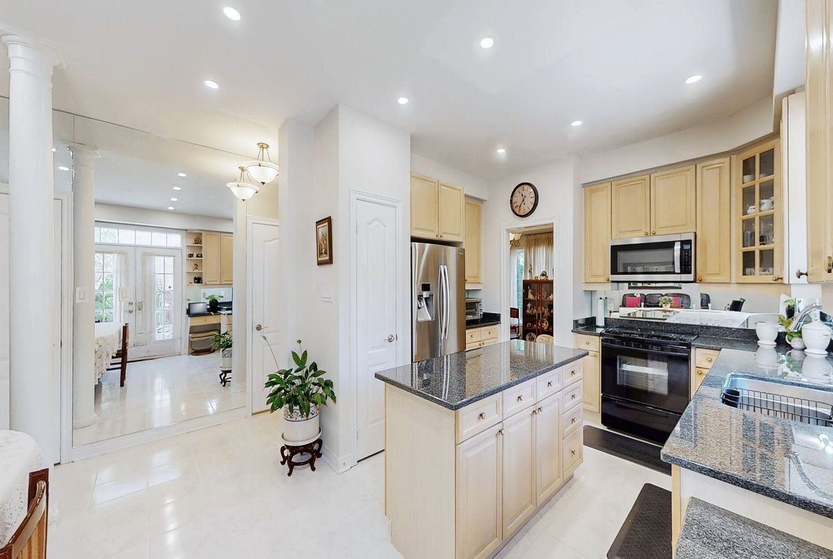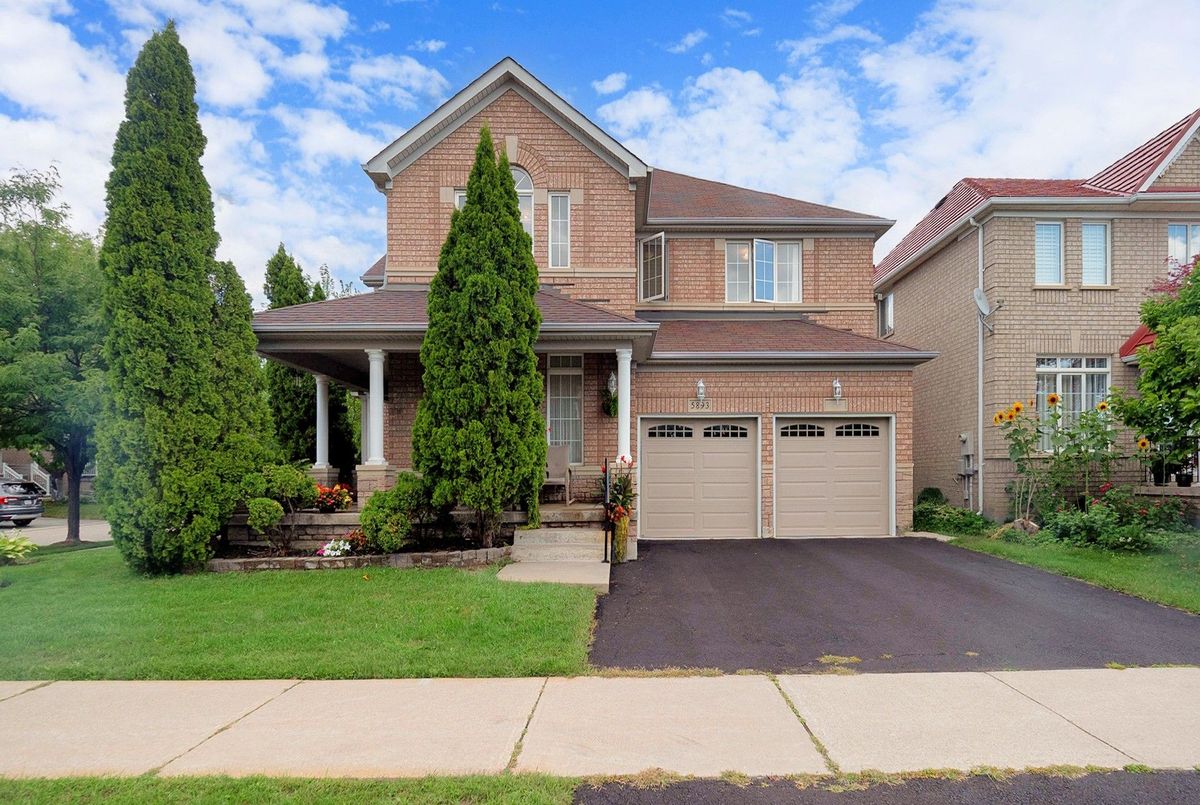 Welcome to 5893 Long Valley Rd, a beautifully maintained and thoughtfully upgraded home by the original owners. Mature trees, tasteful landscaping, and a wraparound porch create charming curb appeal, complemented by a spacious double car garage on a 68-foot-wide lot that hints at the upscale finishes within. Step inside to a grand two-storey foyer with chandelier and feature staircase. The open, airy layout highlights hardwood floors, LED pot lights, and modern ceramic tiles leading through the main level. The heart of the home is the gourmet island kitchen with solid granite countertops, stainless steel appliances, and space for a full dining table. This open concept space flows seamlessly into the family room with fireplace and large windows framing the private backyard. French doors lead to a stamped concrete patio surrounded by mature trees and flowering shrubs---an inviting outdoor retreat. The main floor also features a versatile living/dining room and a mudroom with laundry and garage access. Upstairs, a bright hallway connects four spacious bedrooms with cozy broadloom. The primary suite offers a spa-like 5-piece ensuite with double stone vanity and glass shower, while the second bathroom is equally upgraded with stone counters and glass enclosure. Located in sought-after Churchill Meadows, this home is minutes to Erin Mills Town Centre, Credit Valley Hospital, Erin Meadows Community Centre/Library, and top-ranked schools including Aloysius Gonzaga SS and John Fraser SS. Quick access to Hwy 403, QEW, and U of T Mississauga makes commuting easy. A vibrant, diverse community completes the package. This lovingly cared-for home blends elegance, comfort, and convenience---ready to welcome its next owners.