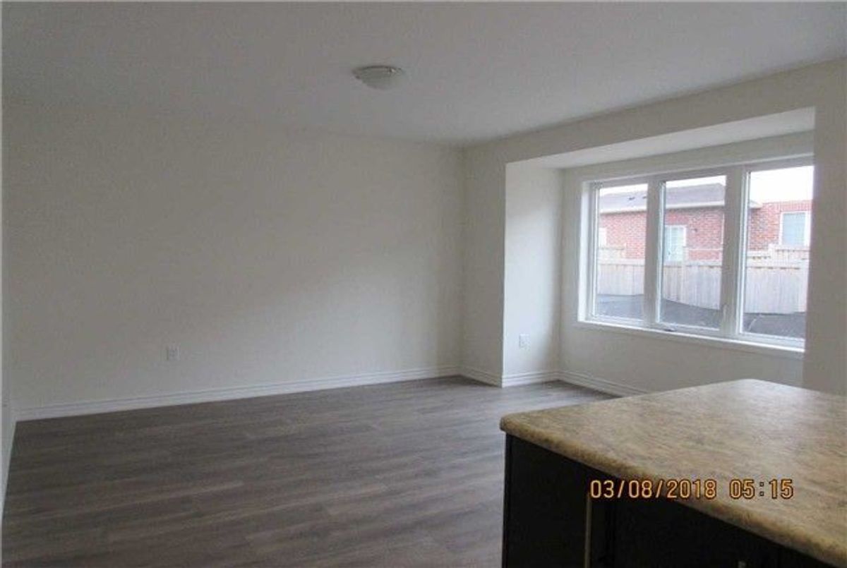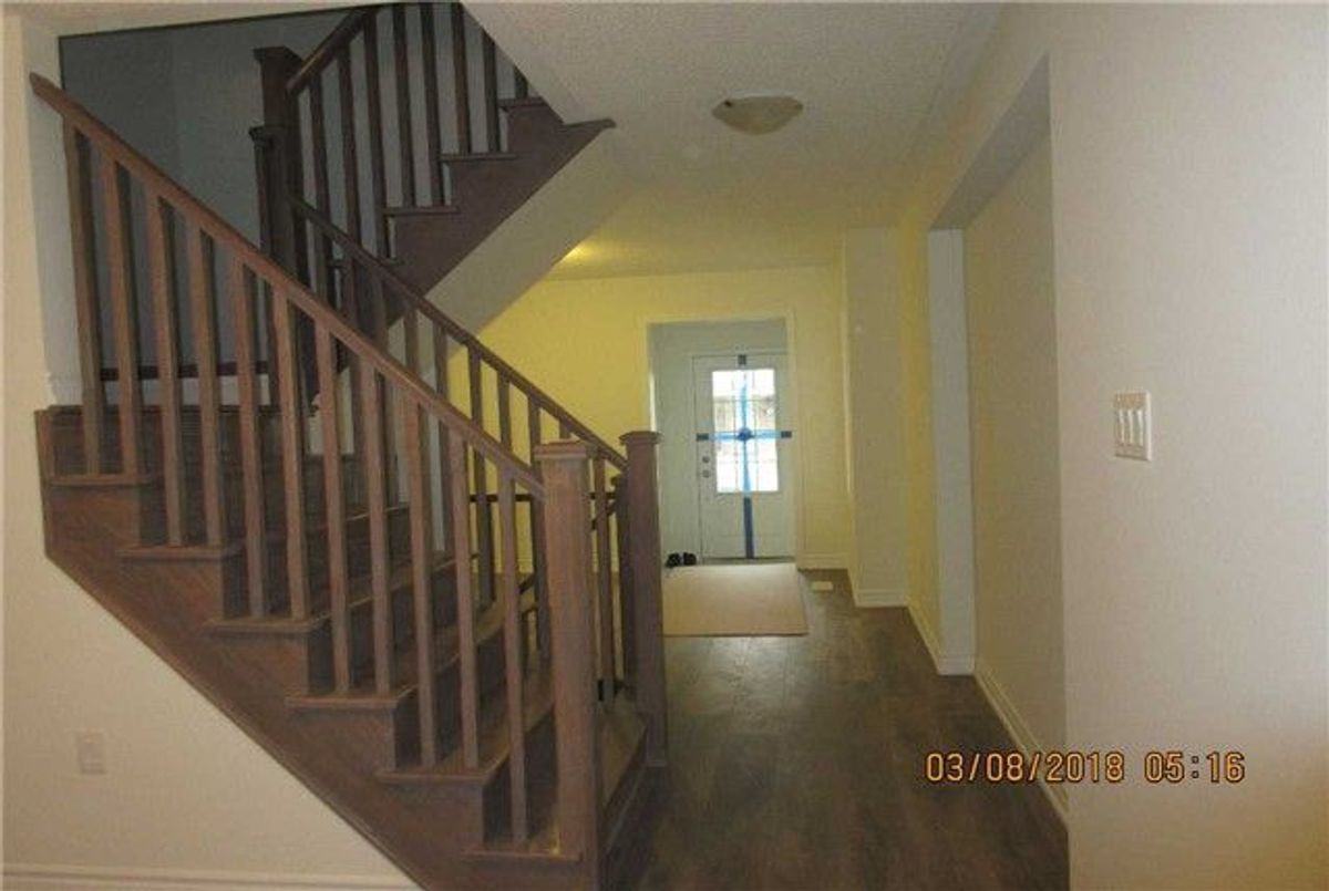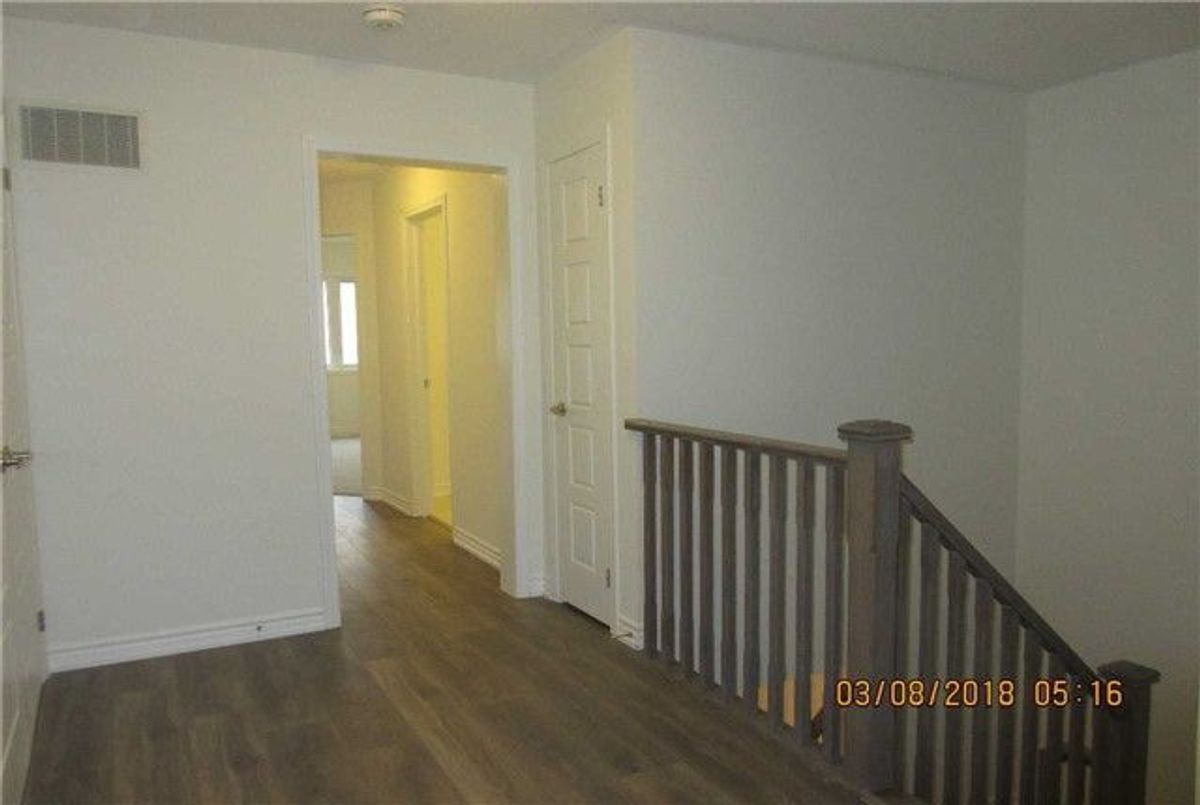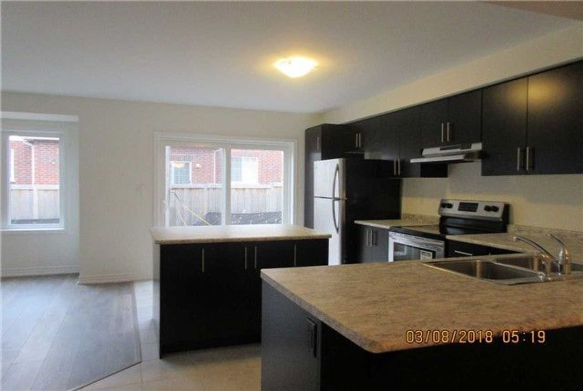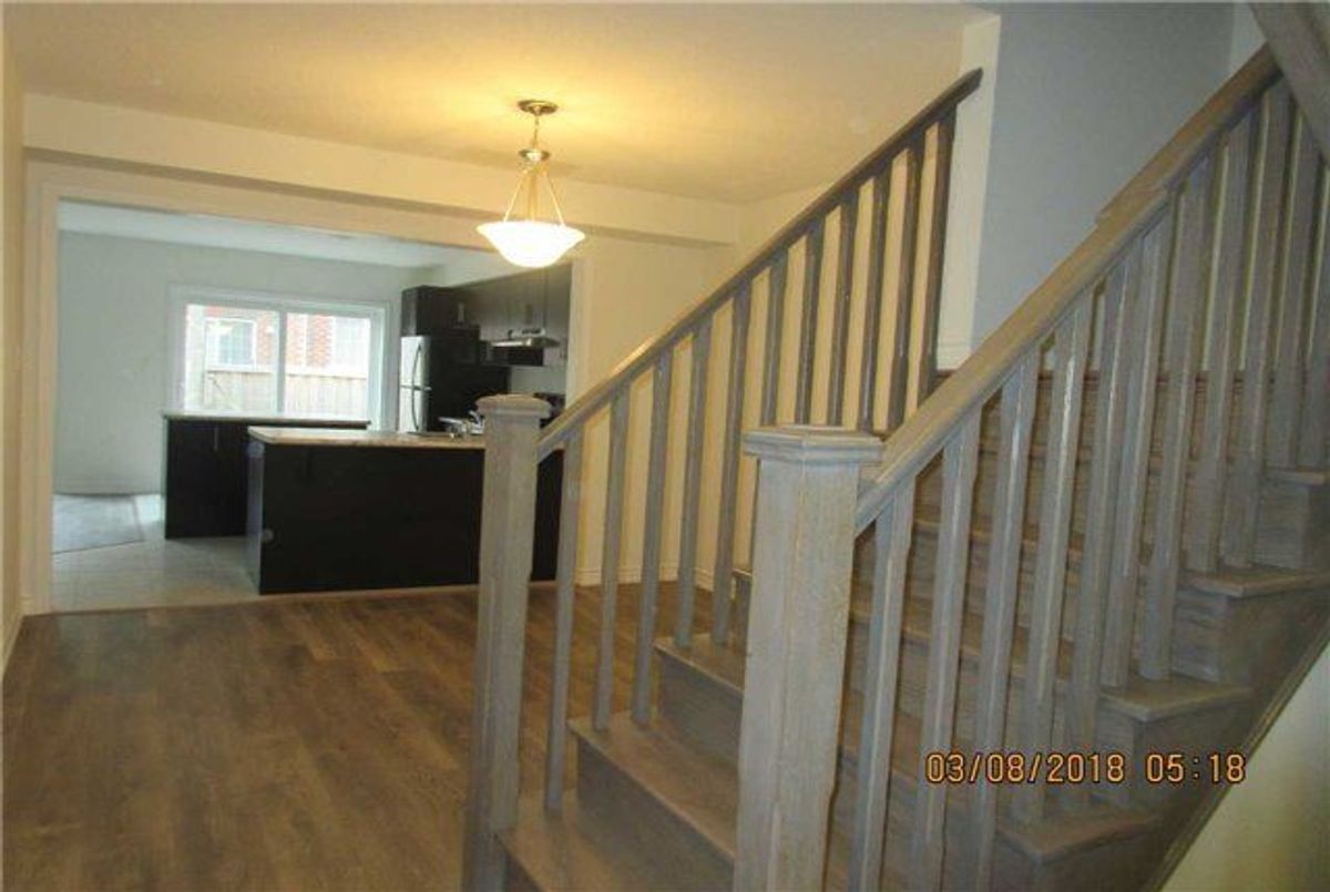 Bright and spacious 4-bedroom townhouse offering approximately 1,920 sq. ft. of well-maintained living space. Large windows fill the home with natural light. The open-concept layout features combined living, dining, and family areas, along with an eat-in kitchen equipped with stainless steel appliances. Oak staircase and laminate flooring on the main level and upper hallway add to the modern appeal. The primary bedroom includes a walk-in closet and a 4-piece ensuite. Convenient second-floor laundry. Ideally located near Hwy 401, schools, parks, and shopping.