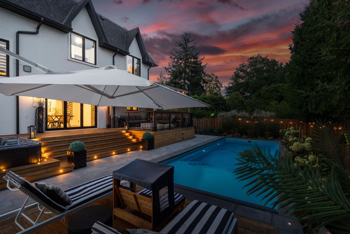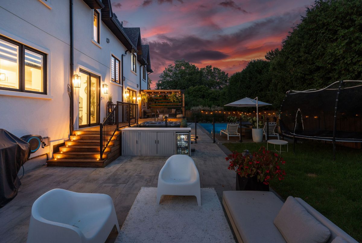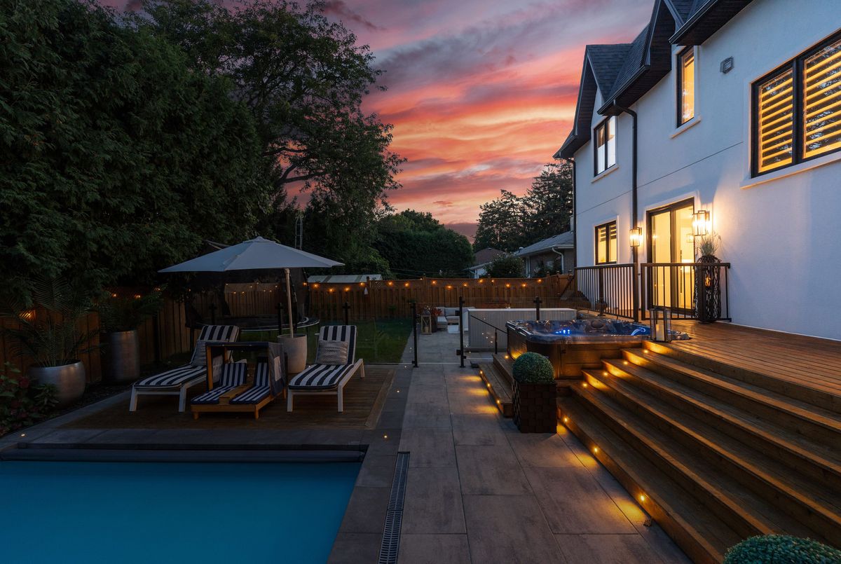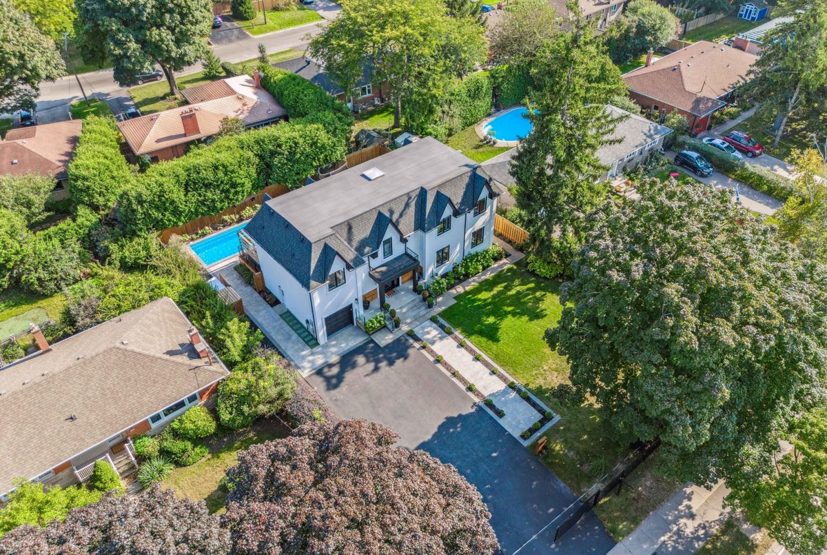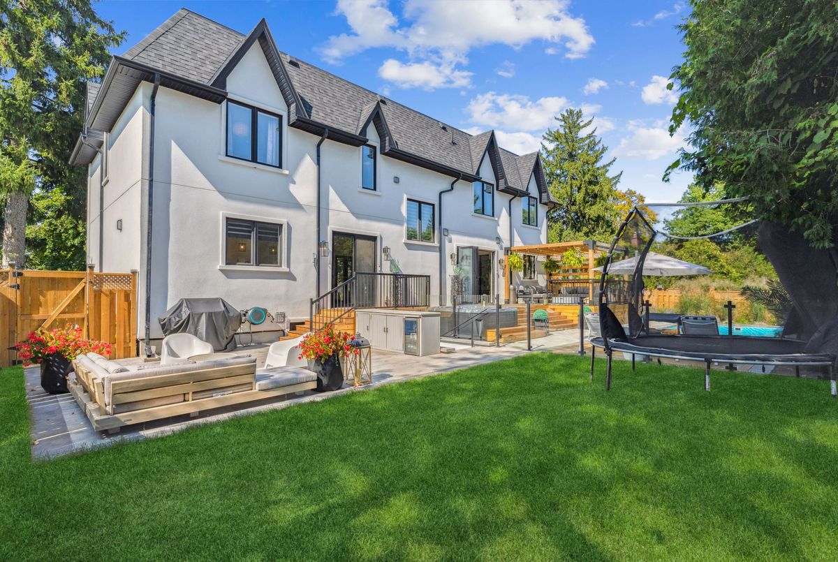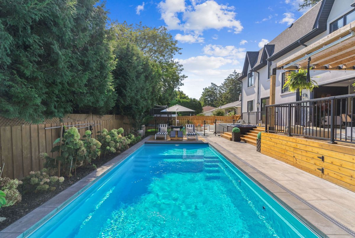 Exquisite custom-renovated modern home on one of Oakvilles most prestigious streets, just minutes from the lake. Nestled on a rare 0.25-acre fully fenced 85 x 132.5 lot, this residence blends elegance, comfort, and functionality for the discerning family. A gated WiFi-controlled entrance and illuminated driveway lead to parking for 11+ vehicles plus an attached garage, offering privacy and convenience. Professionally landscaped grounds with mature cedars enhance curb appeal and create a serene retreat. Inside, refined design shines with soaring ceilings, hardwood floors, crown moulding, pot lights, upgraded fixtures, and oversized windows. The open-concept main level features a chef-inspired kitchen with quartz countertops, custom cabinetry, built-in stainless steel appliances, and a large island. The dining area boasts tri-fold patio doors that extend living space outdoors, while the family room with fireplace and built-ins creates a warm gathering space. A dream mudroom with heated floors and custom storage adds practicality. Upstairs, the magazine-worthy primary retreat offers a fireplace, open walk-in closet, and spa-like ensuite with heated floors, soaker tub, glass shower, and double vanity. The second bedroom has a private ensuite, while the third and fourth share a stylish Jack-and-Jill bath. The finished lower level includes a nanny/in-law suite with separate entrance, full kitchen, laundry, and bathideal for extended family or income potential. The showpiece is the resort-style backyard. A $300K investment created an outdoor paradise with a 36-ft heated saltwater pool, splash pad, automatic cover for added safety, in-deck lighting, hot tub, sundeck, patios, grassy play areas, and even a zip line. With smart home technology, premium finishes, and multi-generational living in a sought-after location close to top schools, parks, shopping, and the lake, this is truly a one-of-a-kind Oakville residence. A private sanctuary of unparalleled luxury & comfort.