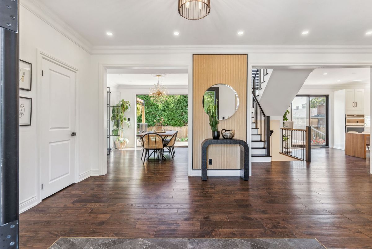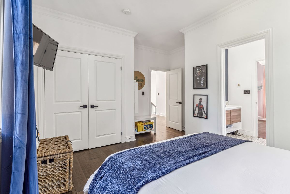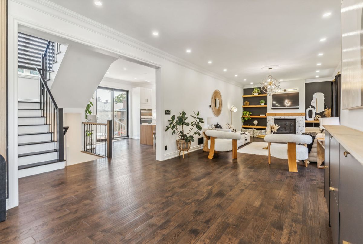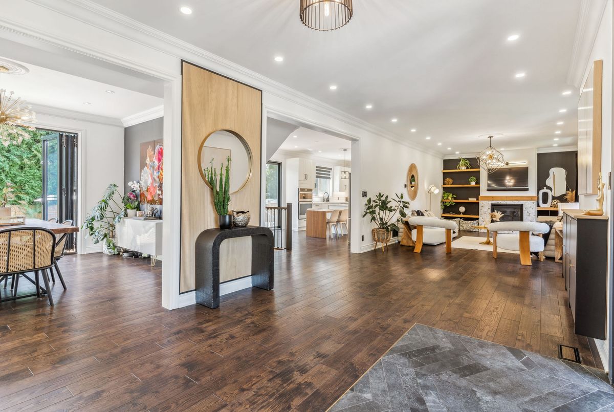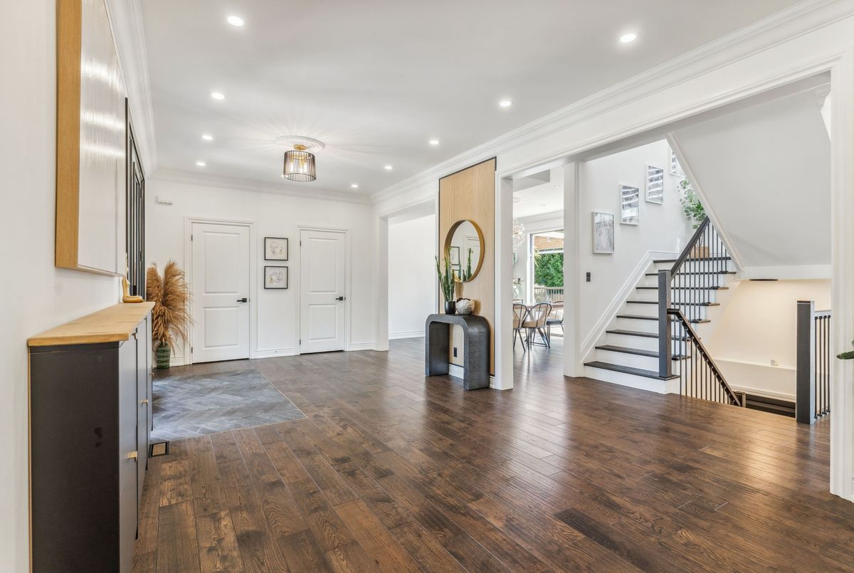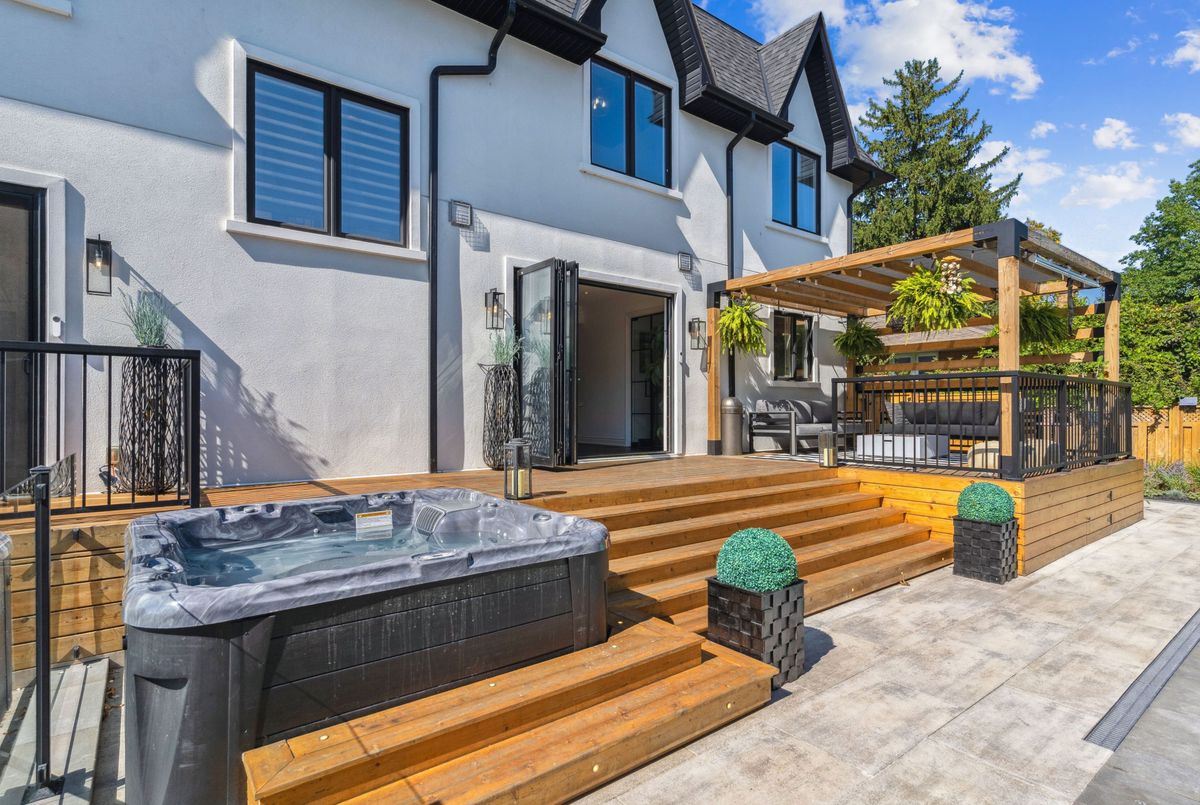 Exquisite custom-renovated modern home on one of Oakvilles most prestigious streets, just minutes from the lake. Nestled on a rare 0.25-acre fully fenced 85 x 132.5 lot, this residence blends elegance, comfort, and functionality for the discerning family. A gated WiFi-controlled entrance and illuminated driveway lead to parking for 11+ vehicles plus an attached garage, offering privacy and convenience. Professionally landscaped grounds with mature cedars enhance curb appeal and create a serene retreat. Inside, refined design shines with soaring ceilings, hardwood floors, crown moulding, pot lights, upgraded fixtures, and oversized windows. The open-concept main level features a chef-inspired kitchen with quartz countertops, custom cabinetry, built-in stainless steel appliances, and a large island. The dining area boasts tri-fold patio doors that extend living space outdoors, while the family room with fireplace and built-ins creates a warm gathering space. A dream mudroom with heated floors and custom storage adds practicality. Upstairs, the magazine-worthy primary retreat offers a fireplace, open walk-in closet, and spa-like ensuite with heated floors, soaker tub, glass shower, and double vanity. The second bedroom has a private ensuite, while the third and fourth share a stylish Jack-and-Jill bath. The finished lower level includes a nanny/in-law suite with separate entrance, full kitchen, laundry, and bathideal for extended family or income potential. The showpiece is the resort-style backyard. A $300K investment created an outdoor paradise with a 36-ft heated saltwater pool, splash pad, automatic cover for added safety, in-deck lighting, hot tub, sundeck, patios, grassy play areas, and even a zip line. With smart home technology, premium finishes, and multi-generational living in a sought-after location close to top schools, parks, shopping, and the lake, this is truly a one-of-a-kind Oakville residence. A private sanctuary of unparalleled luxury & comfort.