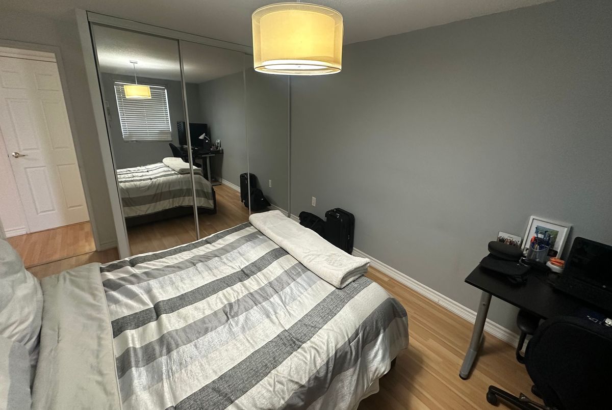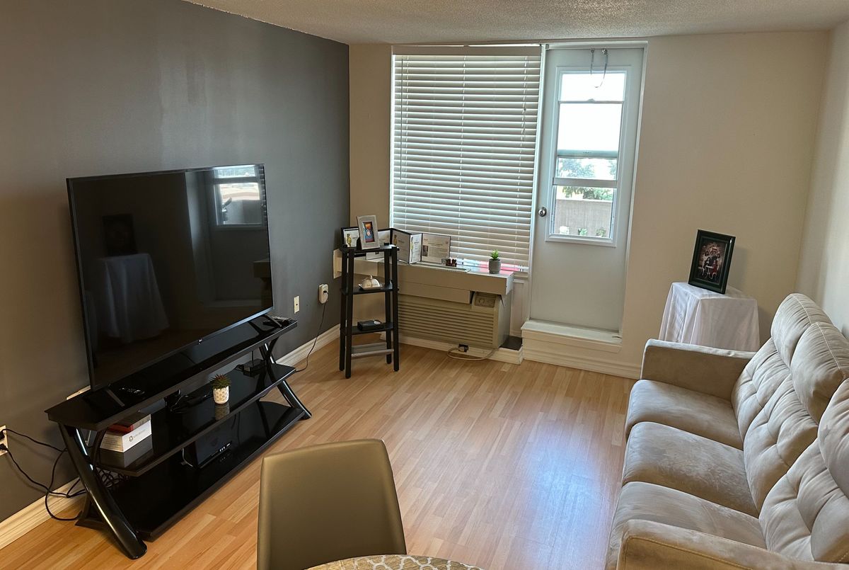 ALL INCLUSIVE!! Bright and beautifully maintained 1-bedroom, 1-bathroom condo in the highly sought-after Hallmark Place in Meadowvale. This fully furnished unit is move-in ready. Step into a light-filled space with a welcoming foyer and mirrored closet for extra storage. The kitchen offers a convenient pass-through to the open-concept living and dining area, ideal for entertaining or relaxing. The spacious bedroom features a wall-to-wall mirrored closet with a built-in linen section. Enjoy summer days by the large outdoor pool and the convenience of underground parking, keeping your vehicle safe year-round. Don't miss this turnkey opportunity in a fantastic location!