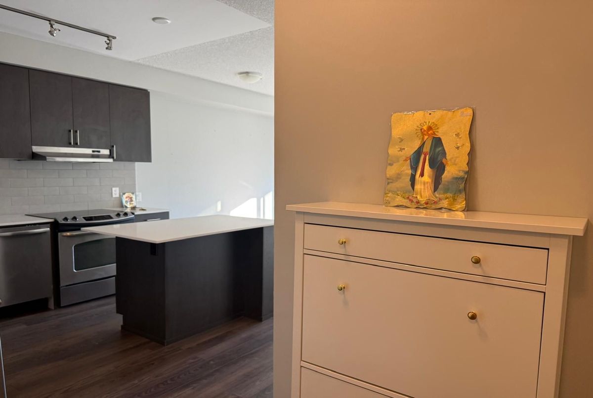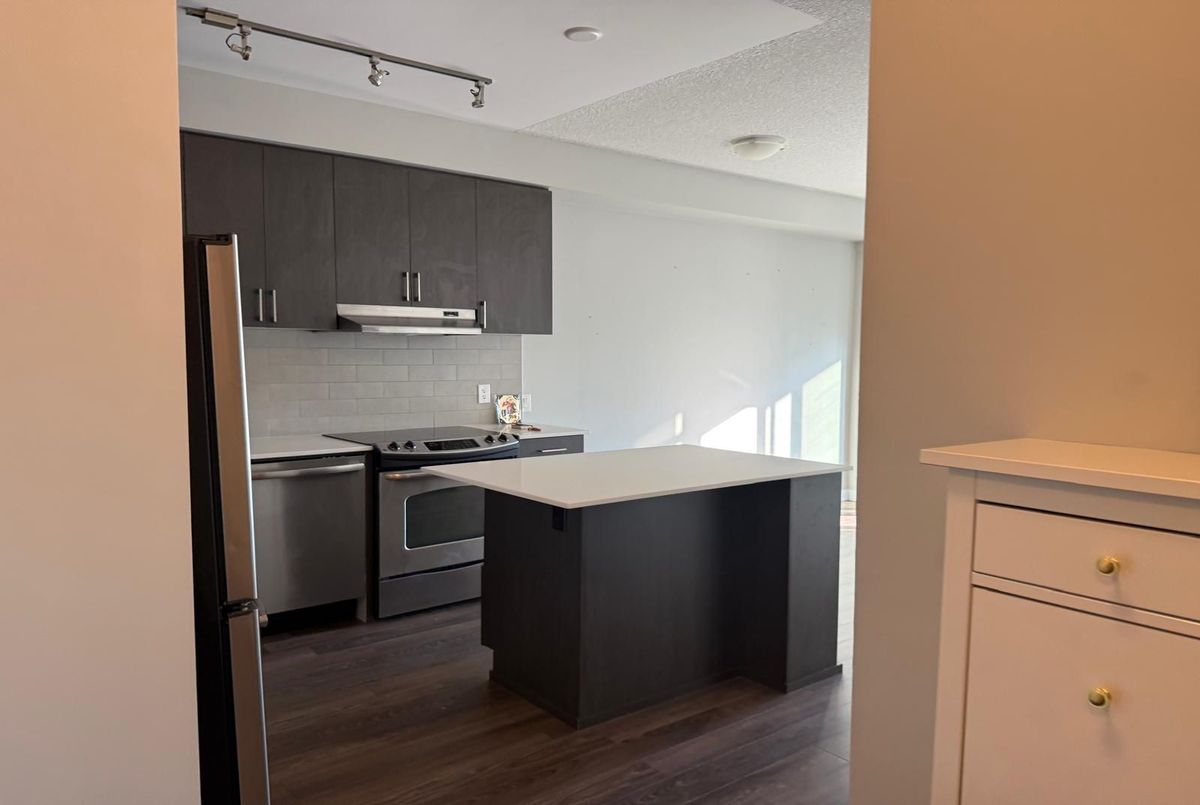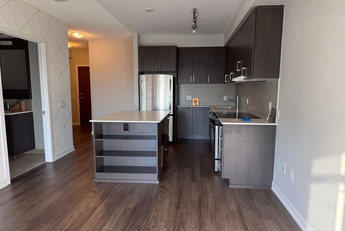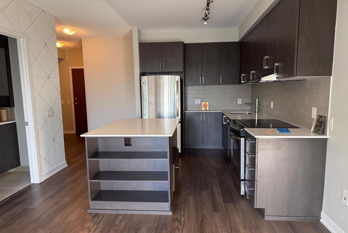 Experience modern living in this beautifully maintained 1-bedroom, 1-bathroom condo offering over 600 sq. ft. of contemporary space. Situated on the 21st floor, this unit boasts soaring ceilings, sleek laminate flooring throughout, and a bright open-concept layout with unobstructed views. The upgraded gourmet kitchen features quartz countertops, a stylish center island, and stainless steel appliances perfect for cooking and entertaining. Enjoy the convenience of en suite laundry, underground parking, and a locker. Residents benefit from premium amenities, including a 24-hour concierge, fitness studio, yoga room, party/lounge areas, and an outdoor terrace with BBQs. Ideally located across from Erin Mills Town Centre and Credit Valley Hospital, with easy access to top-rated schools, parks, trails, public transit, and Highways 403 & QEW, this condo offers the perfect blend of luxury and convenience in a vibrant community.