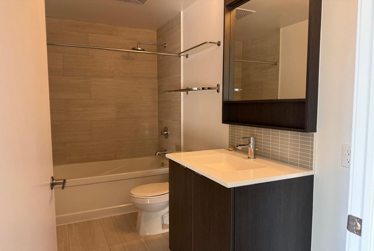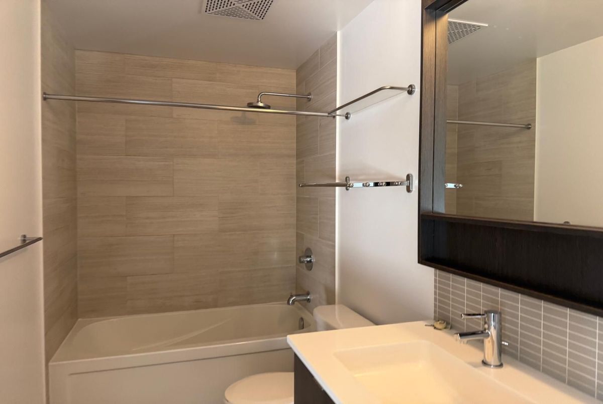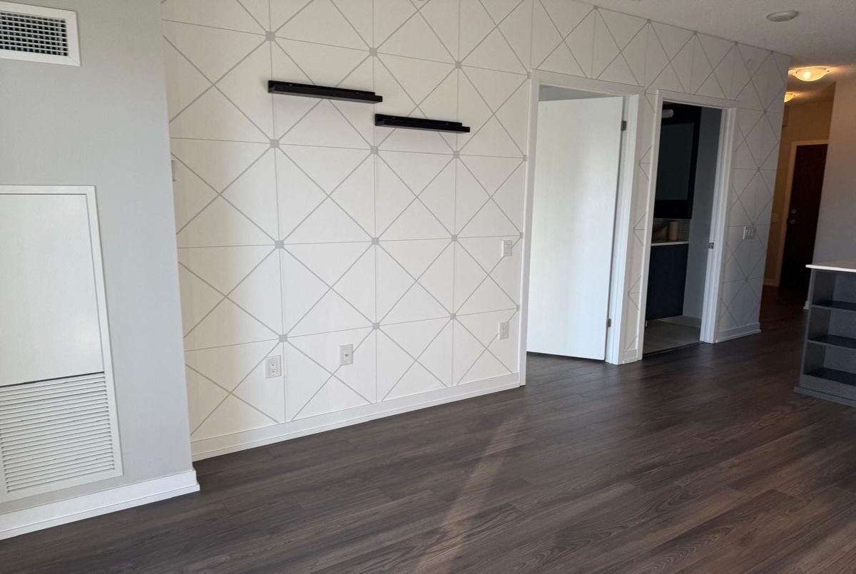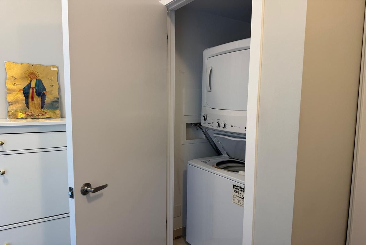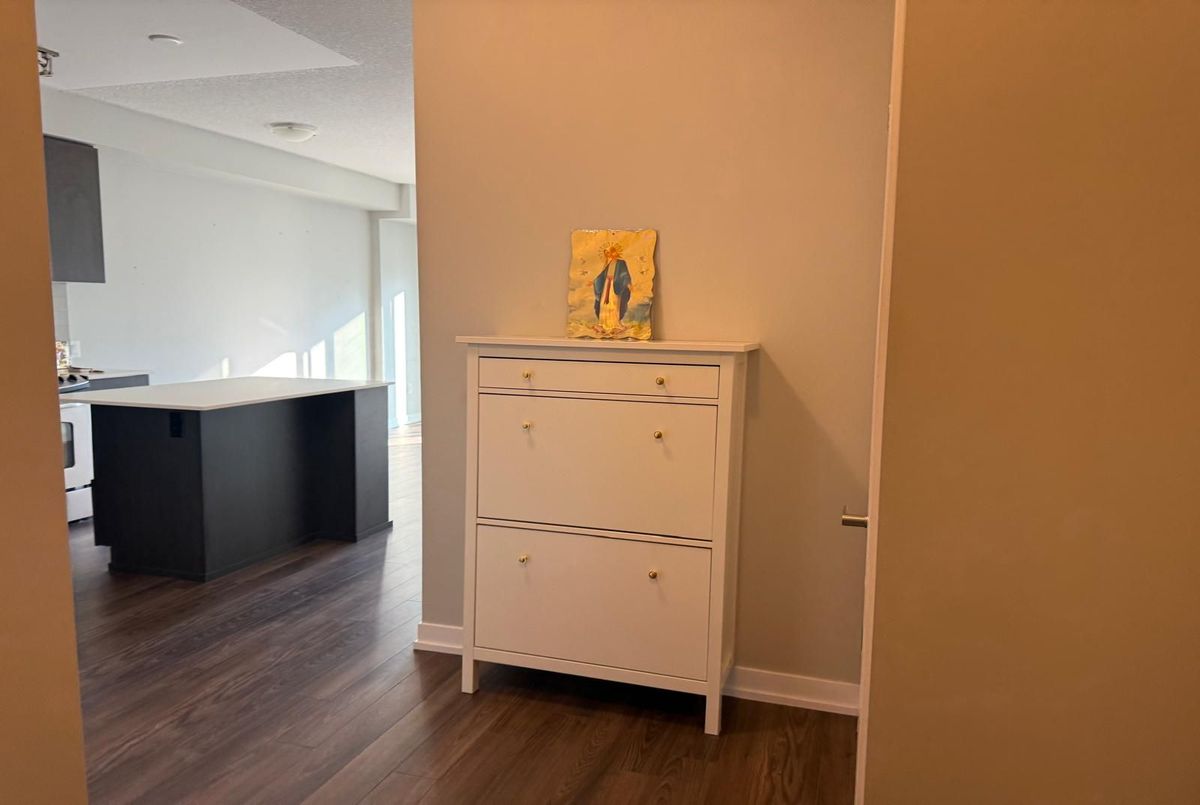 Experience modern living in this beautifully maintained 1-bedroom, 1-bathroom condo offering over 600 sq. ft. of contemporary space. Situated on the 21st floor, this unit boasts soaring ceilings, sleek laminate flooring throughout, and a bright open-concept layout with unobstructed views. The upgraded gourmet kitchen features quartz countertops, a stylish center island, and stainless steel appliances perfect for cooking and entertaining. Enjoy the convenience of en suite laundry, underground parking, and a locker. Residents benefit from premium amenities, including a 24-hour concierge, fitness studio, yoga room, party/lounge areas, and an outdoor terrace with BBQs. Ideally located across from Erin Mills Town Centre and Credit Valley Hospital, with easy access to top-rated schools, parks, trails, public transit, and Highways 403 & QEW, this condo offers the perfect blend of luxury and convenience in a vibrant community.