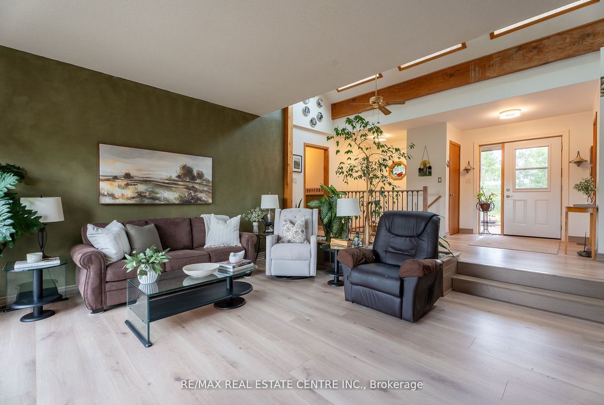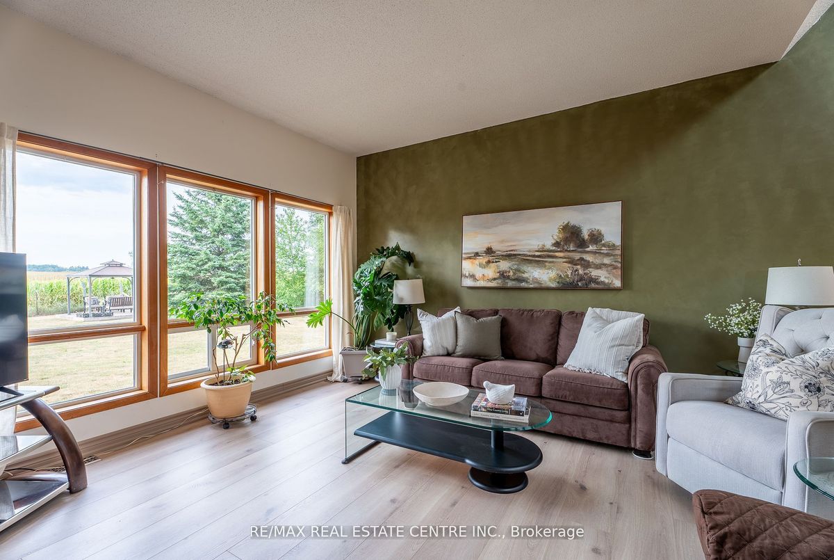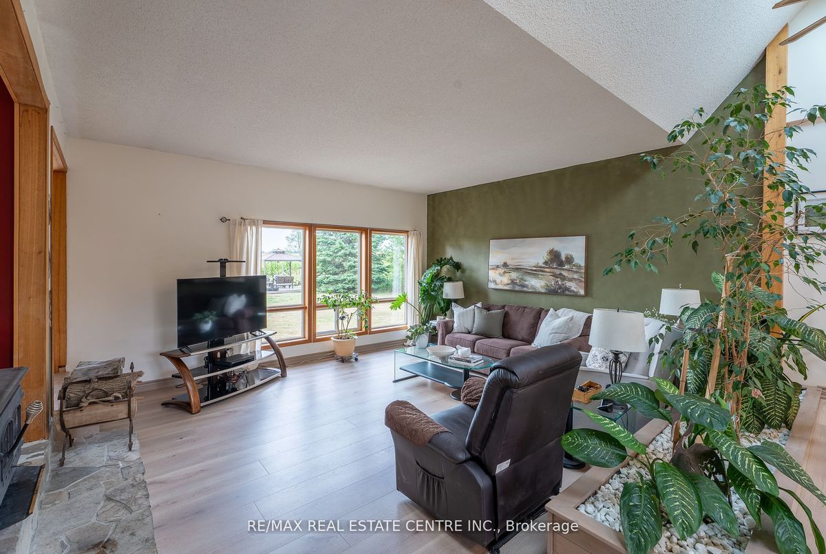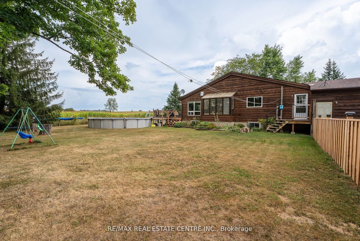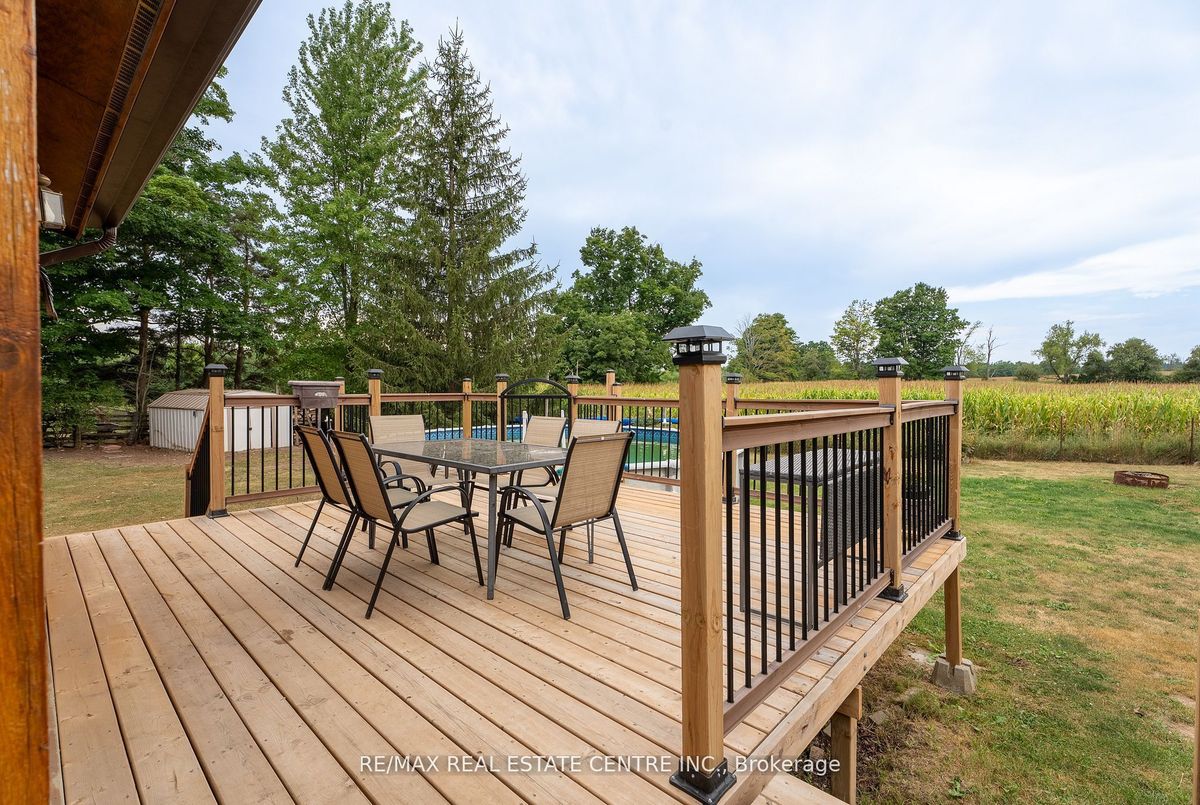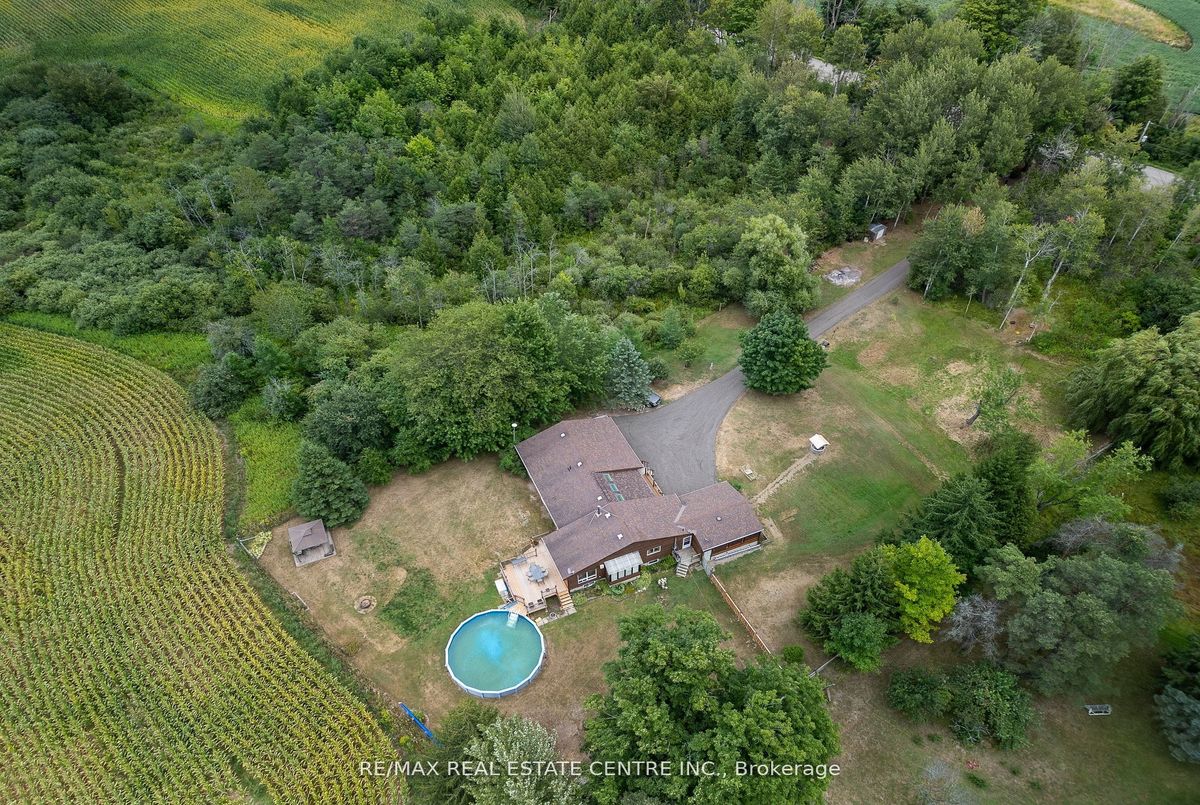 For the first time ever, this spacious 3+1 bedroom bungalow is ready for its next chapter. Set on 1.366 acres and framed by peaceful cornfields, its the kind of place where mornings start with coffee on the front deck while the kids catch the school bus, and afternoons end with a cocktail by the pool or under the gazebo. Inside, the home offers generous bedrooms, including a bright primary suite with ensuite. The layout flows with ease, filled with natural light from skylights, large windows, and even an indoor plant garden in the main living room. A cozy wood-burning fireplace anchors the space, while the newly renovated main bath, fresh paint, and new flooring on both levels make it easy to move right in-or start adding your own personal touches. Practical upgrades are already taken care of: geothermal heating keeps monthly bills low, a brand-new deck extends from the home office to the pool, and the freshly paved driveway means one less project for the next owner. The backyard is just the right size-room for the kids to explore, without overwhelming upkeep. A handy shed is perfect for garden tools or storage, and with no rental items here, everything you see is truly yours. Whether you're dreaming of quiet country living, more space for the family, or a quick drive to Orangeville and Caledon Village, this home delivers the best of all worlds.