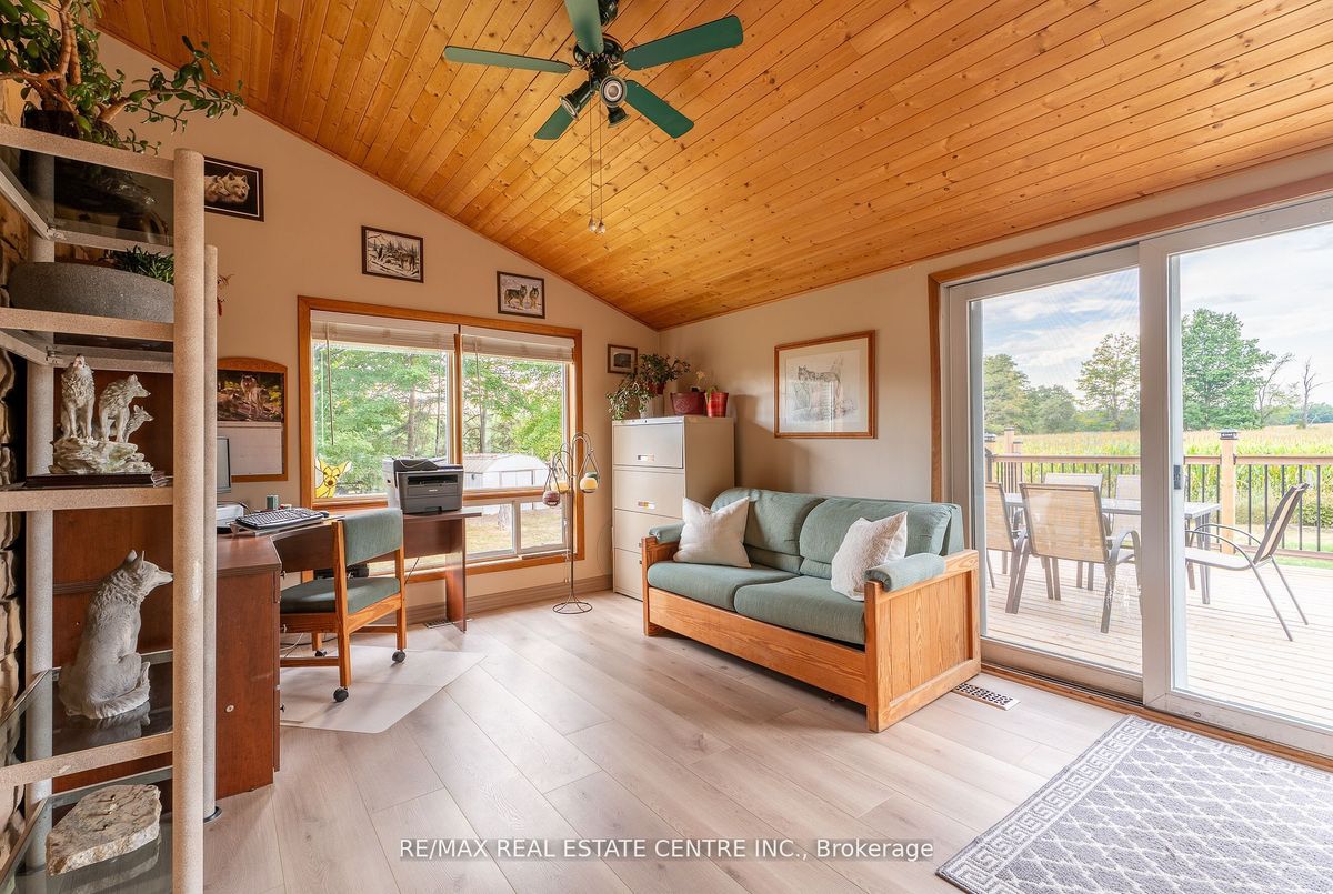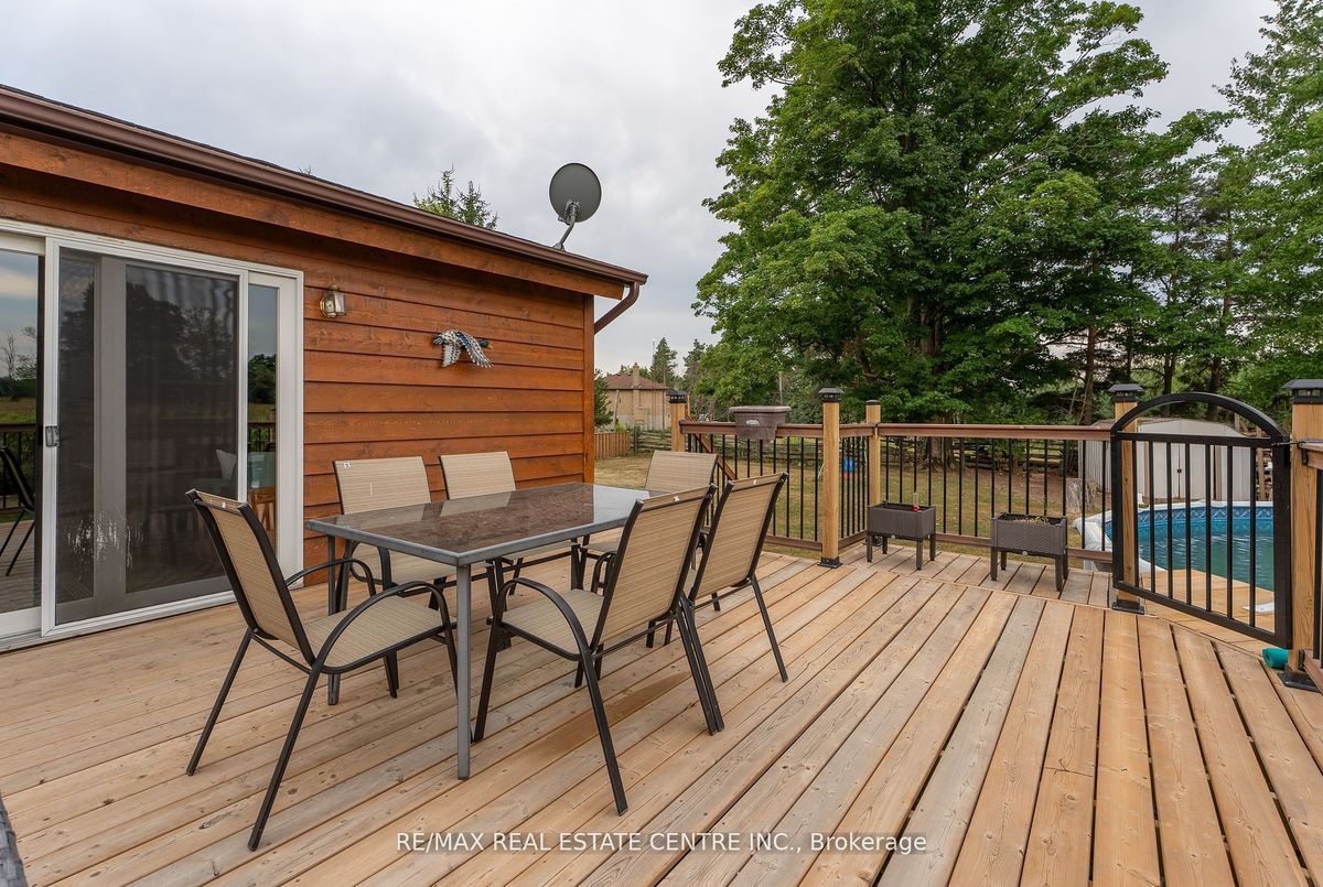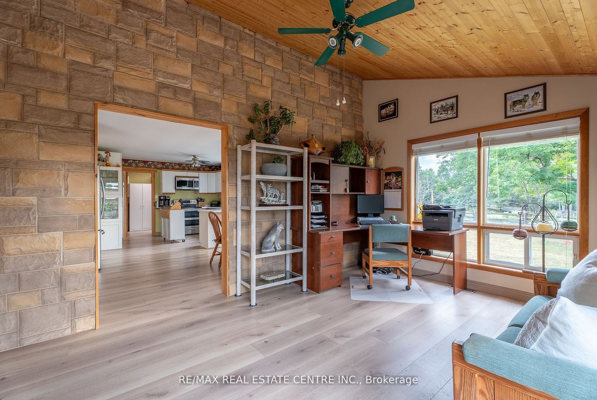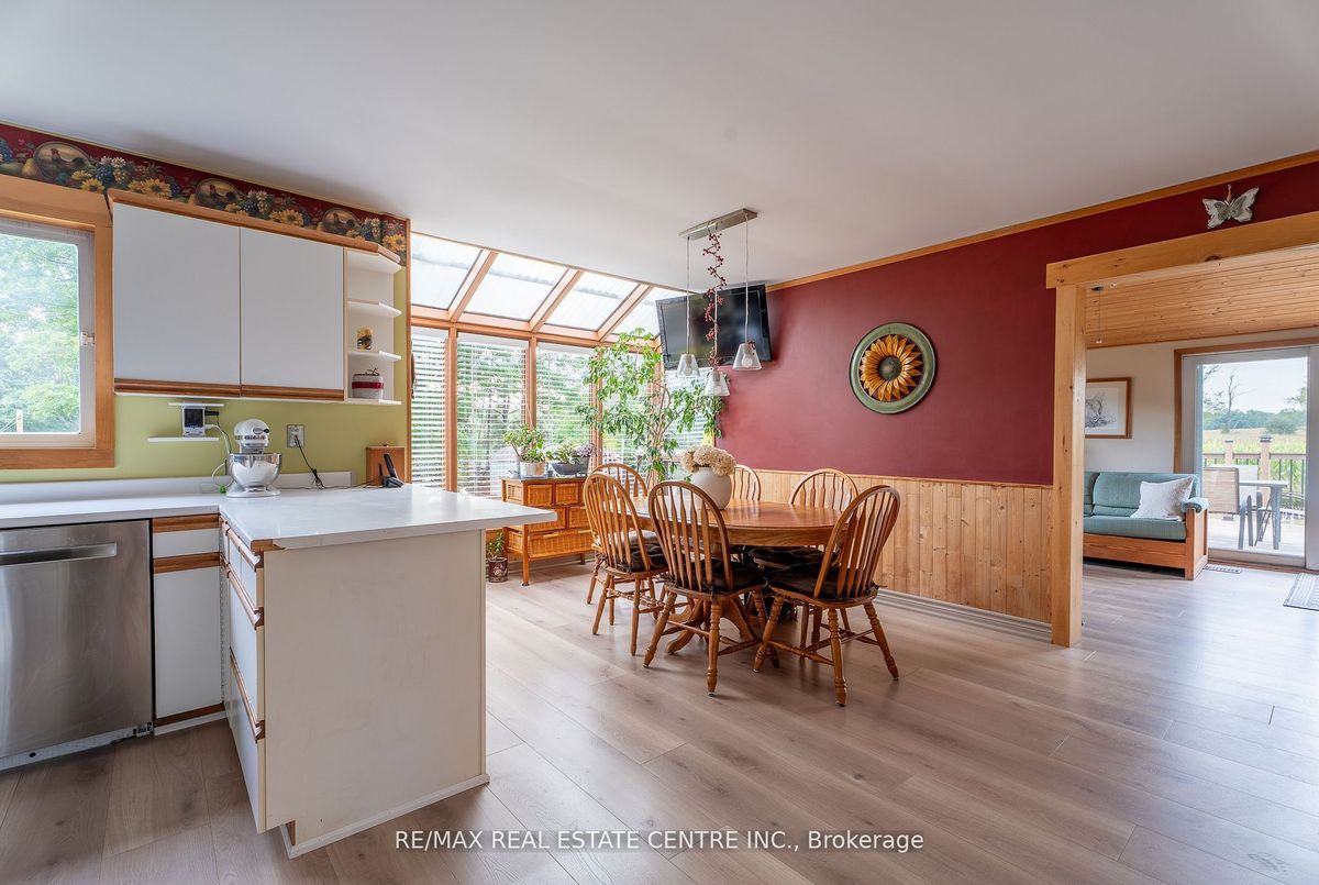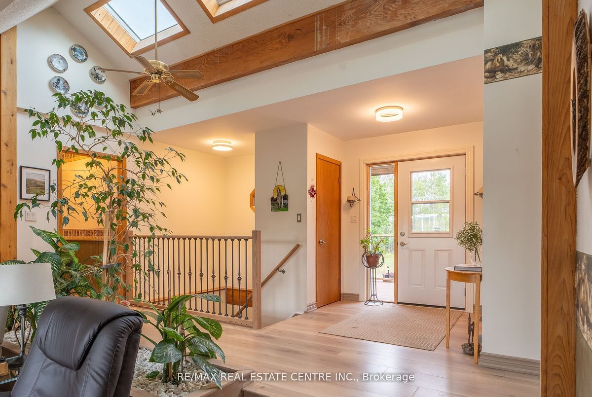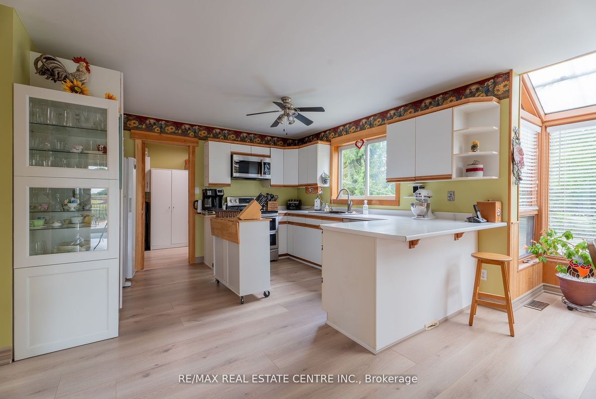 For the first time ever, this spacious 3+1 bedroom bungalow is ready for its next chapter. Set on 1.366 acres and framed by peaceful cornfields, its the kind of place where mornings start with coffee on the front deck while the kids catch the school bus, and afternoons end with a cocktail by the pool or under the gazebo. Inside, the home offers generous bedrooms, including a bright primary suite with ensuite. The layout flows with ease, filled with natural light from skylights, large windows, and even an indoor plant garden in the main living room. A cozy wood-burning fireplace anchors the space, while the newly renovated main bath, fresh paint, and new flooring on both levels make it easy to move right in-or start adding your own personal touches. Practical upgrades are already taken care of: geothermal heating keeps monthly bills low, a brand-new deck extends from the home office to the pool, and the freshly paved driveway means one less project for the next owner. The backyard is just the right size-room for the kids to explore, without overwhelming upkeep. A handy shed is perfect for garden tools or storage, and with no rental items here, everything you see is truly yours. Whether you're dreaming of quiet country living, more space for the family, or a quick drive to Orangeville and Caledon Village, this home delivers the best of all worlds.
