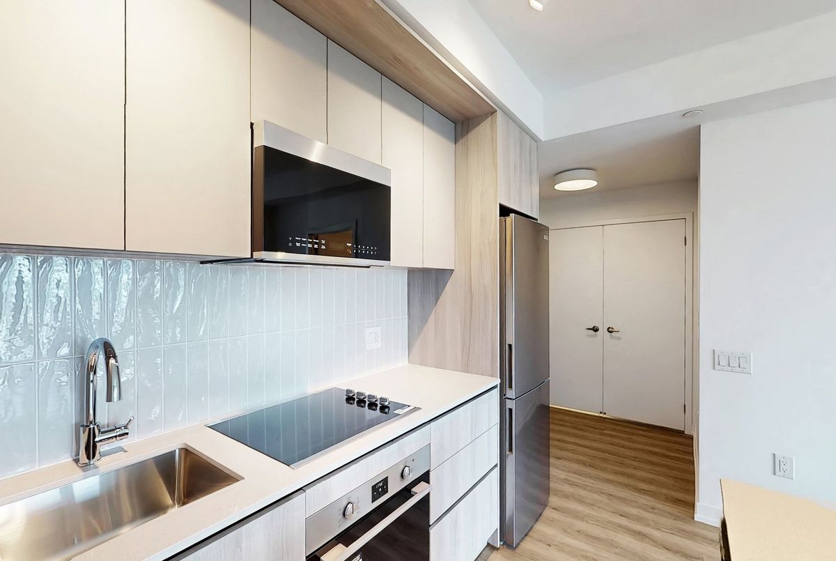 Welcome to The Kith Condominiums-Daniels' newest landmark. Prime Mississauga location steps from Credit Valley Hospital and Erin Mills Town Centre. This brand-new 1-bedroom, 1-bathroom suite features a bright, open-concept layout with elegant finishes throughout. The modern kitchen boasts stone countertops, a centre island, and stainless steel appliances, while oversized windows flood the space with natural light and offer unobstructed views. Enjoy over 12,000 sq. ft. of exceptional amenities, including a state-of-the-art fitness centre with indoor track, theatre, co-working lounges, stylish party room, and an outdoor terrace with BBQs. Concierge services and secure entry further enhance the lifestyle experience. With easy access to Highways 403/401/407 and Streetsville GO, this residence combines convenience with contemporary living.