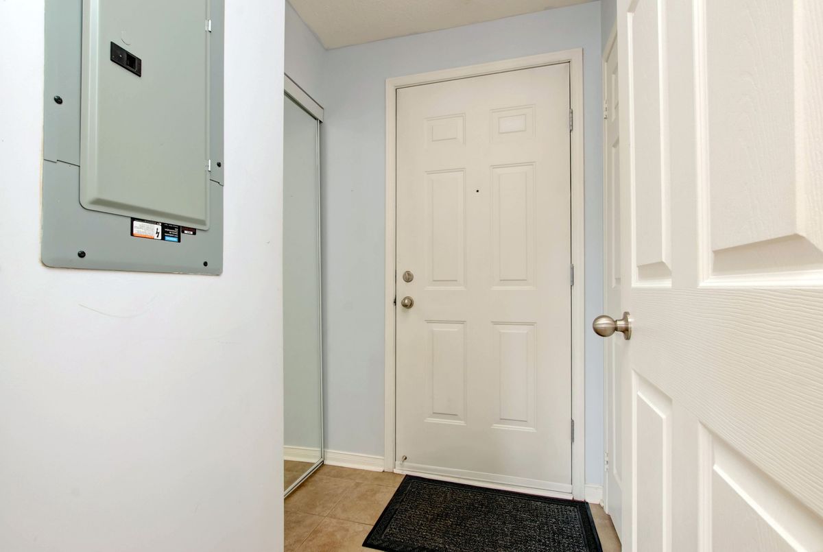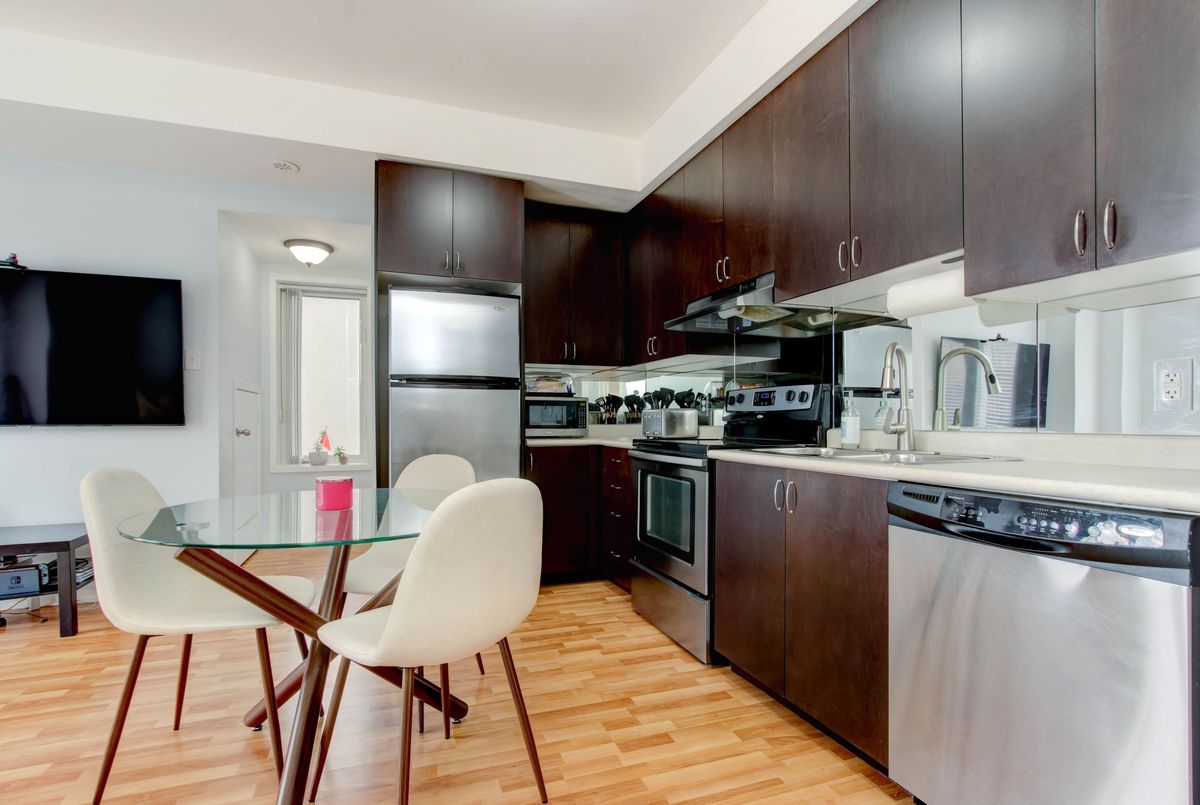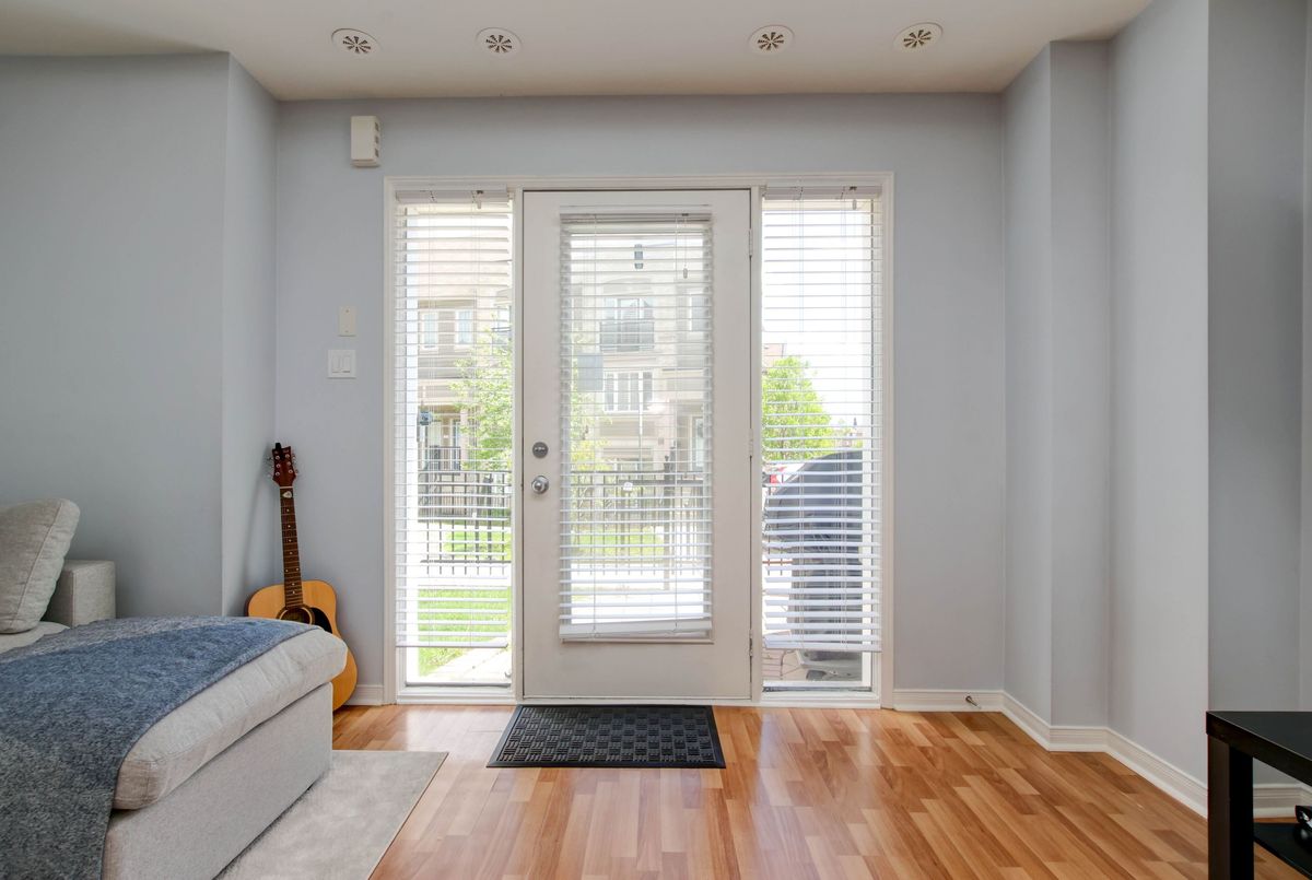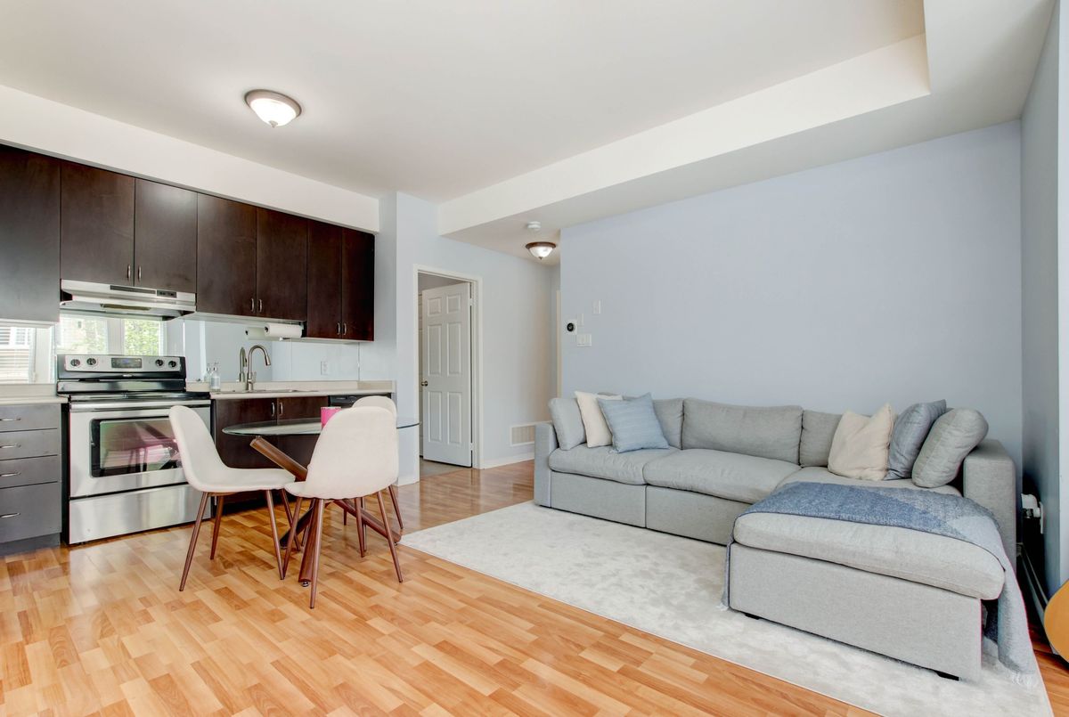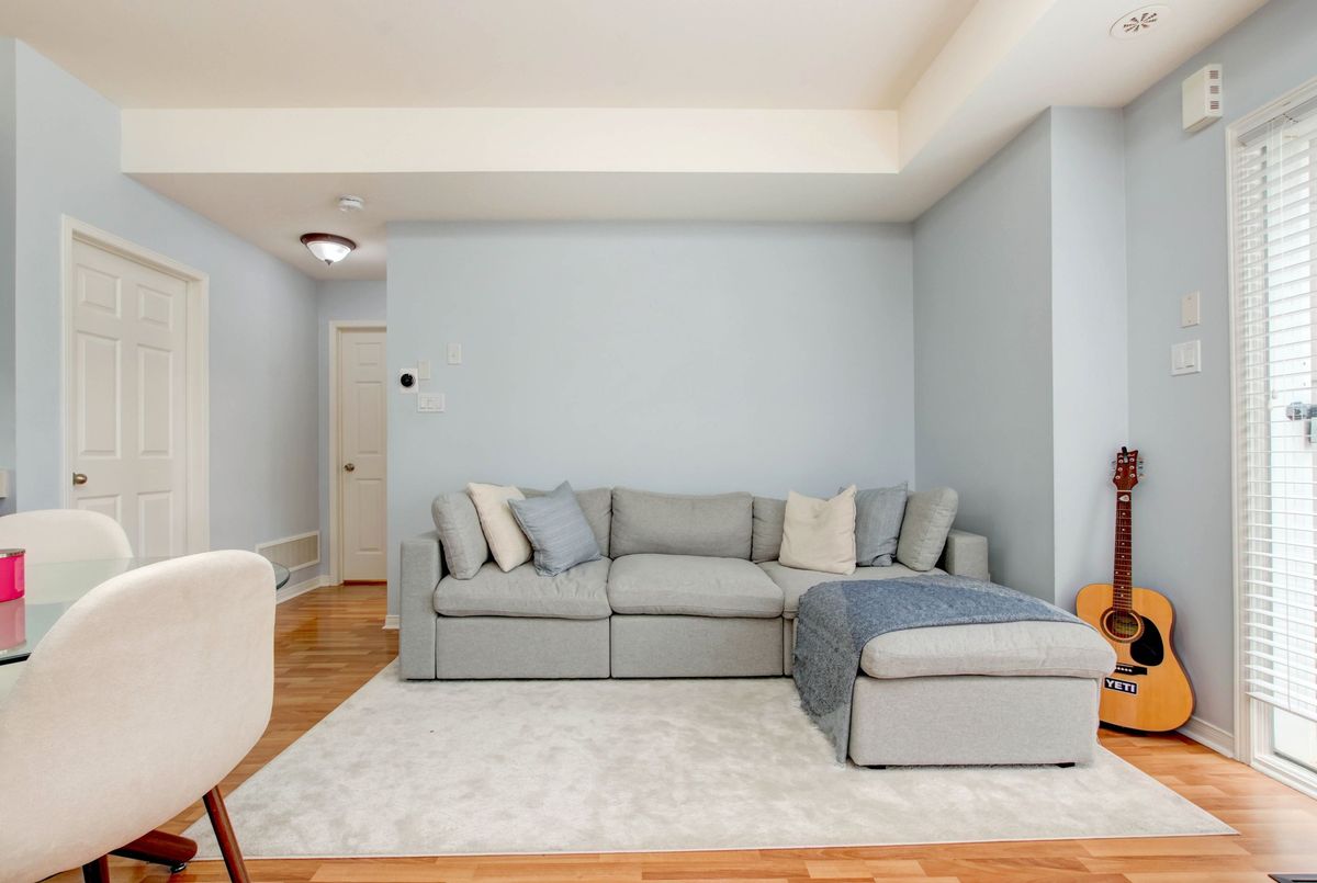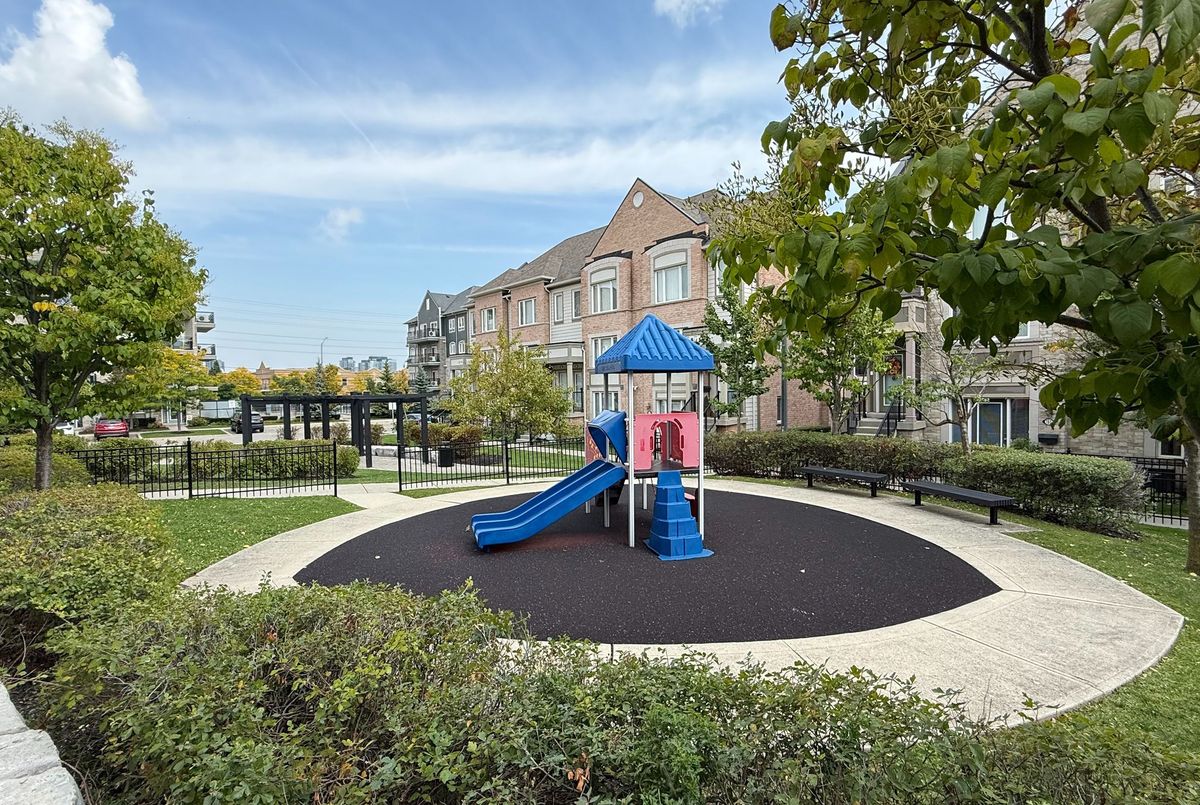Welcome to this lovely 1-bedroom end-unit, stacked condo townhome in a nicely maintained community. Convenient (and rare) 2-car parking right outside your unit including your own personal garage space with lots of extra room for storage, plus your own private front terrace overlooking the park. No waiting for elevators or hauling groceries up to your unit, just walk out of your door, get into your car and go. Freshly painted, clean and well-kept, this South facing unit is filled with of natural light. Walk into a lovely open-concept living space with a kitchen and eat-in area that overlooks the living room. A nice size primary bedroom with new laminate floors, a bright window overlooking the park, and an oversized closet. Ensuite laundry with full size machines (not little condo machines), plenty of storage inside the unit and direct access to the garage with plenty of extra storage space. The generous outdoor terrace is a perfect space to entertain and relax. An excellent location for commuters, conveniently located between Highways 401, 407, 403 and QEW. A short walk to nearby restaurants, shopping, Erin Mills Town Centre, schools and parks. Just minutes to the Churchill Meadows Community Centre with sports facilities, playgrounds, trails, indoor pool and dog park.