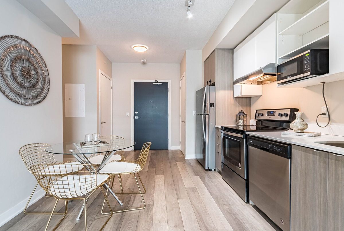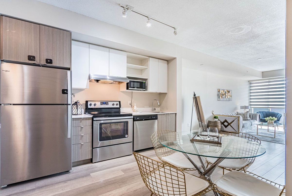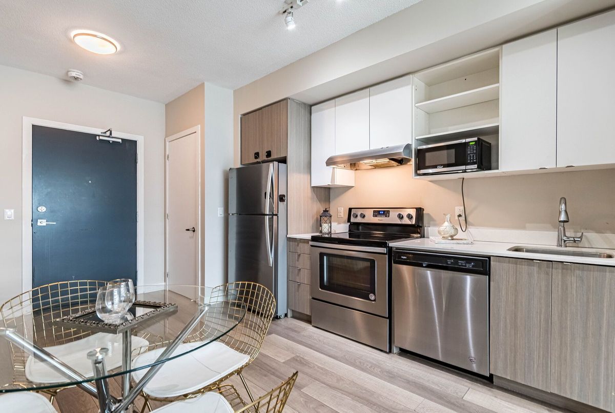 Welcome 5240 Dundas B314 in Burlington's desirable Orchard community! This upgraded 1+1 bed, 1 bath suite offers a smart, functional layout with modern finishes throughout. Enjoy a sleek kitchen with quartz countertops, stainless steel appliances, and a bright, open-concept living area that walks out to your private balcony with tranquil southeast views. The separate den is perfect for a home office. Residents have access to premium amenities including a gym, rooftop deck, concierge, steam room, plunge pools, and more. One underground parking space and locker included. Immediate possession available.