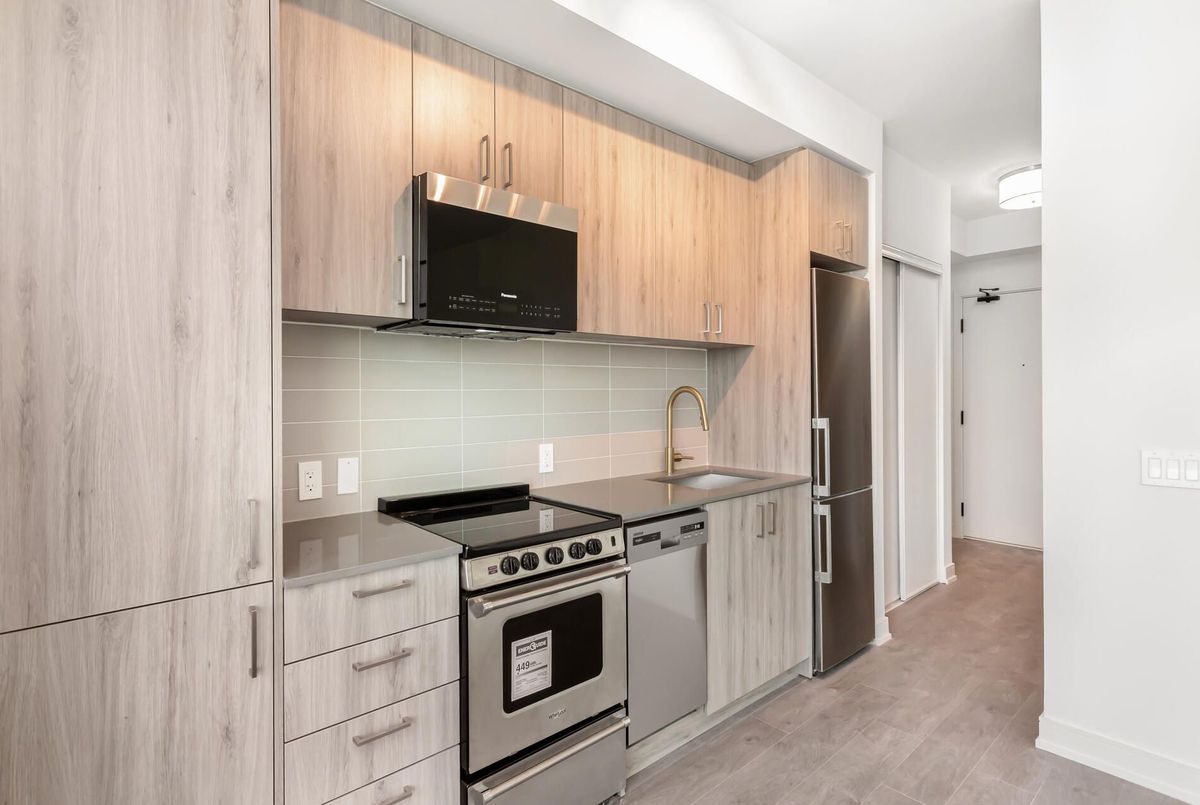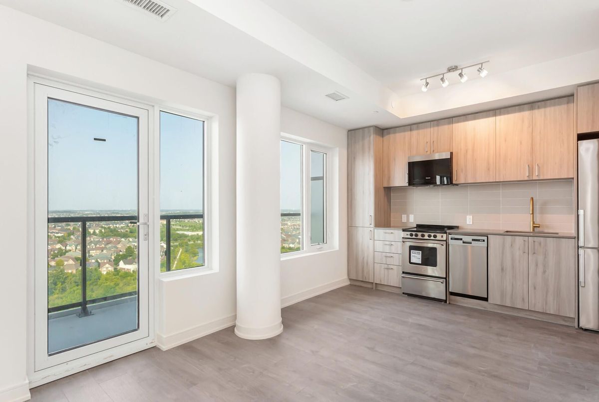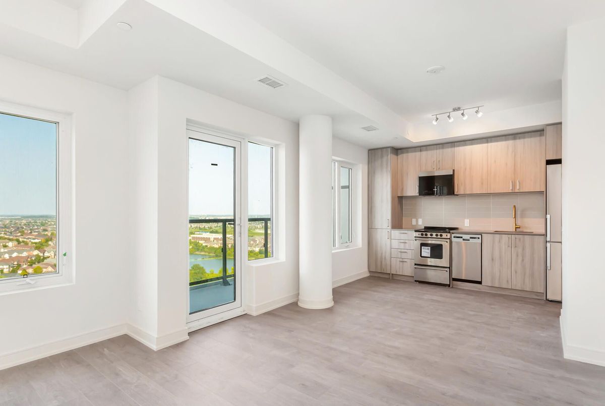 Modern 1-Year-Old, One Bed + Den Apartment with Balcony! Enjoy luxury living on the 17th floor with stunning views. Spacious open-concept layout with large windows, stainless steel appliances (microwave with built-in hood fan, stove, fridge, dishwasher), and stacked washer/dryer. Prime location minutes from major highways, Milton GO Station, transit, healthcare, schools, and urban amenities. Walking distance to beautiful greenspaces and a variety of local conveniences.
