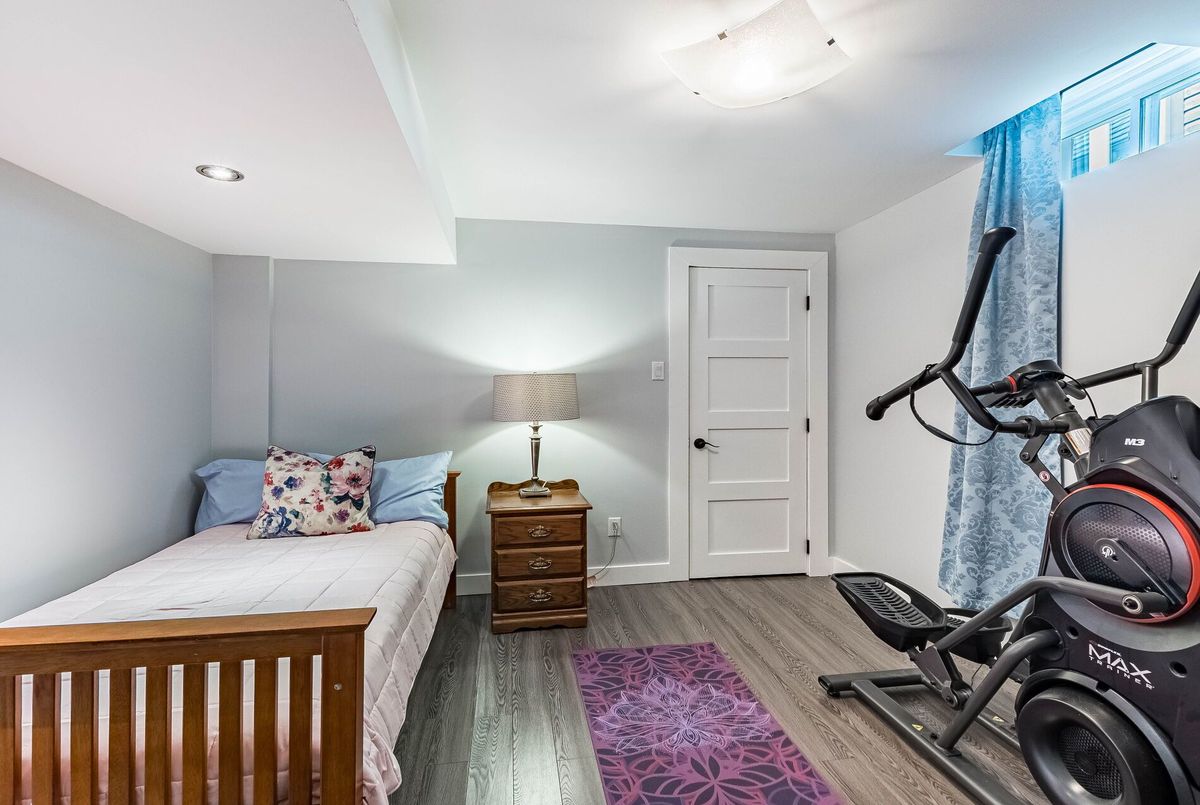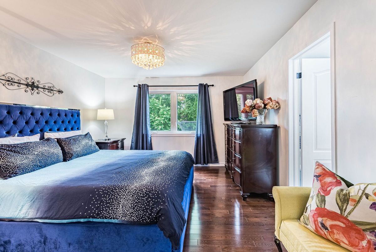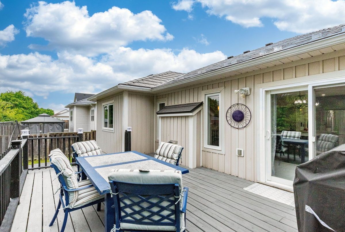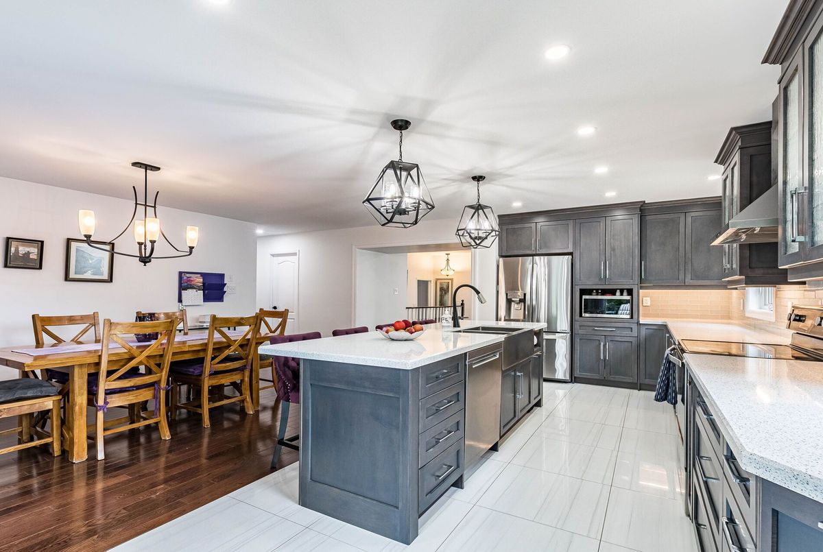 Nestled on a quiet family-friendly street you'll immediately be impressed with the gorgeous exterior featuring many upgrades including metal roof, double door entry, shaker shingles, stone facade, lighting, windows & double door garage. Parking for 4 cars on the newly re-paved driveway. Enjoy peace & quiet on the covered front porch. Fall in love with this sought after open concept bungalow with upscale interior. Hardwood & porcelain tiles adorn the entire main level & the custom kitchen features Cambria quartz counters, an over-sized double sink, 24" x 24" porcelain tiles, a large centre island, custom backsplash & stainless-steel appliances. Walk-out sliders to the backyard deck. All upper windows, front doors & patio sliders were replaced in 2020. Family room with gas fireplace. 3 good sized bedrooms with 2 full renovated bathrooms, the primary bedroom features a spa-like ensuite with an air bath, freestanding glass shower with porcelain walls, a double sink vanity, heated floor & Bluetooth enabled lighted mirror. Convenient garage access to the home & main floor laundry. Fully fenced yard. Eavestroughs & leaf guards were replaced in 2024. Finished lower level almost doubles your living space, has a huge rec room with potential for an in-law suite with 4th & 5th bedrooms both having above grade windows & walk-in closets, a custom 4-piece bathroom with an over-sized shower & roughed-in water supply in the dry bar area. Prime downtown location with surrounding shops, dining, community centre, parks & schools. Minutes to Acton Go service!