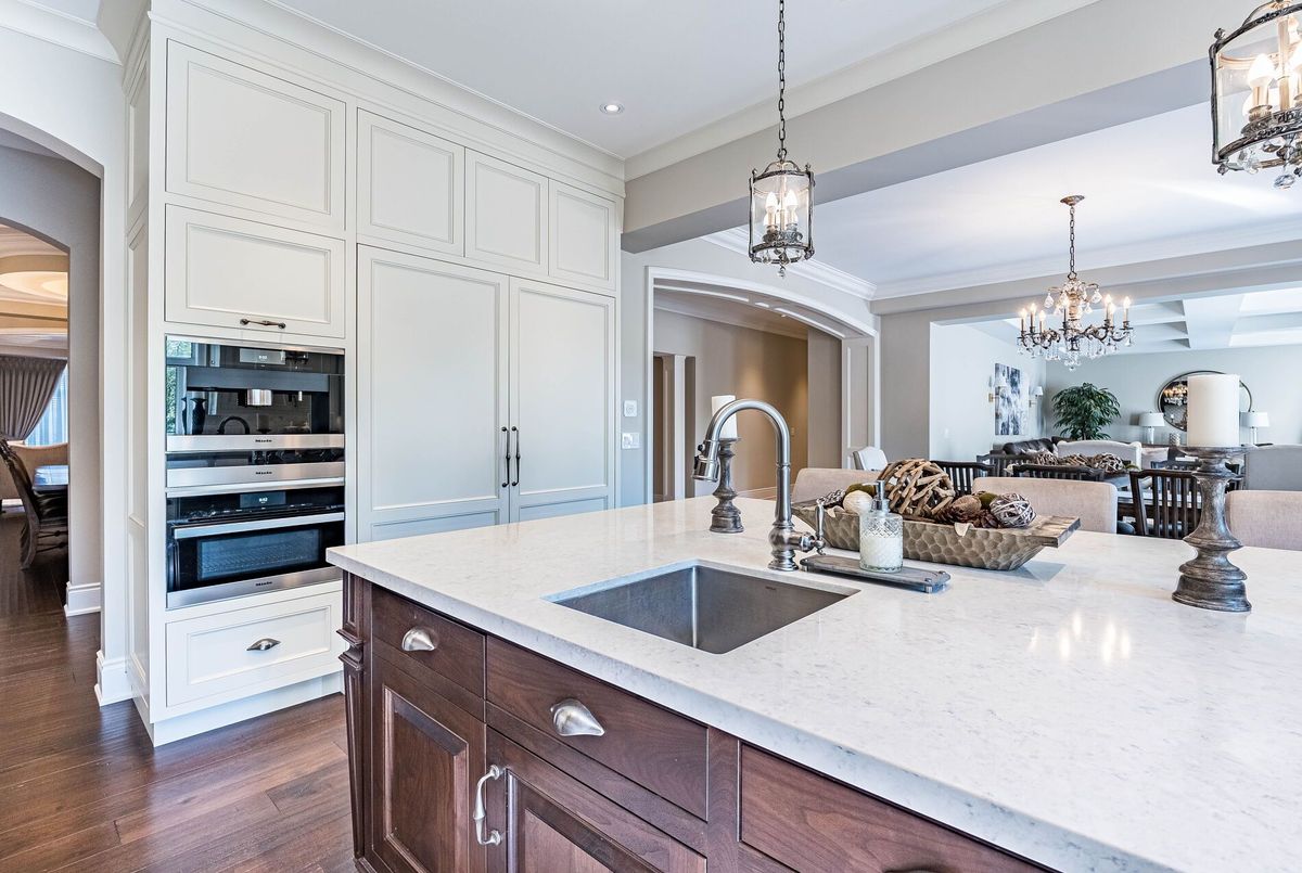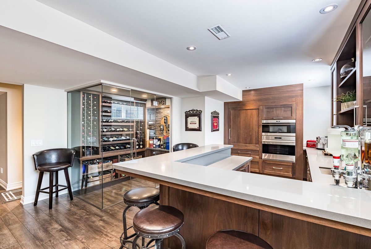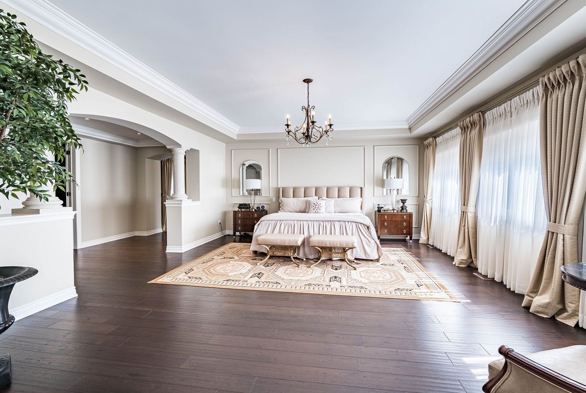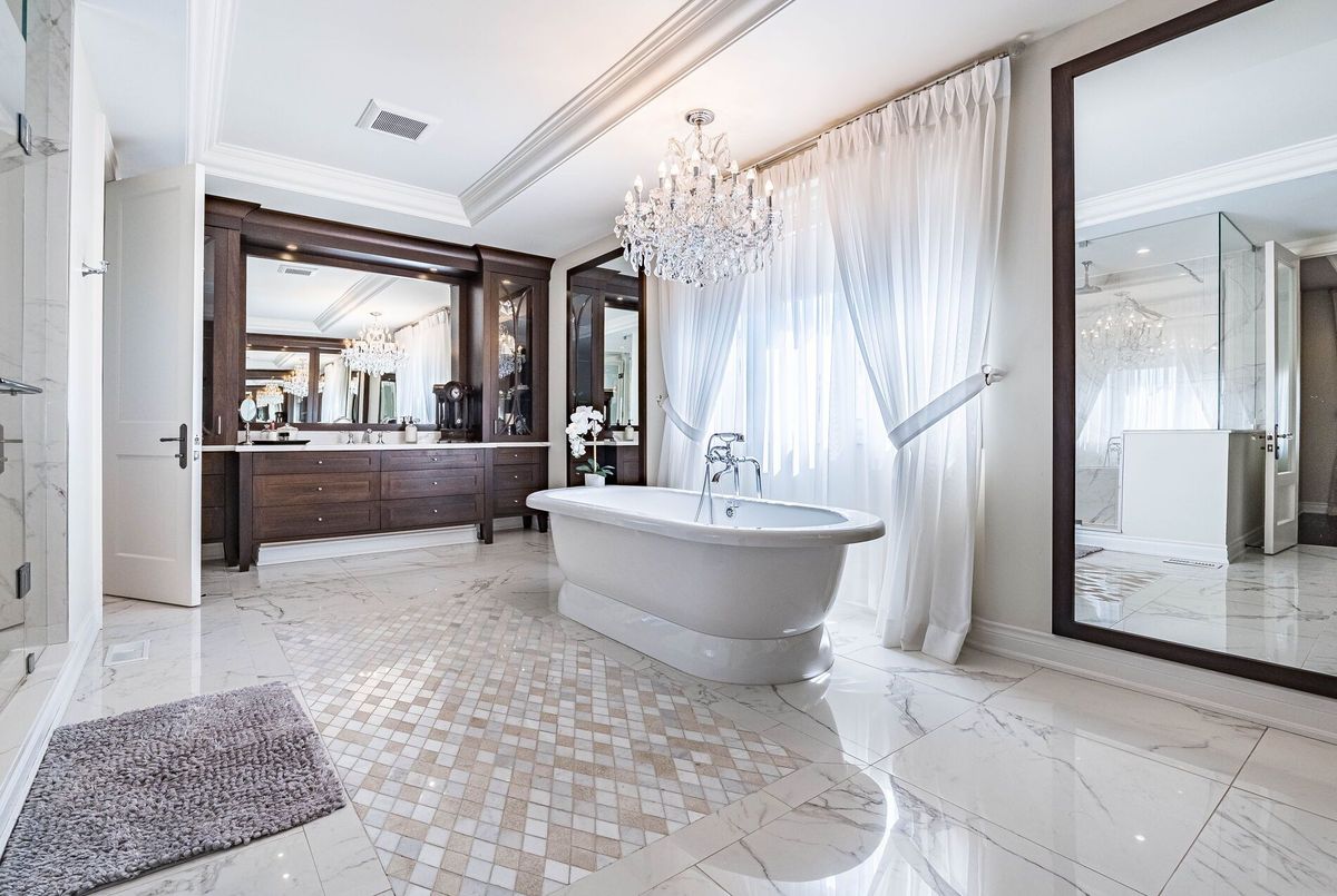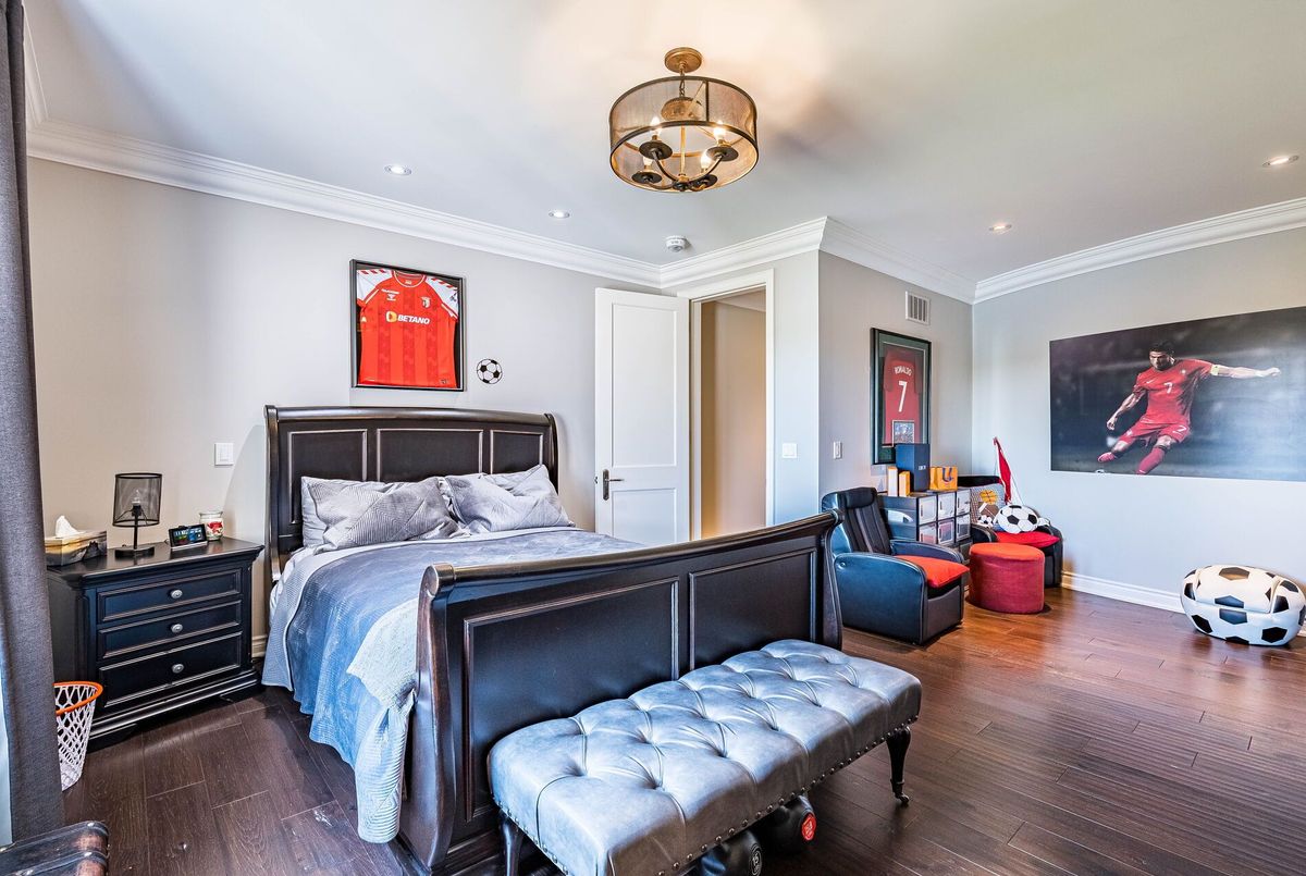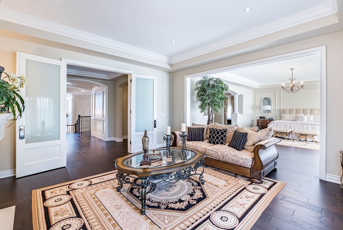 Exceptional Custom Estate Home Offering Over 7,000 Sqft Of Finished Living Space, Designed With Premium Upgrades Throughout. Featuring A Grand Double Curved Staircase With Wrought Iron Pickets, Soaring Ceilings, Hardwood Flooring, And Detailed Custom Paneling. The Main Level Showcases A Gourmet Kitchen With Wolf, Miele, And Sub-Zero Appliances, Quartz Countertops, Custom Cabinetry, A Butlers Pantry, And An Oversized Breakfast Area Overlooking The Backyard. The Living Room And Library Feature Custom Coffered Ceilings And Smooth ceilings throughout. The Great Room Includes A Feature Wall With Gas Fireplace. Additional Main Floor Features Include Oak Service Stairs To Basement, Separate Service Entrance, And Extra Closet Space. Upstairs, The Primary Bedroom Offers A Spa-Inspired Ensuite With Heated Floors, A Private Sitting/Lounge Area, And Custom Walk-In Closets. A Secondary Bedroom Also Features A Private Ensuite With Heated Floors And Its Own Separate Sitting/Lounge Area, Ideal For Multi-Generational Living Or Guests. All Secondary Bedrooms Are Generously Sized, Each With Ensuite Or Semi-Ensuite Access. The Laundry Room Is Finished With A Custom Waterfall Island Providing Ample Storage And Folding Space. Fully Finished Basement Includes A Home Gym, Recreation Room, And Additional Storage. The Backyard Features A Heated Saltwater Pool With Automatic Safety Cover, Irrigation System, Covered Porch, And Exterior Lighting. Additional Upgrades Include: 14-Mil Security Window Film Installed On Key Doors And Windows, Full Exterior Surveillance System, Motorized Chandelier Lift System, Central Vacuum, Two Separate Double Garages (Total 4-Car Parking) & Professional Landscaping With Irrigation System.