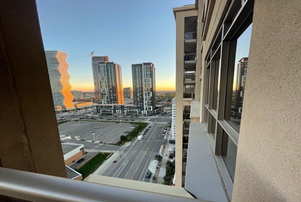 Located in the heart of Mississauga's vibrant Square One district, this high-floor corner suite offers 968 sq.ft. of well-designed living space plus an impressive wrap-around balcony with an extended section, perfect for enjoying panoramic southeast views overlooking Celebration Square and Lake Ontario.Featuring 9 ceilings and floor-to-ceiling windows, the unit is bright and airy throughout. The thoughtfully designed layout includes a large den converted into a third bedroom, providing flexibility for family, guests, or a home office.The upgraded kitchen boasts granite countertops, mirrored backsplash, custom wine rack, and track lightingideal for both everyday living and entertaining. Stylish high-end laminate flooring and mirrored closets add a modern touch, while the open-concept design enhances flow and functionality.Steps to Square One Shopping Centre, Sheridan College, restaurants, parks, public transit, and major highways, this condo offers not just a home, but a lifestyle in one of Mississaugas most dynamic communities.