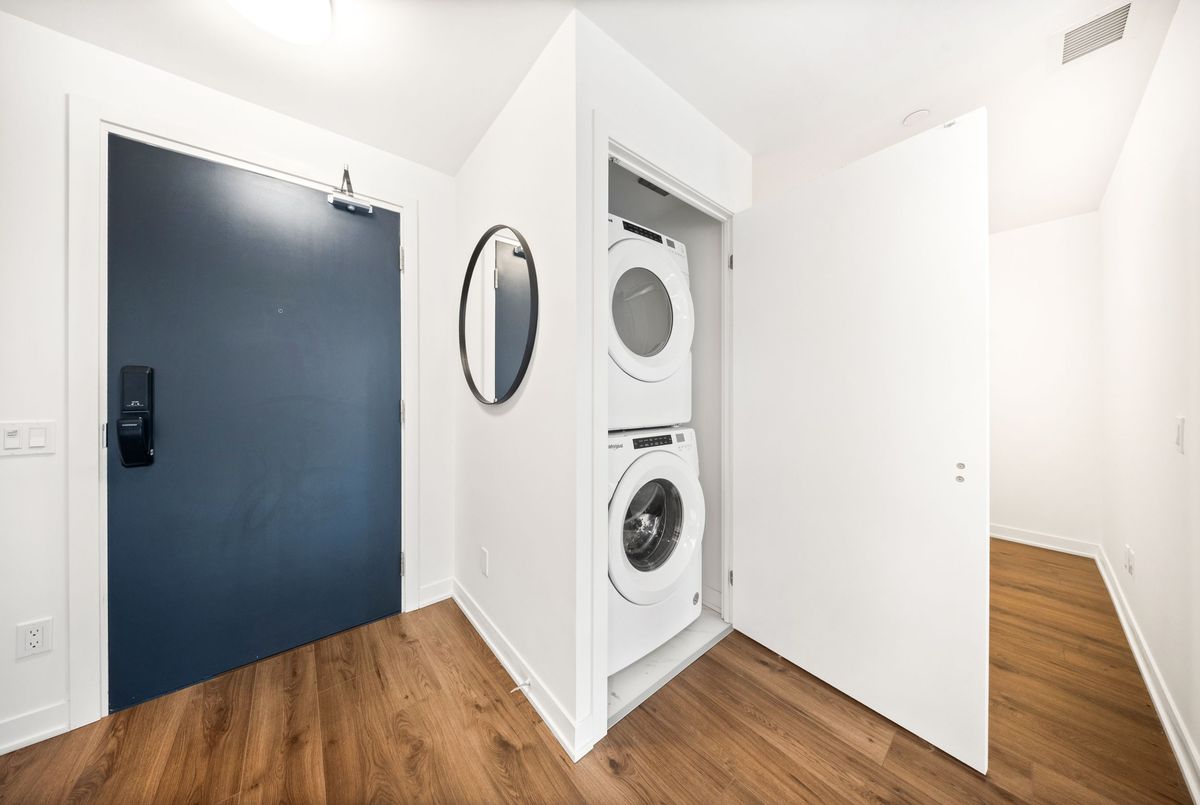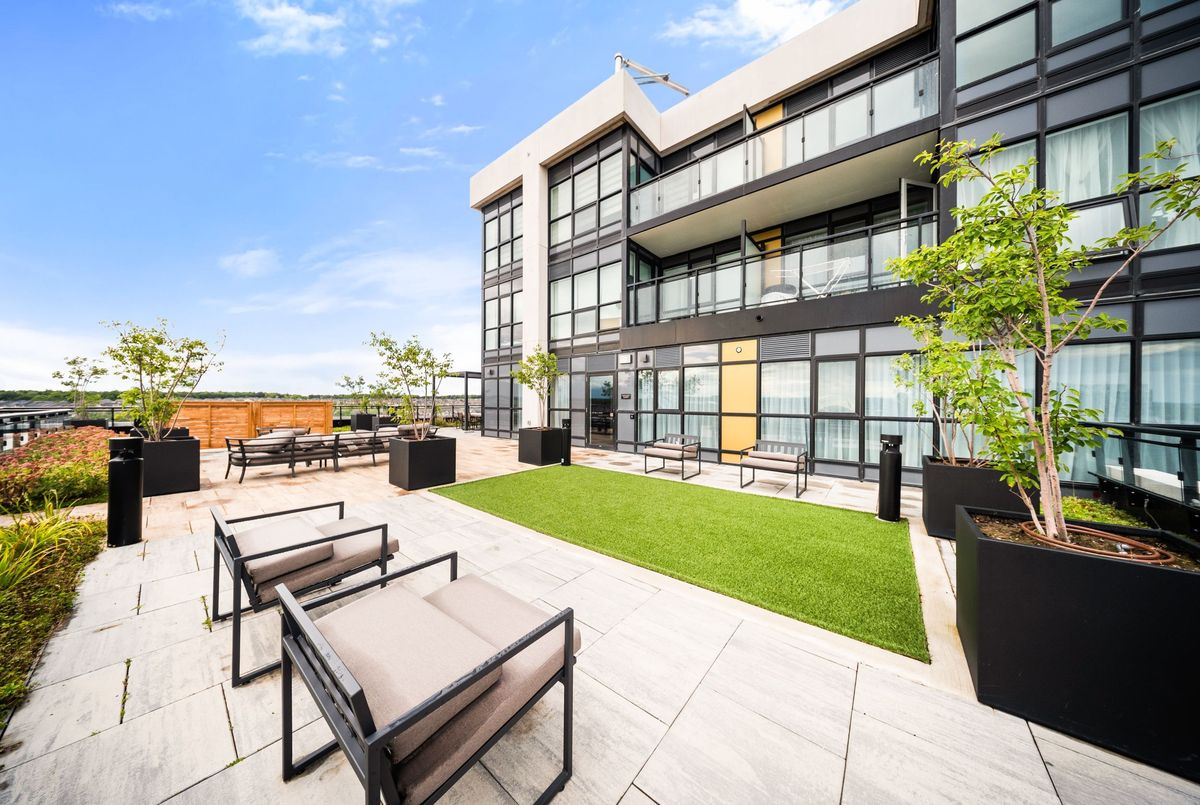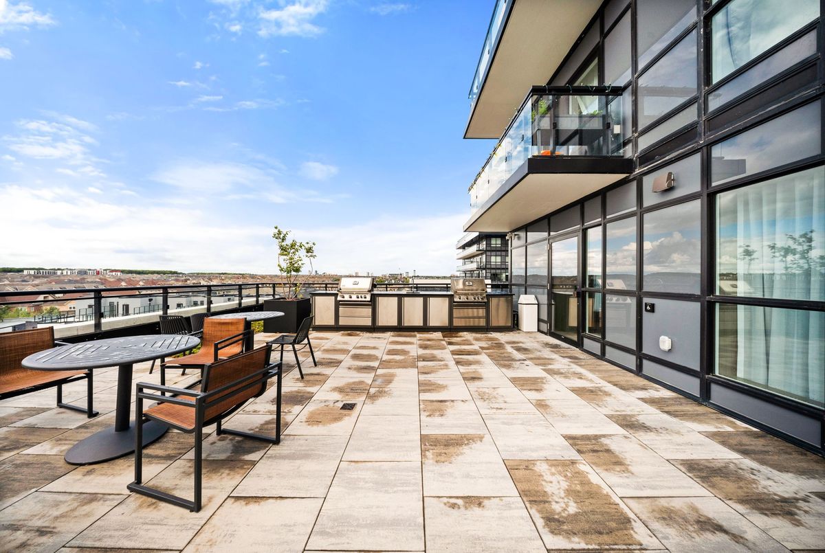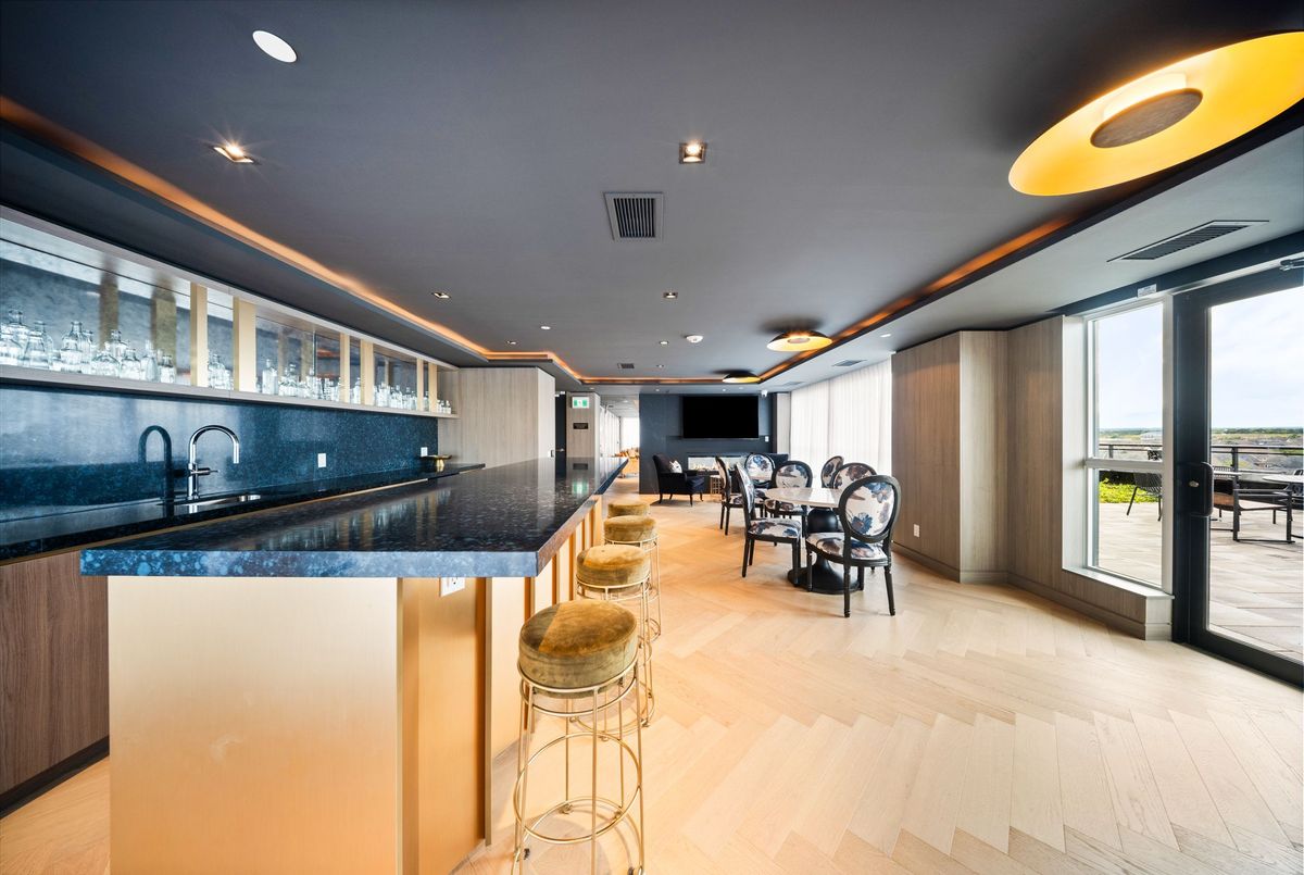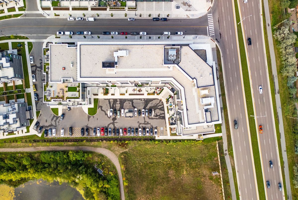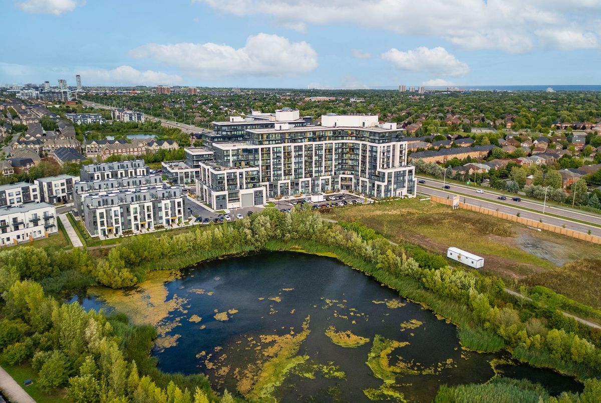 Welcome to Distrikt Trailside in North Oakville Condo Living Redefined! Discover boutique condo living at its finest in this recently completed boutique building, offering modern finishes, outstanding amenities, and stunning curb appeal. Perfectly positioned with an unobstructed northwest pond view, this residence combines contemporary design with everyday convenience. Step into the grand lobby, complete with 24-hour concierge service, onsite management, and secure parcel storage. Residents enjoy a host of lifestyle amenities including a furnished rooftop terrace with BBQs, fireside lounge, private dining with chefs kitchen, games room, yoga & pilates studios, pet spa, and a state-of-the-art fitness centre. This beautifully upgraded 1 Bedroom + Den, 1 Bathroom suite is flooded with natural light and showcases 9' ceilings, floor-to-ceiling windows, and wide-plank flooring for a bright, airy feel. The sleek modern kitchen features quartz countertops, stainless steel appliances, and stylish cabinetry, flowing seamlessly into the open living/dining space with a walk-out to a private terrace overlooking the lake. Additional highlights include: In-suite laundry with full-size washer & dryer, Secure underground parking with designated spot + Tesla Level 2 EV charger, Smart home integration & energy-efficient building systems Den ideal as a home office, guest room, or flex space. Enjoy walking distance to shopping, restaurants, Sixteen Mile Sports Complex, and scenic trails. Minutes to Glen Abbey Golf Club, Oakville GO Station, top schools, and major highways (403/407/QEW). Grocery, cafes, banks, and daily conveniences are right at your doorstep. This sought-after North Oakville community offers the perfect blend of urban convenience and natural beauty. Whether entertaining on the rooftop, enjoying nearby parks, or commuting with ease, this condo delivers turnkey, contemporary living at its best.