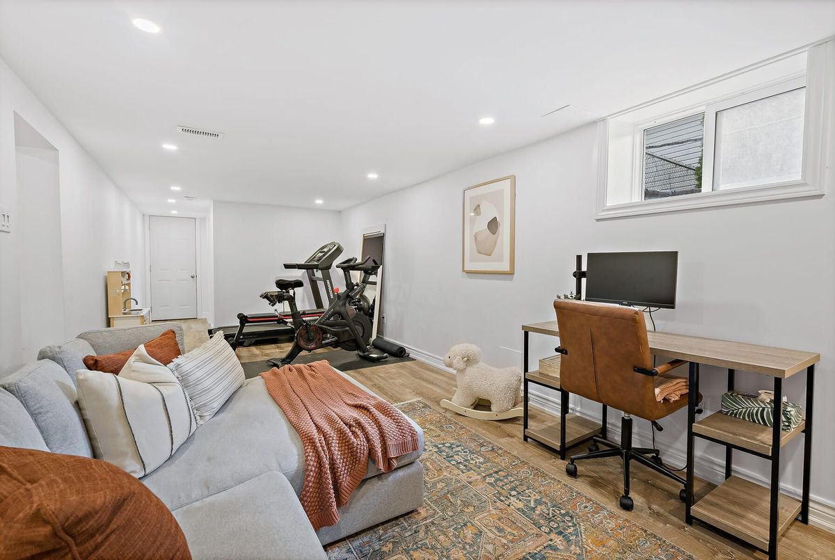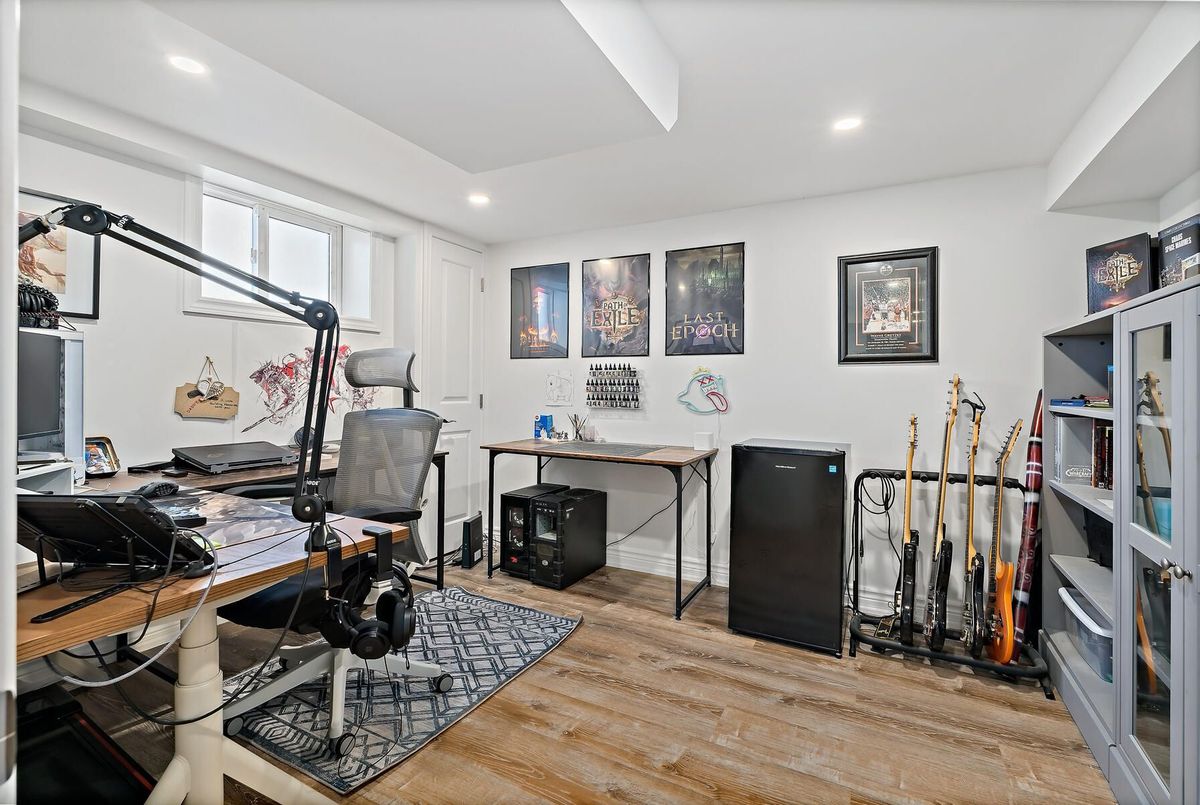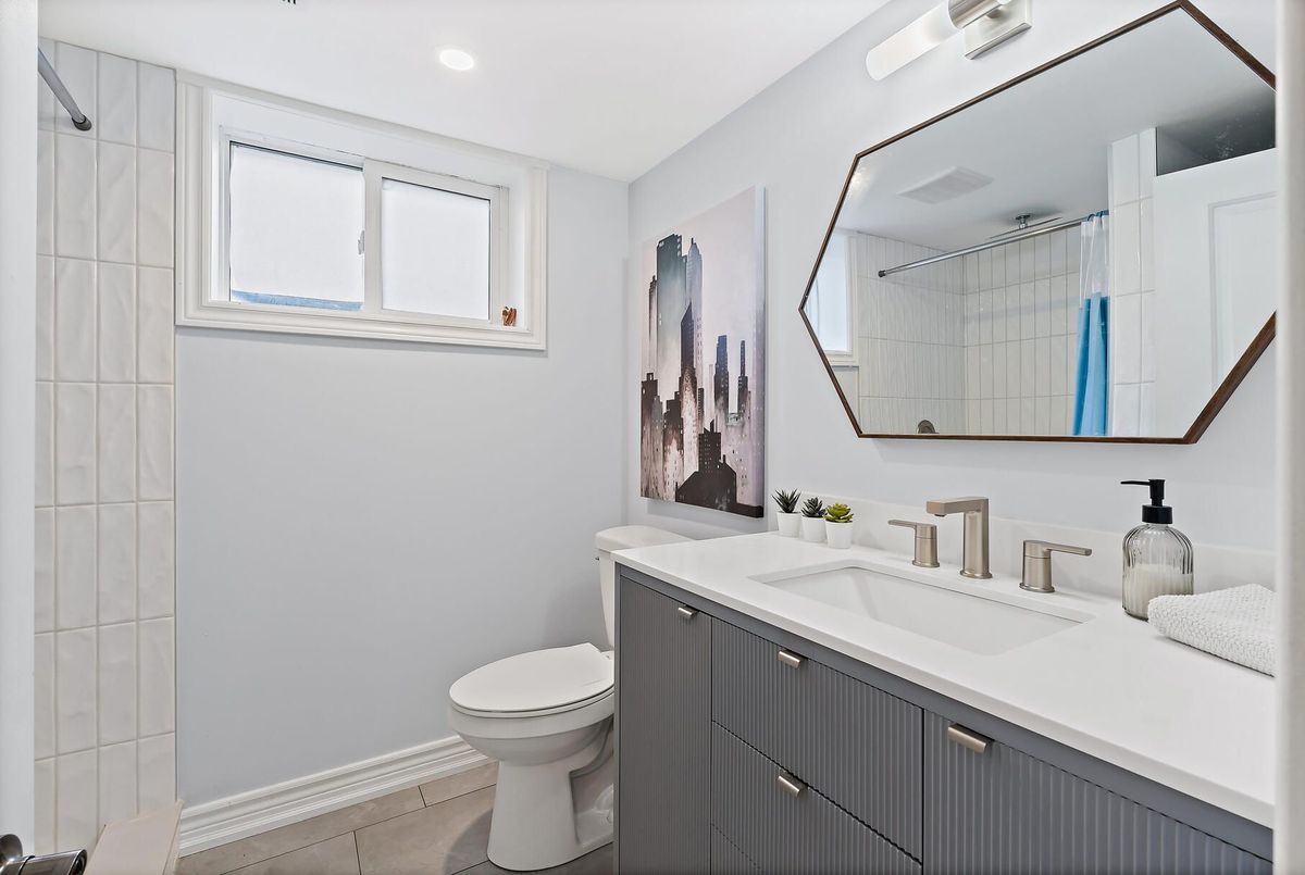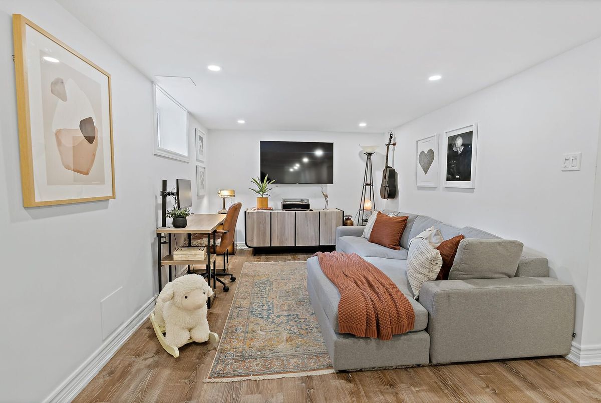 Must-See Bungalow with Modern Updates! Welcome to this beautifully updated 2-bedroom, 2-bathroom bungalow that offers a smart use of space and a warm, inviting atmosphere. Step into the bright and spacious living room, where a large bay window fills the space with natural light perfect for relaxing or entertaining.Enjoy cooking in the updated eat-in kitchen, complete with newer stainless steel appliances. Both main-floor bedrooms are conveniently located near the full bathroom. Downstairs, the finished basement offers incredible flexibility with a large recreation room, workout space, bathroom with walk-in shower, and a private office that could easily serve as a 3rd bedroom. Updates in the past 5 years include:* Windows & doors* Siding & eaves* Washer & dryer* Fridge & stove* Water softener & water heater* Furnace & heat pump* Front porch & backyard fire pit. Step outside to a large, private yard featuring a deck ideal for morning coffee or evening gatherings around the fire pit. This home blends comfort, functionality, and style all in a peaceful setting. No condo fees, no rental items, and just a short walk to the GO Station, restaurants, shopping, and schools.