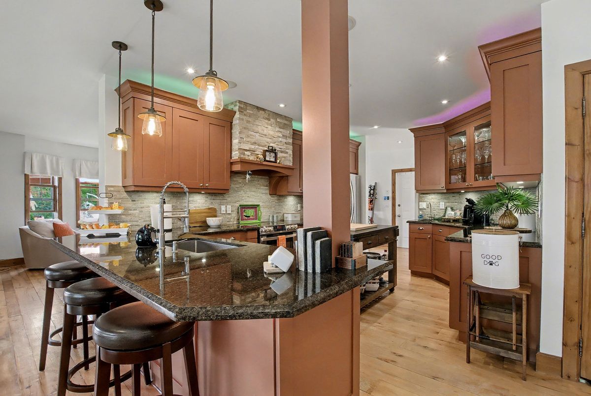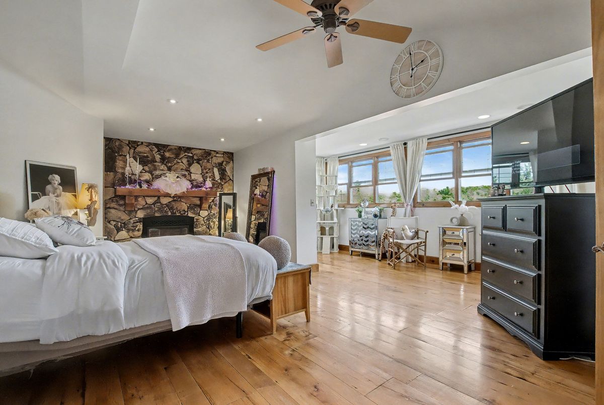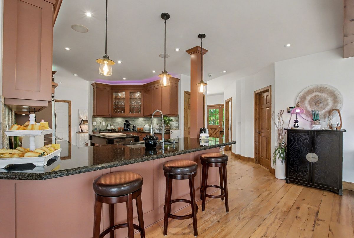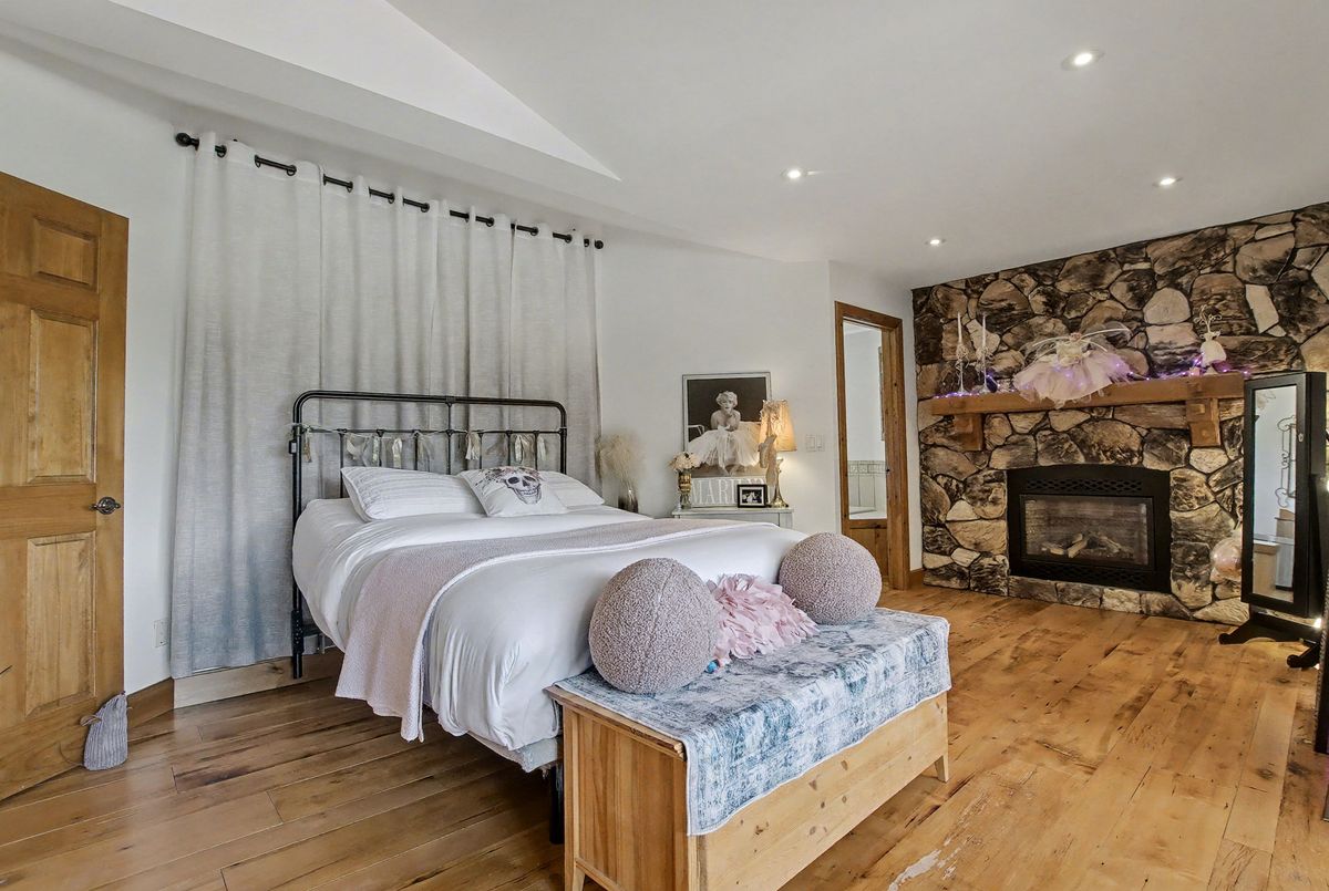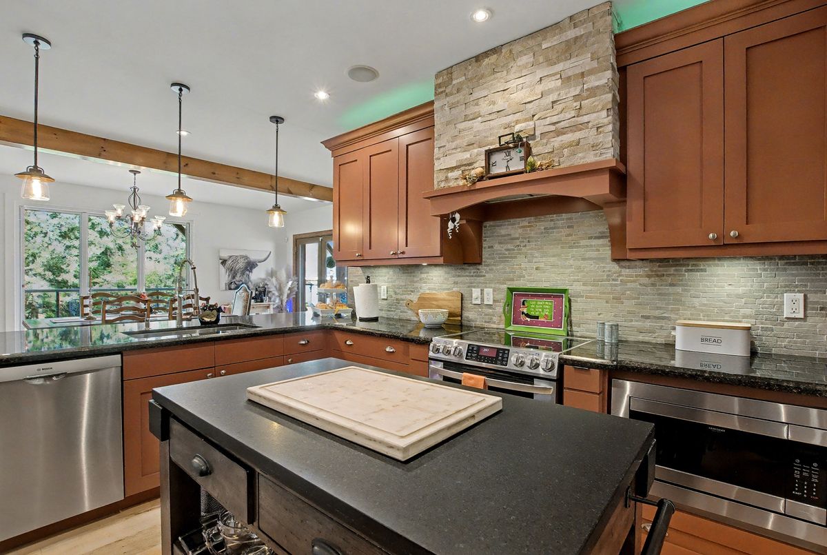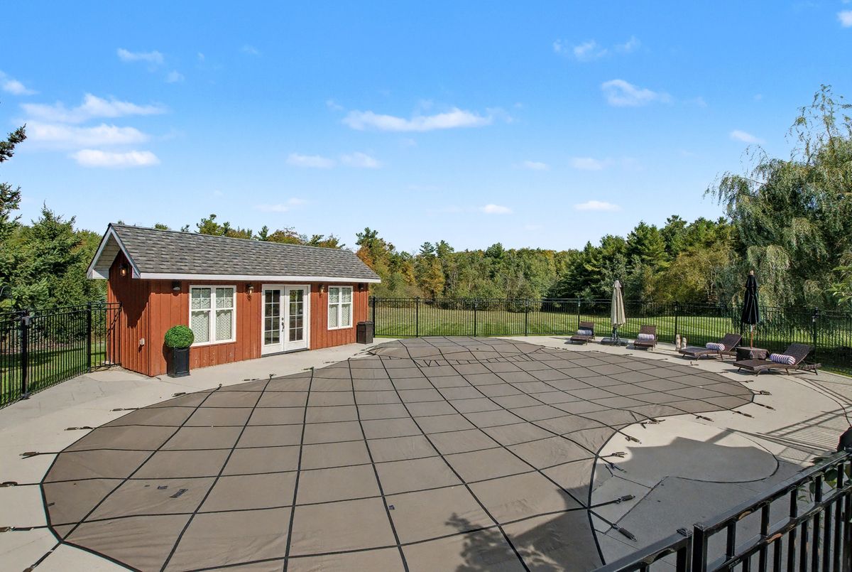 Nested away in a very secluded and quiet rural estate subdivision of just 20 homes. Barely visible from the road , the long paved drive winds through the trees to the open professionally landscaped gardens and home site. This Unique character wood sided home has the appearance of Log Home . Custom designed with large open rooms ideal to take advantage of the beautiful views from all windows.Features Central Custom Kitchen with Stainless Steel Appliances and Granite Counters with Breakfast Bar overlooks the Dining Rm with Magic Window walkout to decks , spacious Living Room with Floor to Ceiling Fireplace and Multiple Windows, Primary Bedroom with floor to ceiling Fireplace and gorgeous Ensuite and Views over Meadow, Builtins galore,Basement mostly finished just waiting for your choice of flooring, Covered Porches , Decks ,Cabana, in-ground free form 20 x 40 Heated Saltwater Pool , Pool house , Attached 2 car and separate single car garage, invisible fencing, 12 + acre lot with approx. 6 acres open .A very private character home that is secluded but not isolated.Located just 15 Minutes north of the HWY 401 and 25 . Cogeco Internet Available .All measurements and floor plans , Virtual tours are from interactive I-Guide Attached. **Pool liner has a tear close to coping, photo to follow.**