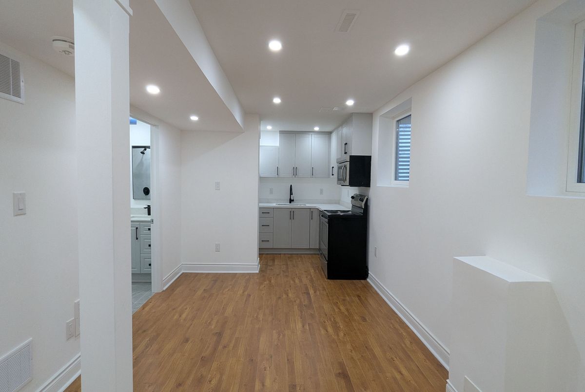 Brand New Legal Basement For Lease! Features of this basement. Spacious primary bedroom with ensuite laundry and closet. 2 Car Driveway parking tandem. Two extra large windows for lots of natural light. Large Private Patio/rec area perfect for barbceues, entertaining and outside space. Brand New Kitchen, Brand new bathroom and Appliances. Available Immediately! Tenant to pay 30% of utilities. Steps to park and transit. Close to all shopping amenities.