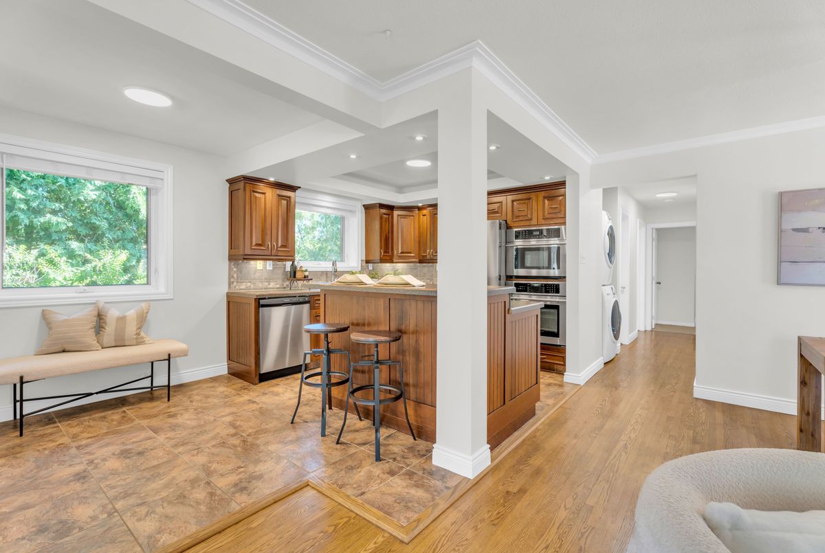 This charming bungalow offers versatile living with income potential, perfect for first-time buyers, investors, or multi-generational families. Enjoy the convenience of a legal basement apartment with a separate entrance, featuring a spacious one-bedroom, one-bathroom layout. Large windows brighten the living space, and fresh paint keeps it feeling welcoming and move-in ready. Both the main and basement units have their own separate laundry facilities, allowing for maximum convenience and privacy. Upstairs, you'll find three well-sized bedrooms and a full bathroom, all filled with natural light and a cleverly placed sun tube. The updated kitchen is designed with convenience in mind, offering pull-out cabinetry and a functional layout that makes cooking feel just a little less like a chore. The double car garage provides ample storage, and the property's location puts you close to schools, shopping, and local restaurants. Whether you're looking to offset your mortgage with rental income, accommodate multiple generations under one roof, or just enjoy the simplicity of bungalow living, this home is ready to meet your needs.