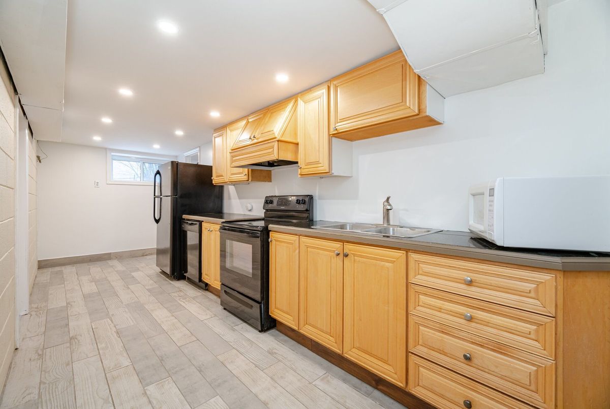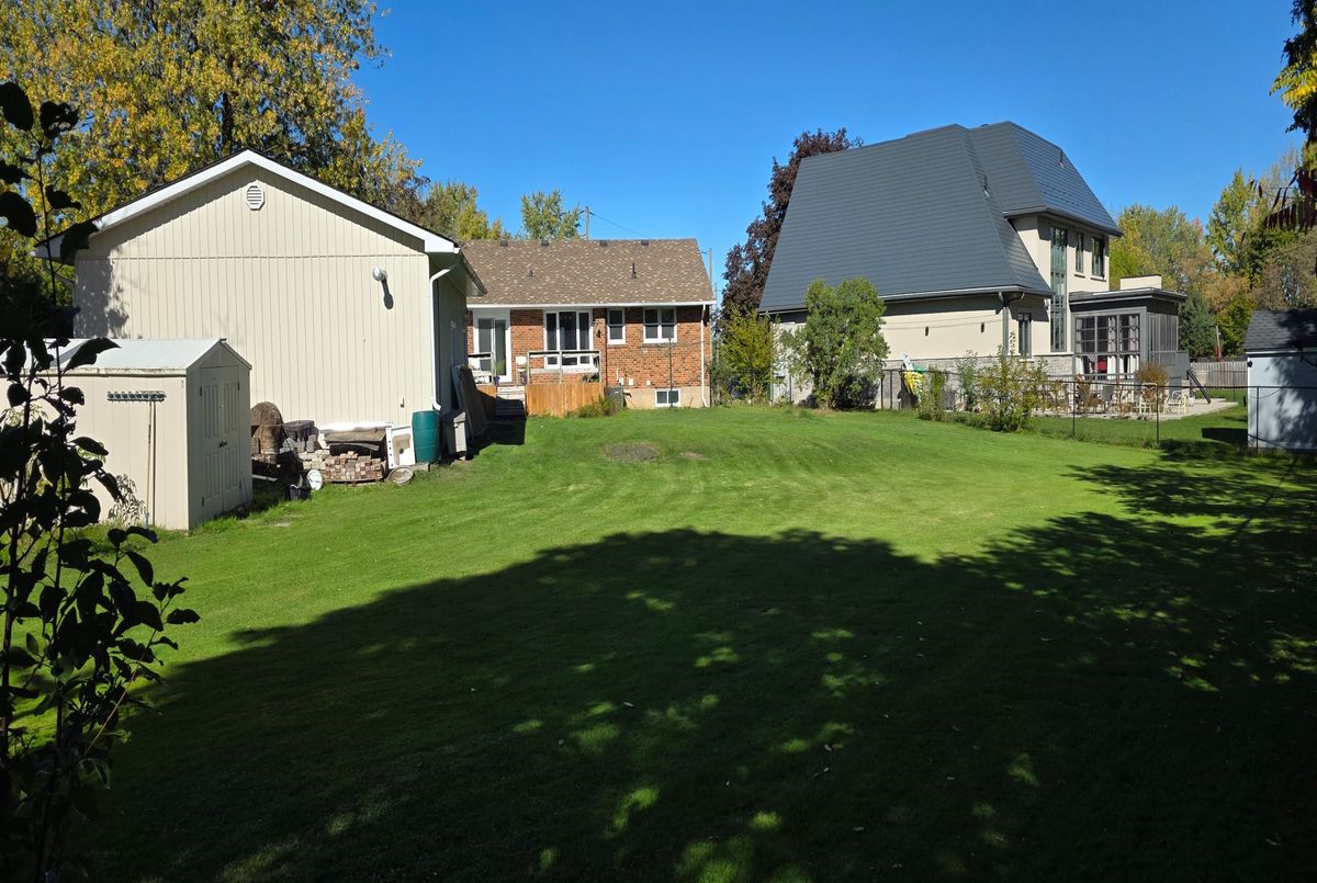 The opportunities are endless for this unique property. Live, rent or build on the massive 0.36 acre pie shaped lot located on a quiet court surrounded with other new custom build homes. First time offered on MLS, these types of properties are usually purchased privately before having a chance to hit the market. Currently, an updated, move in condition bungalow with 3 bedrooms on the main floor and 2 bedrooms in the basement, 2 kitchens & 2 full bathrooms providing multi-living quarters. Large deck in the back of the house is ideal for summer evenings, long driveway allows for multiple vehicle parking. Detached from the house is 750 square feet, gas heated, double door garage that can fit up to 4 cars or can be used as a hobby workshop. This is the biggest lot on this street, up to 190 feet long to the furthest point and stretches to approximately 125 feet wide. This size lot allows for a massive home to be built with less stipulations. Currently included are drawings for a 3700 square foot home but the max allowed size is much bigger than that. Zoning allows multiple Additional Residential Units. Don't miss your chance to secure a truly unique offering!