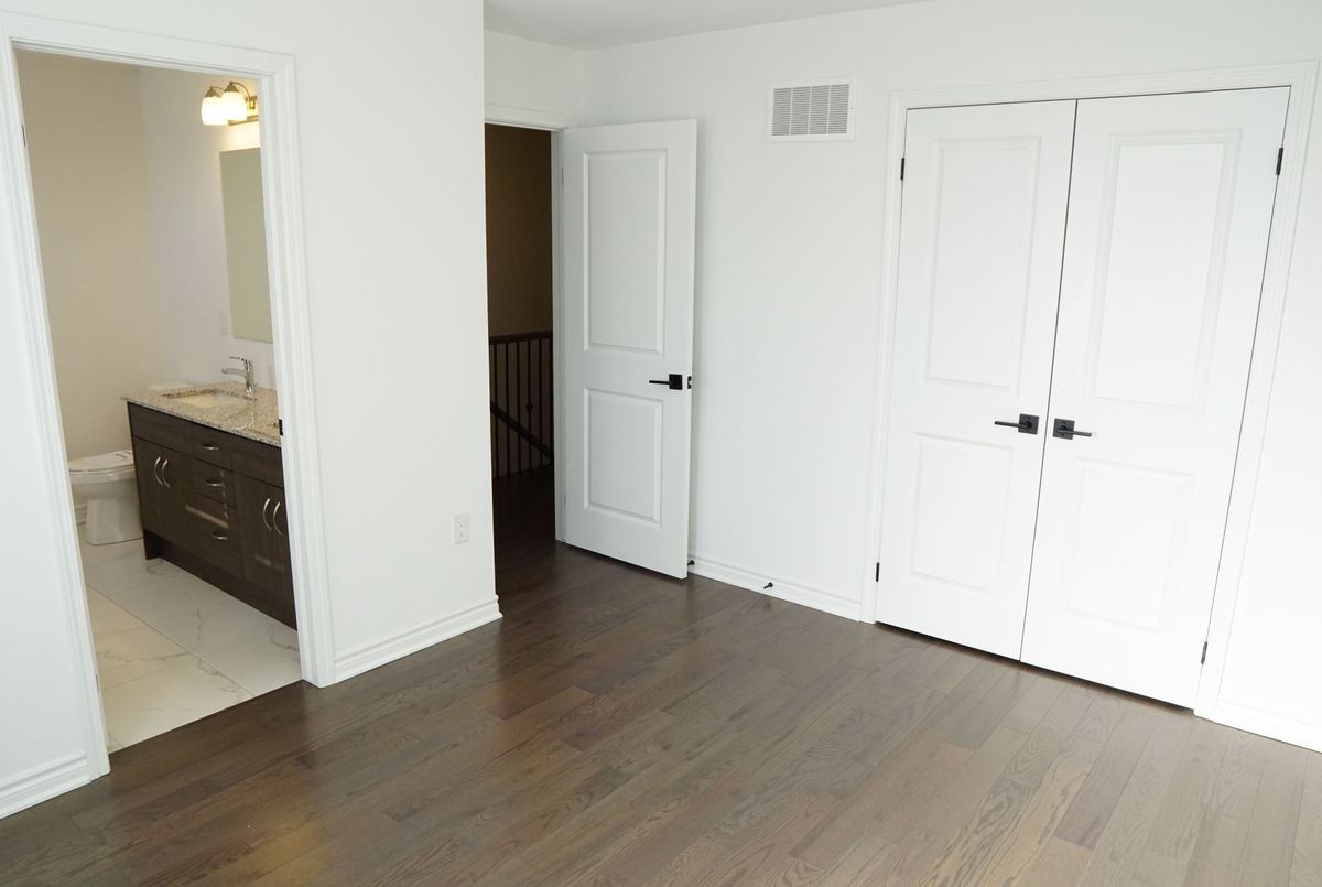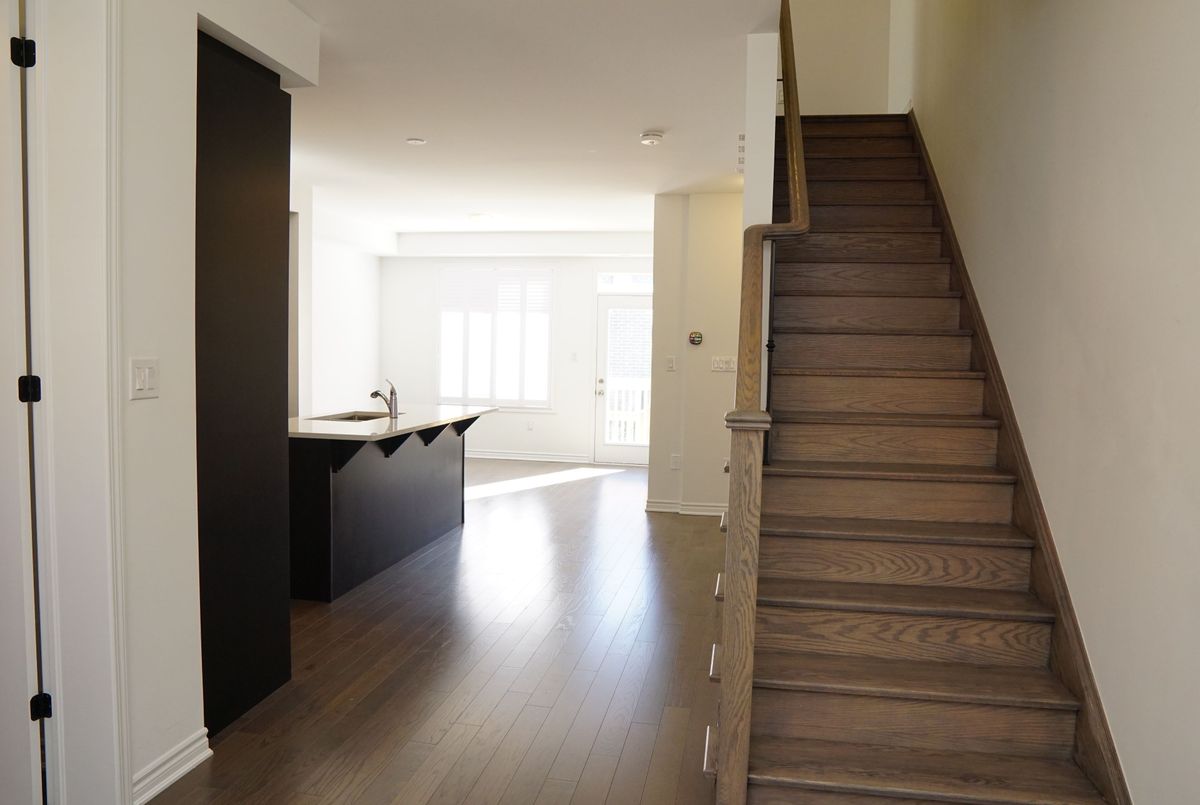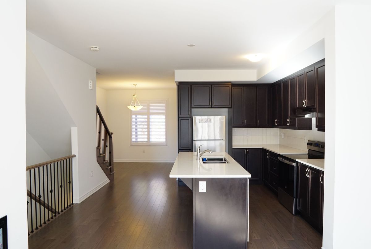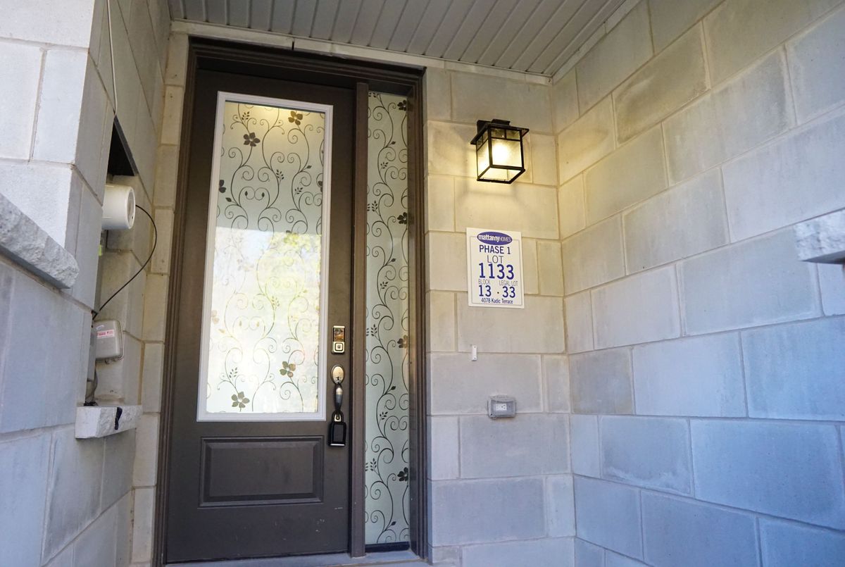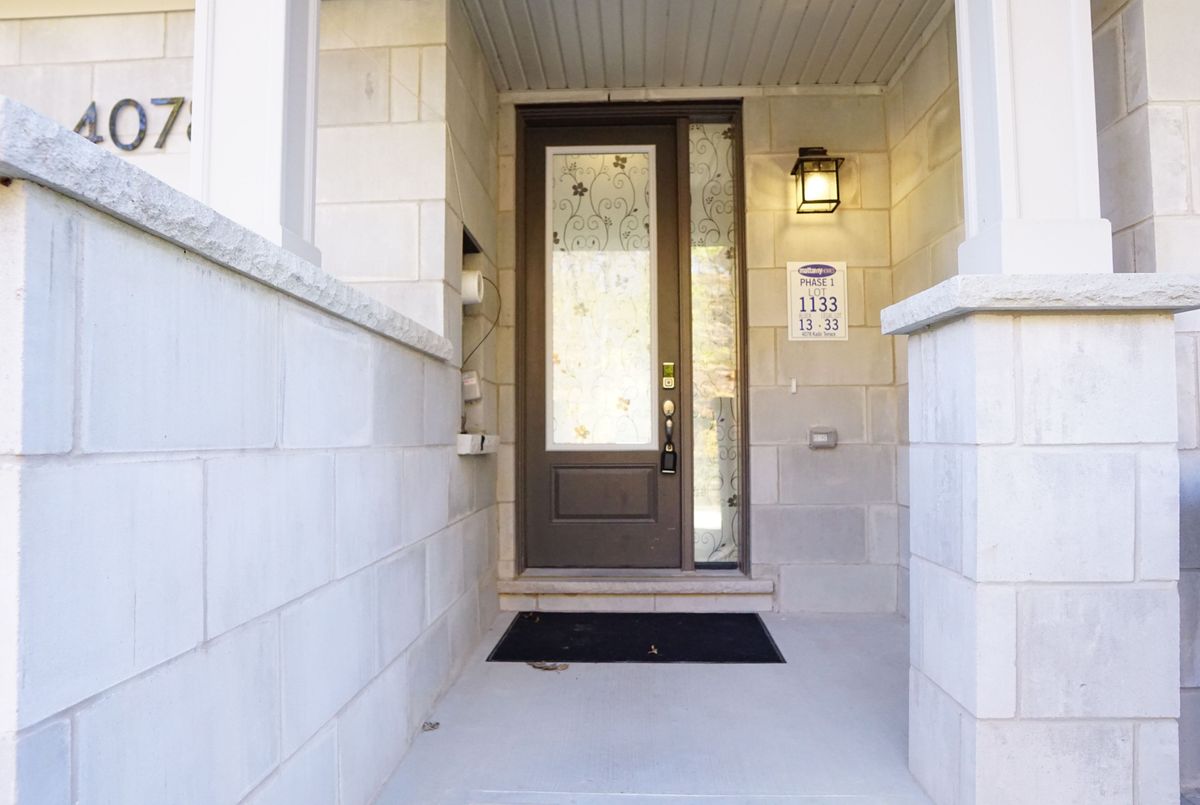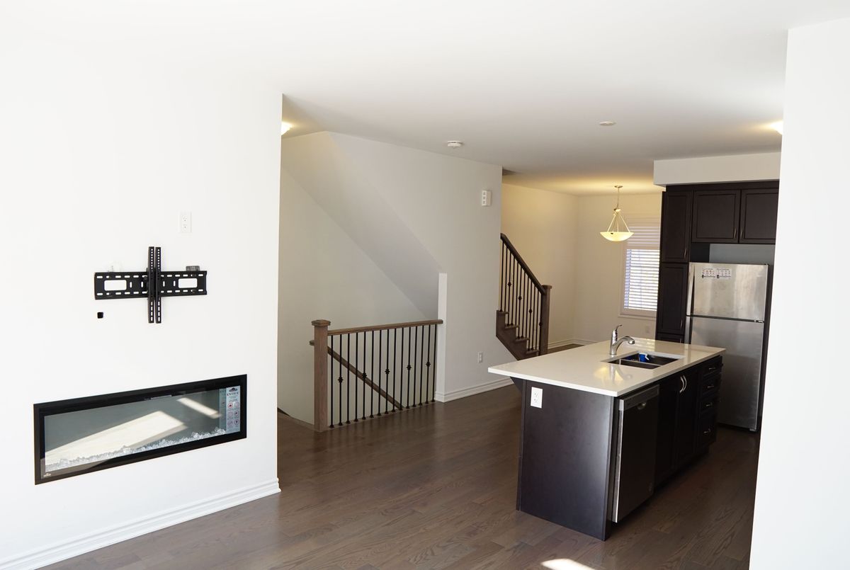 Welcome to 4078 Kadic Terrace! Just over one year new new. Mattamy-built freehold townhome backs onto woods with no walkway and features 4 bedrooms, 4 bathrooms, plus a home office/den/kids play room. With 9' ceilings on the main and second levels, hardwood flooring throughout, and no carpet, this upgraded home offers a bedroom with a full ensuite and wet bar on the main level, perfect for guests, in-laws, or a private office. The modern kitchen with extra pantry opens to the dining and great room, which leads to a private deck for morning coffee or evening relaxation. The spacious primary suite boasts a walk-in closet, double sinks, and a luxurious upgraded shower. Additional upgrades include an electric fireplace, bath oasis, super shower, and hot/cold water lines in the garage. A rare opportunity to own a stylish and functional home in a sought-after location!