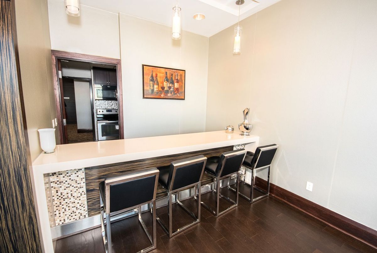 Welcome to this stunning Penthouse Suite at 339 Rathburn Rd W! Modern and spacious 1 Bedroom + Den layout with breathtaking unobstructed southwest views of the city skyline. Bright open-concept living and dining area with hardwood floors and large windows that bring in natural light. The den is perfect for a home office or guest room. Luxury kitchen with stainless steel appliances, quartz counters, and upgraded cabinetry. Enjoy first-class building amenities including gym, pool, sauna, bowling alley, movie room, and more. Steps to Square One, Sheridan College, Celebration Square, transit, and highways. Penthouse living at its best! Steps to Square One, Celebration Square, Sheridan, and transit. Modern kitchen with stainless steel appliances. Amazing amenities: gym, pool, sauna, bowling alley, cinema.