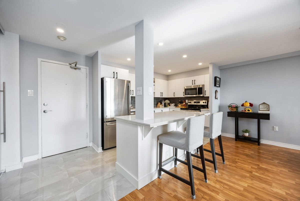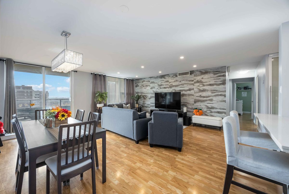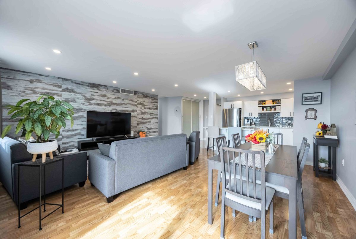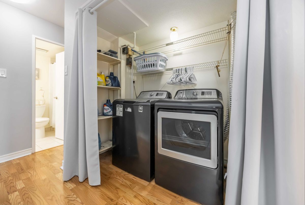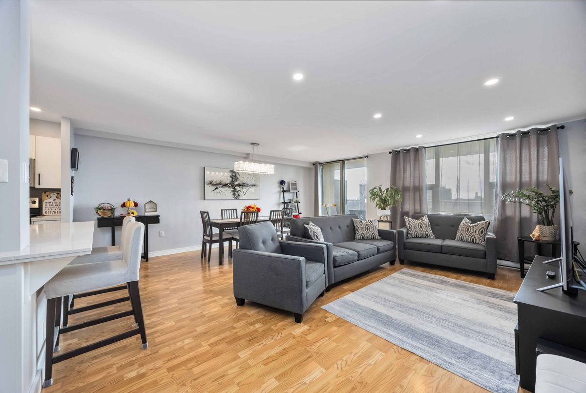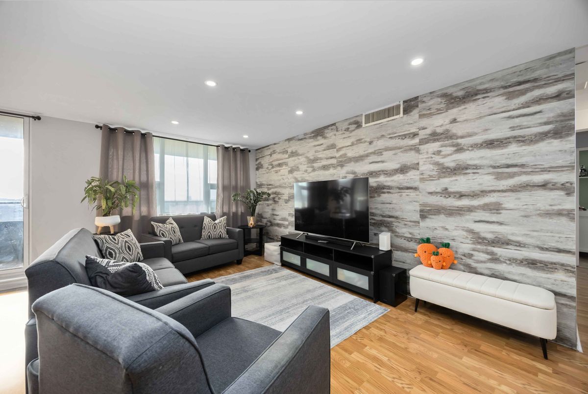 Bright, Spacious & Move-In Ready - Welcome to This Beautiful 3 Bedroom Etobicoke Condo! Boasting over 1,300 sq ft of well-appointed living space featuring 3 large bedrooms and two 4 piece bathrooms. This updated condo showcases a sleek modern kitchen with stainless steel appliances, quartz countertops, and plenty of storage, flowing seamlessly into the open-concept living and dining area ideal for entertaining or relaxing at home. Enjoy stylish laminate flooring throughout, custom sliding doors, and a convenient in-suite laundry. The spacious primary bedroom features a walk-in closet and private ensuite for added comfort. Step outside to your private balcony and take in rare, south-facing views of the stunning Toronto skyline. Located in a vibrant and sought-after Etobicoke neighborhood, you're just steps to schools, parks, shopping, and transit right at your door!, making everyday living incredibly convenient. Resort style amenities including an indoor pool, gym, tennis courts, sauna, laundry room, games room, and party room. One parking spot is included, and maintenance fees cover all utilities, internet, and TV - offering peace of mind and exceptional value. A perfect blend of space, style, and location - this condo is ready to welcome you home!