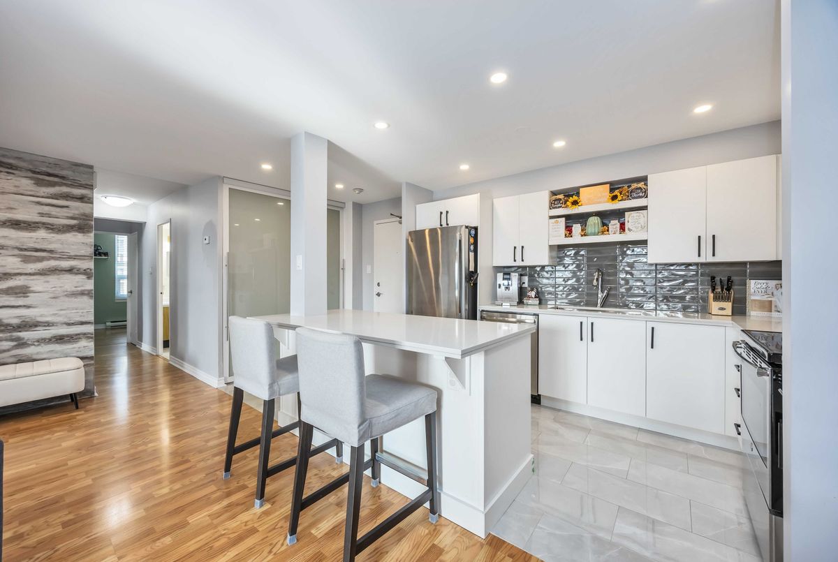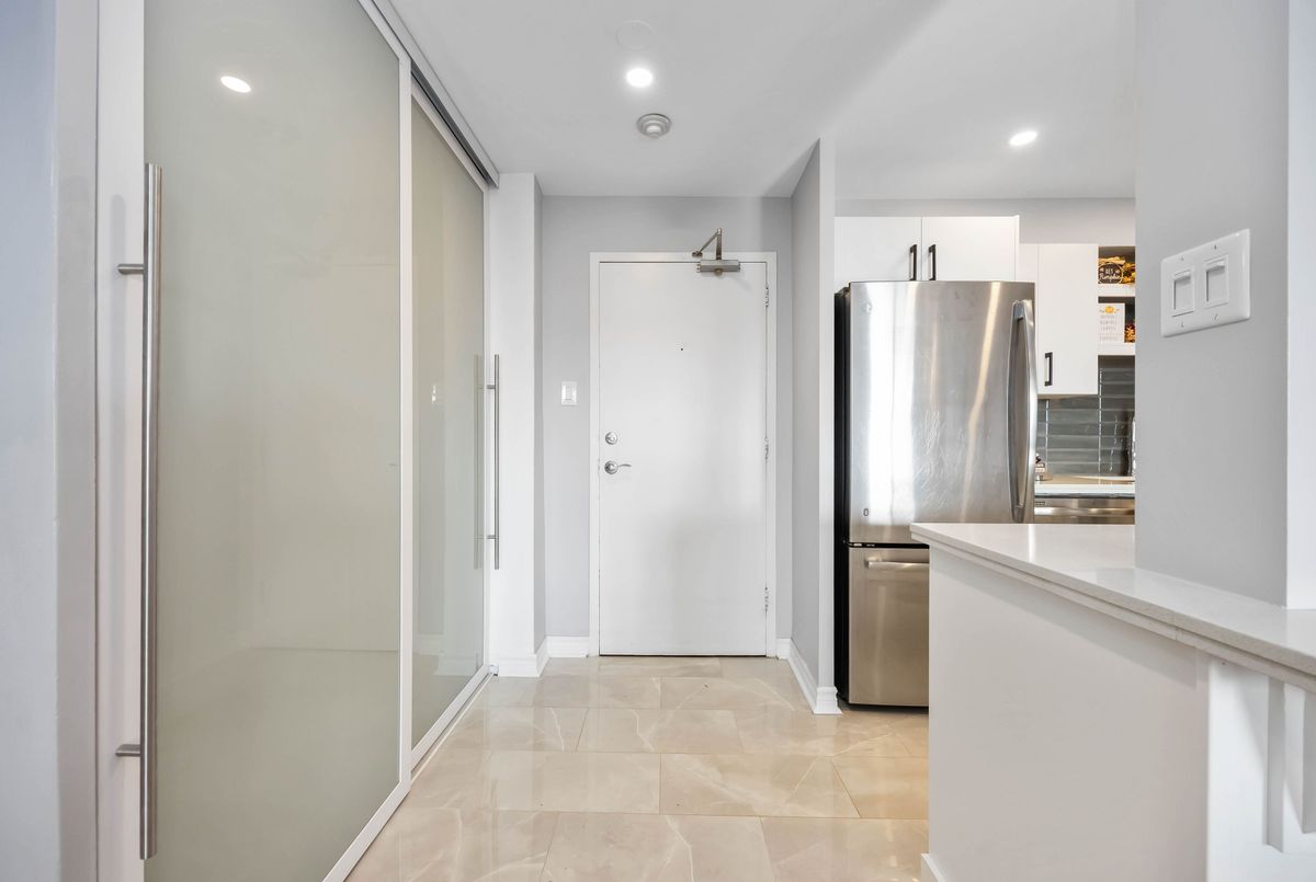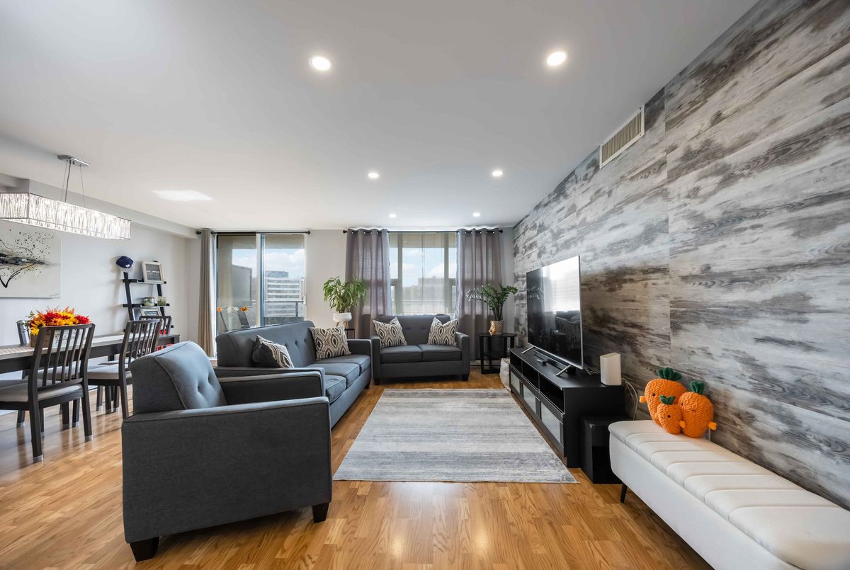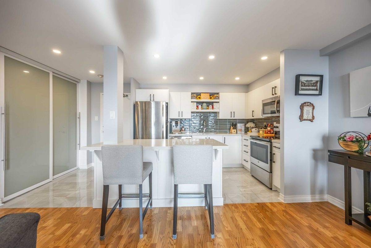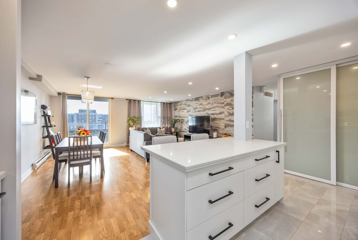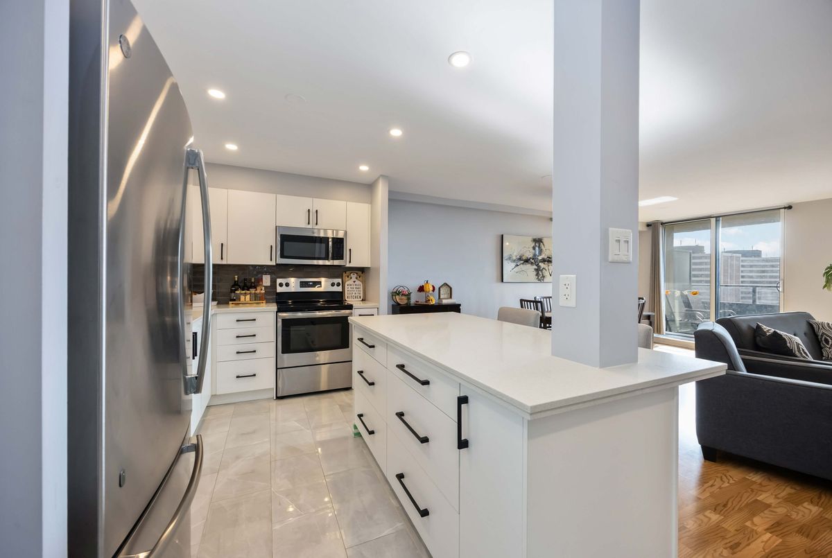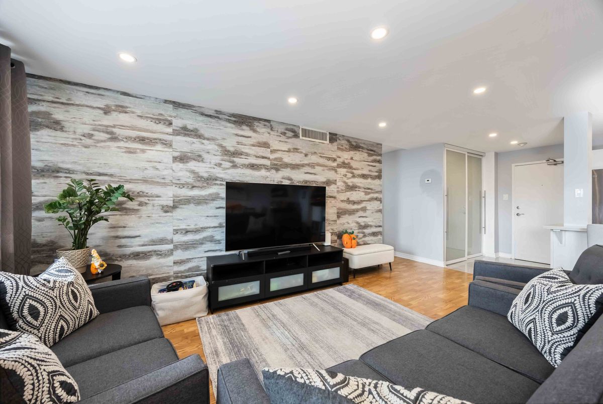Bright, Spacious & Move-In Ready - Welcome to This Beautiful 3 Bedroom Etobicoke Condo! Boasting over 1,300 sq ft of well-appointed living space featuring 3 large bedrooms and two 4 piece bathrooms. This updated condo showcases a sleek modern kitchen with stainless steel appliances, quartz countertops, and plenty of storage, flowing seamlessly into the open-concept living and dining area ideal for entertaining or relaxing at home. Enjoy stylish laminate flooring throughout, custom sliding doors, and a convenient in-suite laundry. The spacious primary bedroom features a walk-in closet and private ensuite for added comfort. Step outside to your private balcony and take in rare, south-facing views of the stunning Toronto skyline. Located in a vibrant and sought-after Etobicoke neighborhood, you're just steps to schools, parks, shopping, and transit right at your door!, making everyday living incredibly convenient. Resort style amenities including an indoor pool, gym, tennis courts, sauna, laundry room, games room, and party room. One parking spot is included, and maintenance fees cover all utilities, internet, and TV - offering peace of mind and exceptional value. A perfect blend of space, style, and location - this condo is ready to welcome you home!