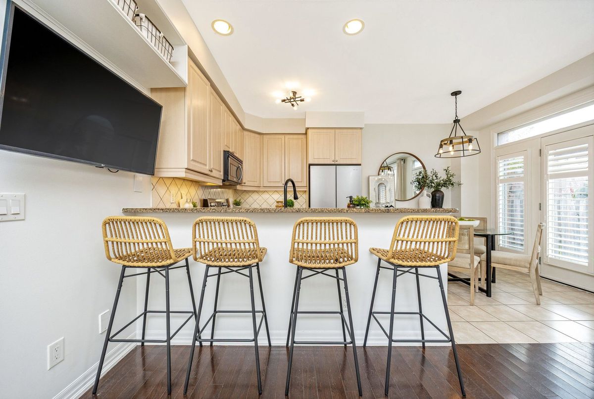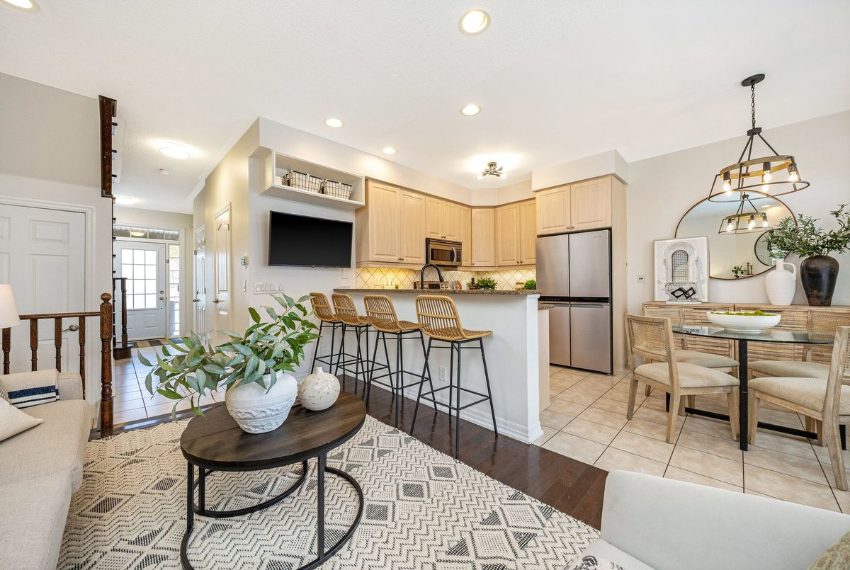 You're not going to want to miss this one! This beautiful Heathwood-built freehold (no condo fees) townhome offers approx. 1,765 sq. ft. of finished living space in Milton's highly sought-after, family-friendly Scott neighbourhood. With 3 bedrooms, 3.5 bathrooms, & parking for up to 3 vehicles (2 in the extended driveway & 1 in the 20'3" deep garage), this home is perfect for growing families. The garage depth even allows for extra storage or a handy workbench area! Enjoy peace of mind knowing this home is Energy Star Certified, helping you save on utility costs. Inside, you'll find 9 ft ceilings on the main level, neutral paint tones, & it's carpet-free throughout so it's easy to maintain & great for those with allergies. New window glass (2023) on main and second floors (excluding French & front doors) means no need to worry about that costly expense for years to come! The dishwasher & fridge were replaced in 2023, & all toilets replaced in 2022, so many updates are already done for you! Upstairs, there are 3 good-sized bedrooms, including a primary suite with a walk-in closet featuring a custom organizer, & a 4-piece ensuite bathroom. The engineered hardwood flooring (2021) on this level adds warmth & durability. Step outside to your awesome backyard w/ a stone patio and a good sized grass area that's perfect for barbecues, playtime, or relaxing. The professionally finished basement (2021) is a showstopper, featuring a recreation room, built-in cabinetry, custom bar/snack area, chic laundry station with sink, stylish office nook, & a beautiful 3-piece bathroom - ideal for family movie nights or guests. You'll love this location, close to great schools, parks, & trails, plus Milton's charming downtown & farmers' market are just a short walk away. The Sherwood Community Centre, everyday shops, the escarpment, & Glen Eden Ski hill, are nearby too, with easy access to Hwy 401 for commuters. This home truly has it all, space, style, comfort, & an amazing location.