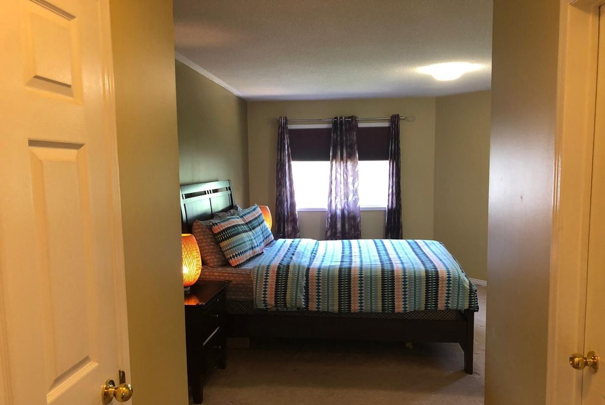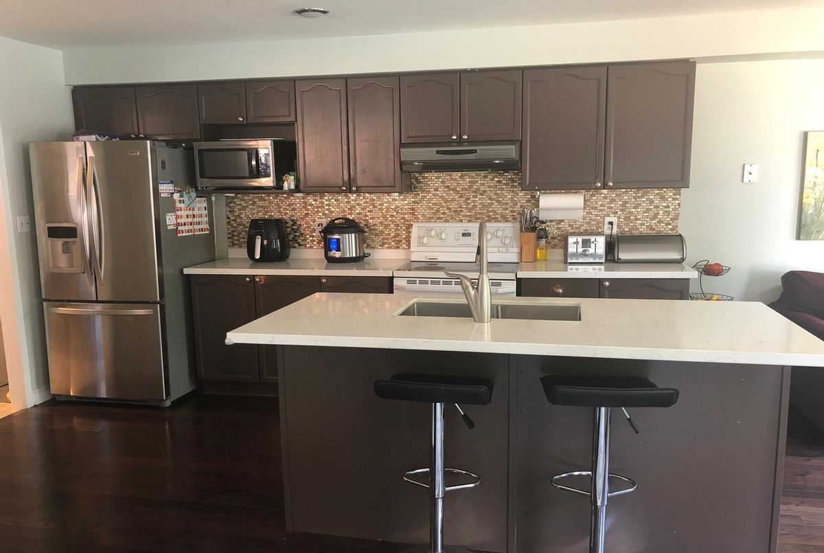 Available immediately Mattamy-built home featuring three bedrooms, situated on an expansive pie-shaped lot. The property includes a spacious eat-in kitchen with a central island, which overlooks the family room and provides access to a custom deck. The open concept layout combines the living and dining rooms, enhancing the sense of space. The master suite is equipped with a separate shower, an oval tub, a walk-in closet, and an additional second closet. The second and third bedrooms share a Jack and Jill bathroom. Direct access to the garage, and the lease incl only the main and upper levels of the home; basement is not included and leased separately. Tenants are responsible for sharing utilities with the basement tenant, with a 70-30 split. Tenant Pays 70% Utilities & HWT Rental and Tenant Insurance.