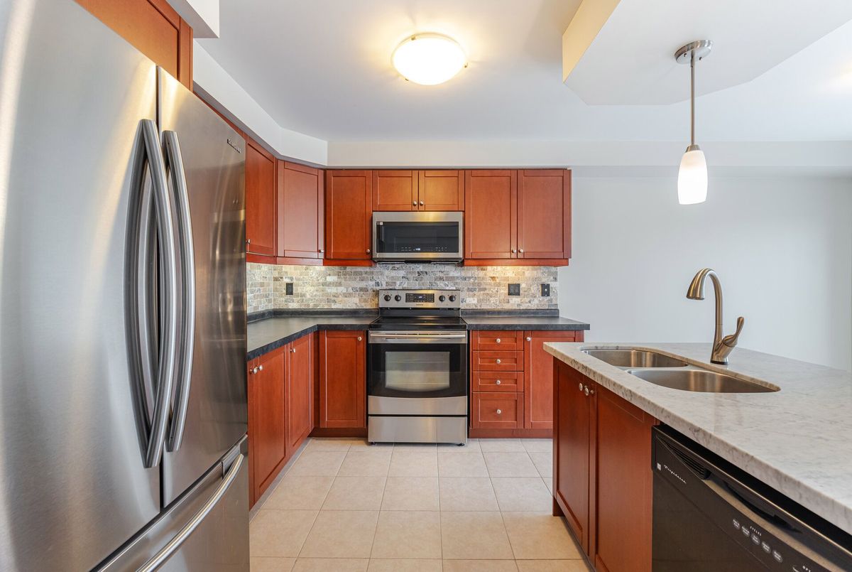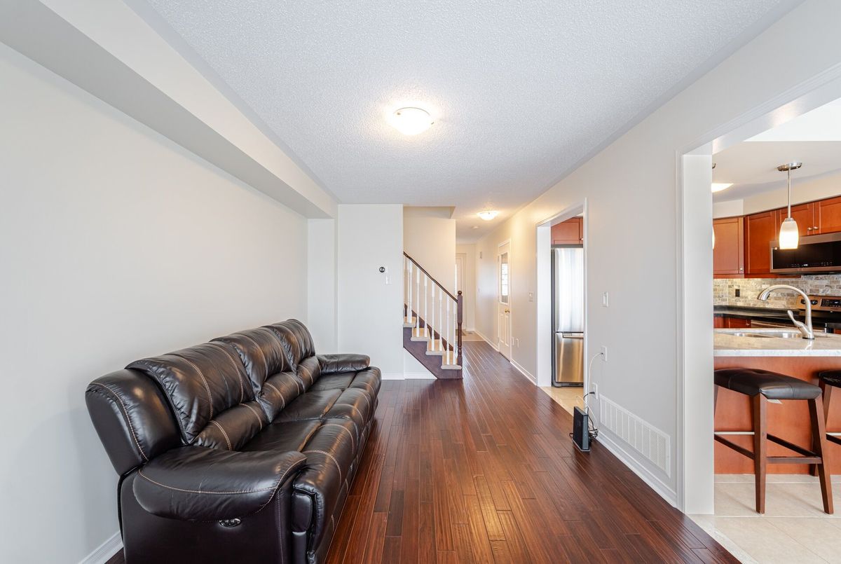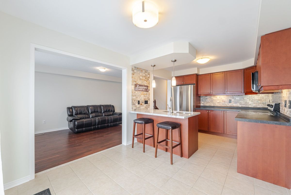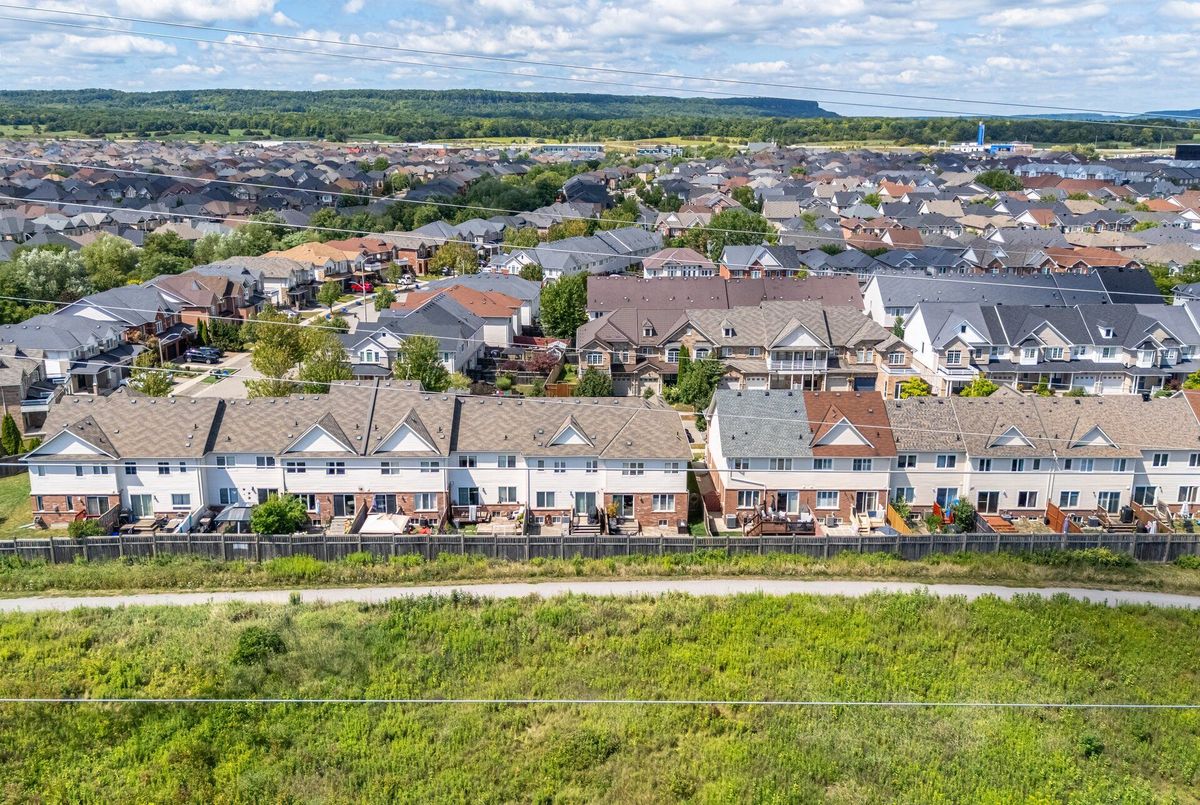 Beautifully Maintained Freehold Townhome in Alton Village - Burlington's Top-Rated School District! This bright and move-in-ready 1348 sq. ft. home offers 3 spacious bedrooms, 2.5 bathrooms, and a finished basement with approx 460 sqft. of additional living space. A large covered porch and double door entry welcome you into the main floor boasting hardwood flooring and a stylish kitchen with marble countertops, stone backsplash, and maple cabinetry.Freshly painted throughout, the home features a primary suite with a large walk-in closet and a 4-piece ensuite. Two additional bedrooms share a well-appointed main bath. This home offers a private backyard with no houses behind and backs onto a walking path leading to a dog park, nature ponds, sports fields, and a community recreation centre/library. Perfect for families and first-time buyers alike, this home is ideally located close to Hwy 407, major retail shopping and restaurants, excellent schools, parks, the GO Station, and public transit. Lovingly cared for and in exceptional condition - this is a must-see home!