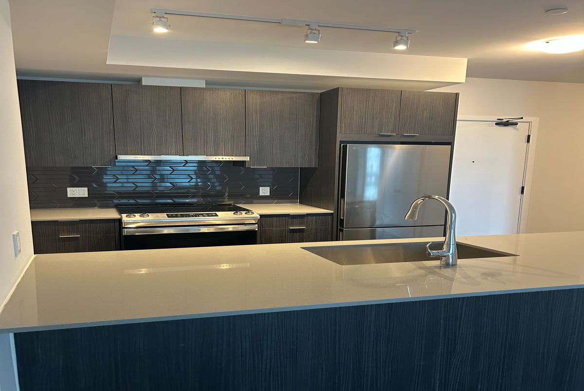 Welcome to urban living in the 1 bedroom + den suite located in the modern and luxurious Avia building positioned in the heart of Mississauga's Parkside Village. This spacious 666 square foot home is available for lease and showcases a wonderfully designed space with a flawless blend of style and functionality. The "Float" model is a sun-filled haven with modern finishes and fabulous city views. The open concept layout presents the ideal atmosphere for entertaining family and friends. Sleek kitchen features breakfast bar, stainless steel appliances and pristine granite countertops. Versatile den can serve as an office, reading nook or guest room. Included in the suite you will appreciate the in-suite laundry and one underground parking space. Relish in tranquil mornings or quiet evenings on your private balcony - a bonus extension of your living space. An abundance of building amenities include 24-hour concierge, fitness centre & yoga studio, party room, media lounge, outdoor terrace with BBQs, games lounge, theatre room and kids play zone. Don't miss this opportunity to reside in one of Mississauga's most sought-after locations, just steps from the LRT, Celebration Square, Square One and Sheridan College and with effortless access to highways 401, 403 and the QEW!