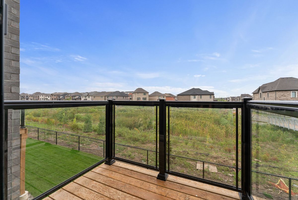 Stunning and Elegant Brand New executive townhouse in Oakville's prestigious Joshua Creek community. Never Lived-in. Offering 3,163 sq. ft. of exceptional finished living space. 4-bedrooms, and 5 bathrooms. Three balconies (two front, one rear) and two laundry areas for maximum comfort. The main floor impresses with soaring coffered ceilings, an electric fireplace, and a Gourmet kitchen featuring Upgraded quartz countertops, an upgraded backsplash, luxury Stainless Steel appliances, and a 36" 6-burner gas Stove. From the dining and living areas, step out to a balcony overlooking the tranquil ravine, a perfect setting for morning coffee or evening gatherings. The second floor hosts three spacious bedrooms, including a primary suite with a walk-in closet and spa-inspired ensuite. A rare third-floor loft with its own bathroom and balcony provides a private retreat, ideal for a guest suite, lounge, office or second primary suite with an ensuite. Both 2nd and 3rd. Floors have 9 Ft. Ceiling. The bright walkout basement with full bathroom, second laundry roughed-in, ideal for partying, gym, or even in-law suite. Beautifully designed with thoughtful upgrades and abundant natural light, 3077 Perkins Way balances luxury and functionality in one of Oakville's most desirable neighbourhoods. Surrounded by top-ranked schools, scenic trails, and easy access to highways, shopping, and transit, this residence delivers refined living in a prime location. A gorgeous home in a great neighborhood. Located Steps to Dundas Street and Heartbeat to hwy 403. Zebra Blinds on all the Windows.