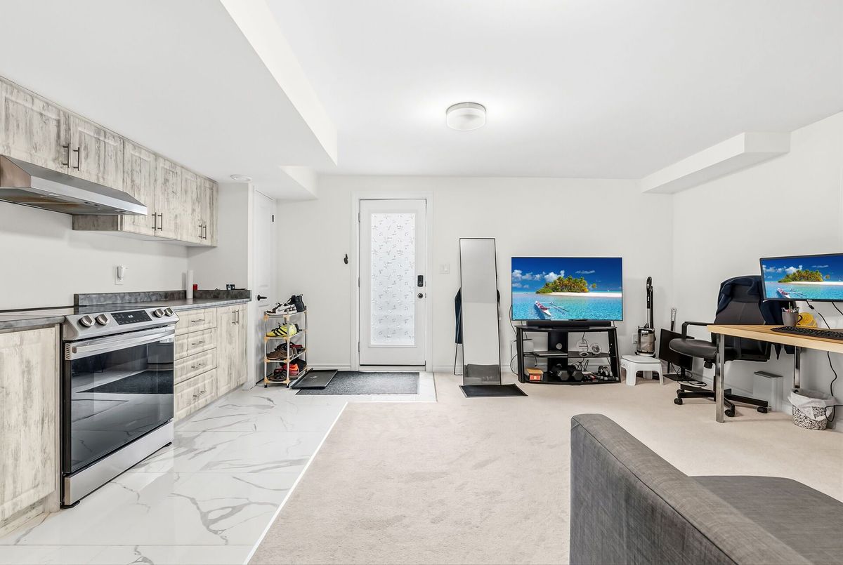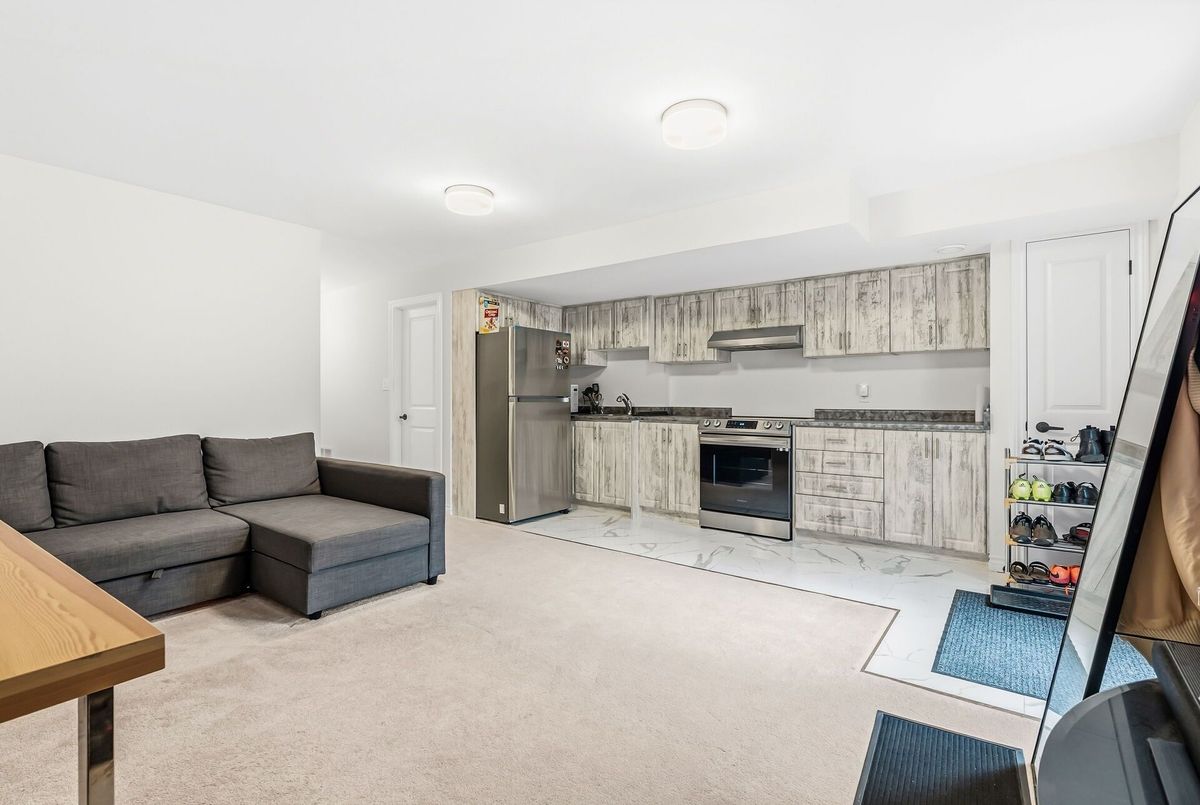 Stunning semi-detached home built by Country Homes, less than 5 years old and impeccably maintained-feels like new! Featuring 3+1 bedrooms, 3.5 baths, Separate Family Rm, and a spacious 2667 sq ft layout including a 647 sq ft builder-finished basement with a separate entrance, bedroom, kitchen, and full bath-ideal for in-laws or rental potential. Elegant double door entry opens to a bright, open-concept main floor with soaring 9' ceilings, oak staircase, and over $50K in builder upgrades, including quartz countertops, extended-height cabinets, chimney hood fan, custom pantry, upgraded flooring, and a cozy gas fireplace. The chef's kitchen boasts a large island with BBQ gas line for indoor-outdoor entertaining. Enjoy a premium lot with extended driveway, no sidewalk, concrete patio in backyard, and large storage space in the basement. Located in a growing family-friendly neighbourhood close to schools, parks, and amenities. A perfect blend of luxury, space, and function, Must See!