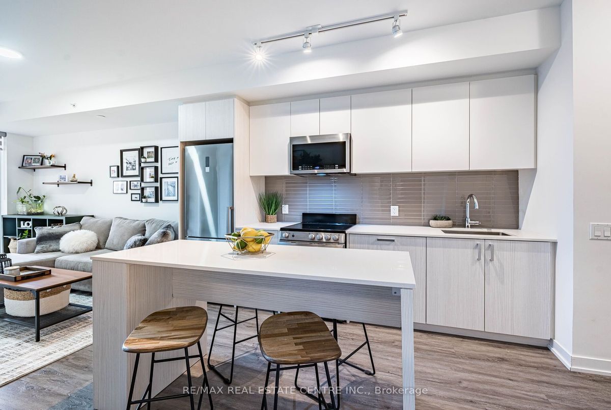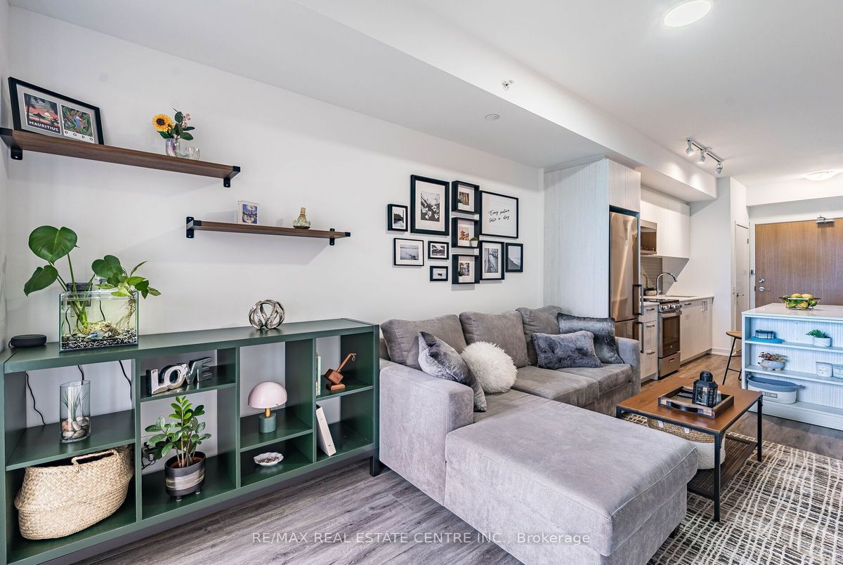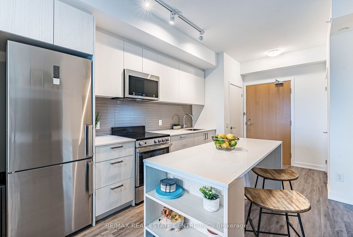Welcome to Scout Condos where style meets convenience! This bright and spacious 1 bedroom + den (large enough as a 2nd bedroom), 2 bathroom corner suite with parking, a cozy living room with walkout to a private balcony overlooking the courtyyard, and a smart open-concept layout. The modern kitchen is designed with quartz countertops, a centre island, backsplash and stainless steel appliances. The bedroom boasts a private ensuite, while the den offers great flexibility - idea for a home office or possibly a second bedroom. Enjoy peace of mind with 24-hour oncierge service and access to fantastic building amenities, including a fitness centre, multiple party rooms, games room, rooftop terrace with panoramic views, pet wash station and more. Public transit at your door with the future SmartTrack expansion nearby. Just a short stroll to Stockyards Village, grocery strores, schools, chic cafes and restaurants like Geladona, Wallace Expresso, Organic Garage, Tavora Foods, Earlscourt Park, Toronto Public Library, and the Junctionm Farmer's Market. Minutes to Corso Italia, High Park and major highways. Perfect for first-time buyers, downsizers or investors seeking comfort, lifestyle and location.