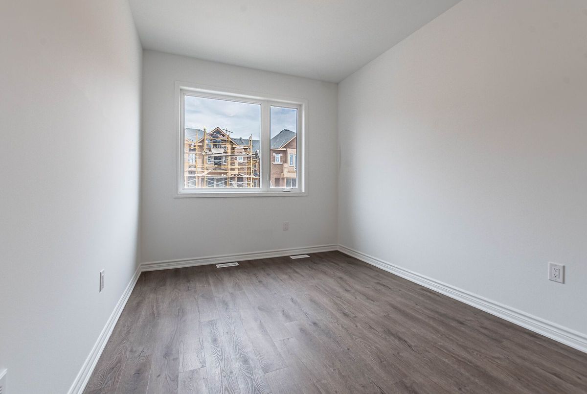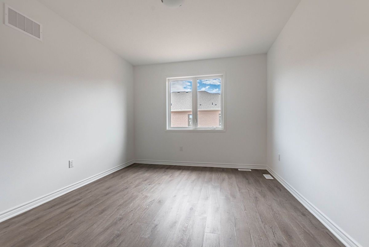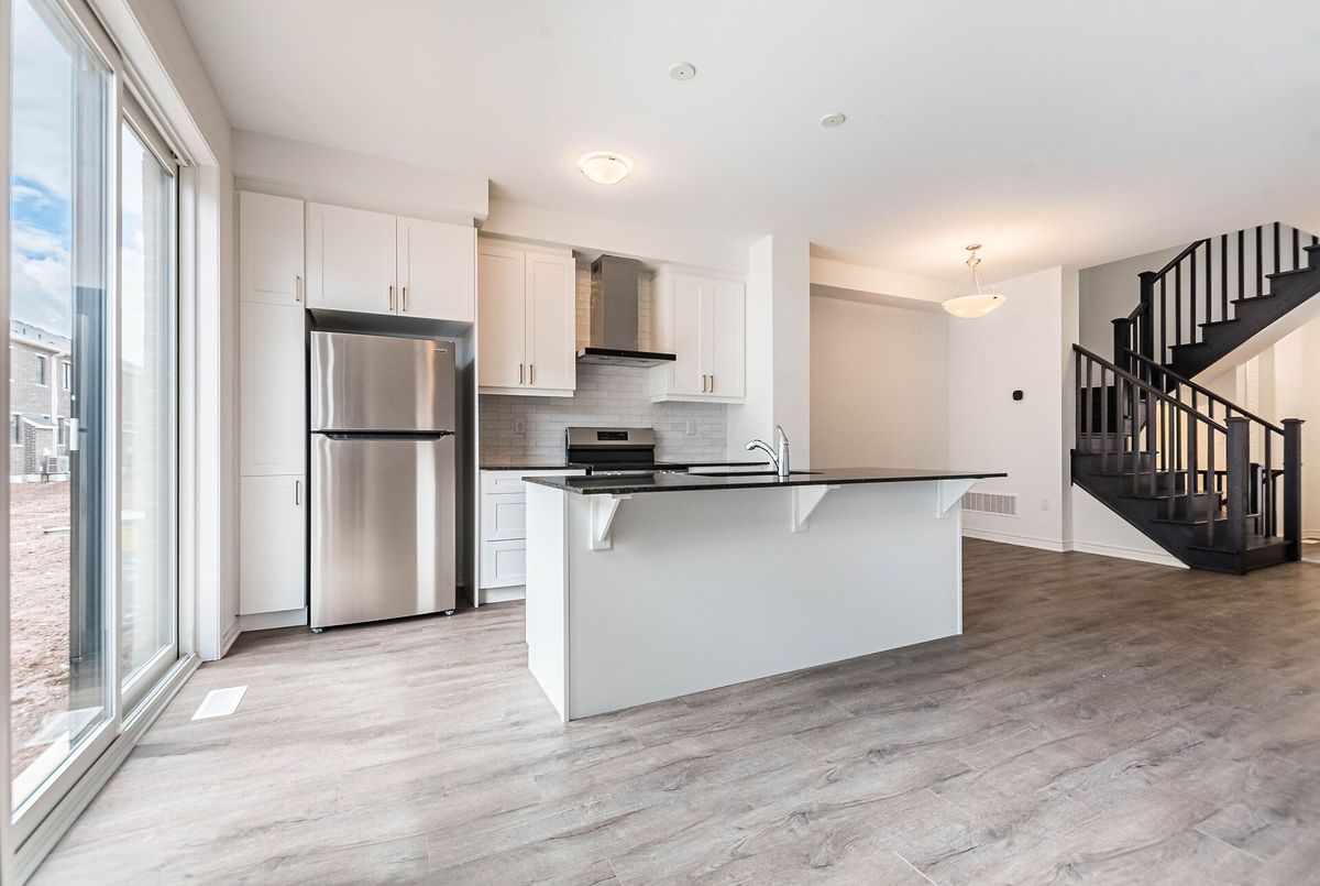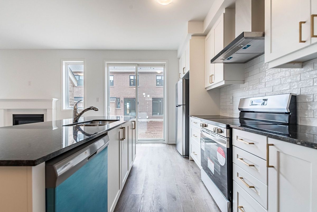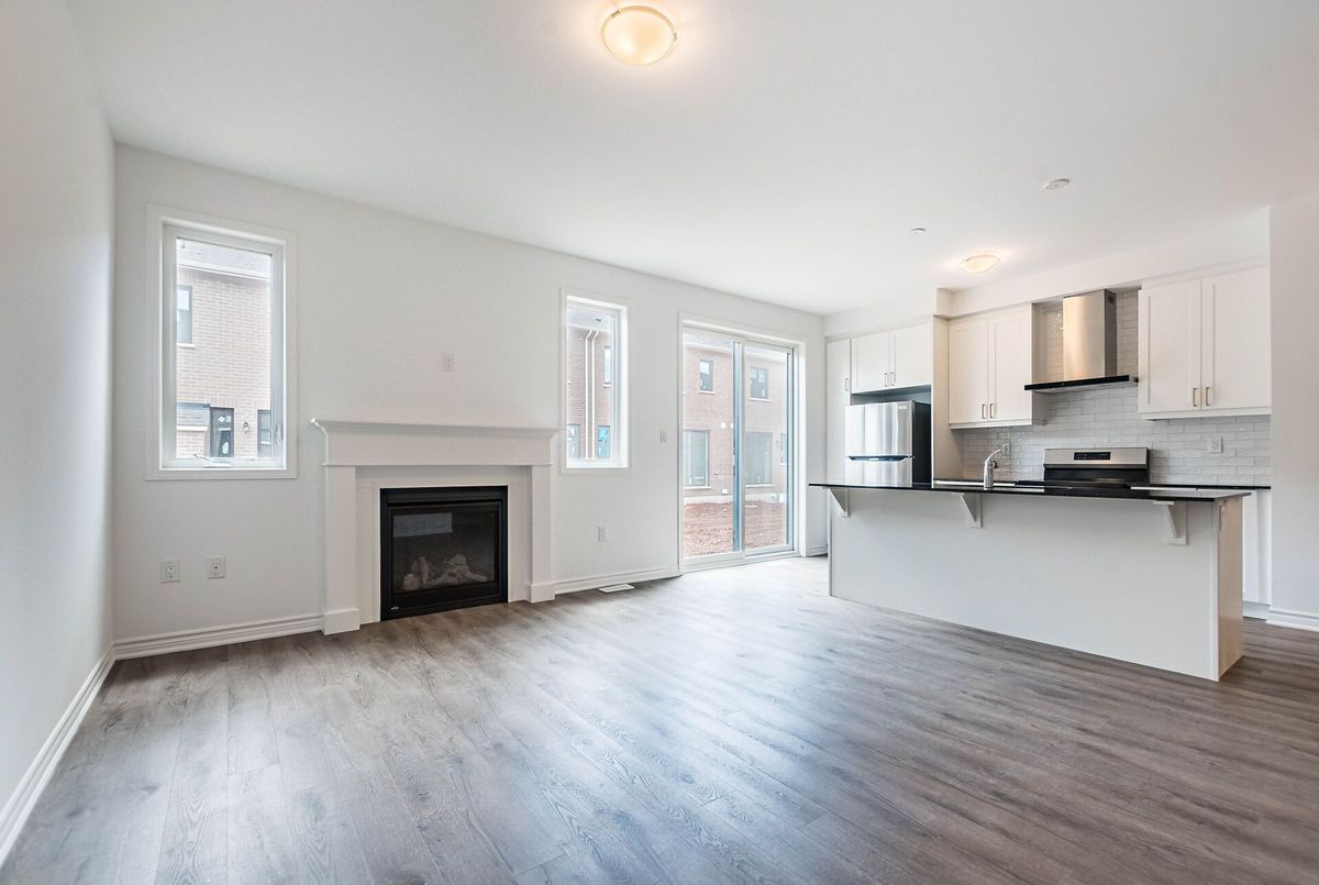 Welcome to this an year old New Townhouse having no side walk in front or side located in the highly sought-after neighbourhood of Milton! This stunning, carpet-free 3-bedroom home is loaded with upgrades and modern finishes, offering style, comfort, and convenience. Enjoy 9 ft smooth ceilings on both the main and second floors, creating a bright and airy ambiance throughout. The open-concept main level features a formal dining area overlooking a chef's dream kitchen complete with upgraded stone countertops, designer backsplash, modern cabinetry, and stainless steel appliances. The spacious great room is filled with natural light and includes a fireplace and TV-ready feature wall, perfect for relaxing or entertaining guests. Elegant laminate flooring flows throughout the home, with an oak-stained staircase leading to the upper level. The primary suite offers a large 4-piece ensuite and walk-in closet, while the second and third bedrooms are generously sized ideal for children, guests, or a home office. A convenient second-floor laundry room adds to the home's functionality. Additional highlights include direct access from the garage and a two-story layout that maximizes space and light. Located close to schools, parks, shopping, and highways, this home is perfect for families seeking a modern lifestyle in a prime Milton location. Tenant responsible for all utilities, snow removal, and lawn care. No smoking and no pets. Don't miss your chance to call this beautiful townhouse your new home