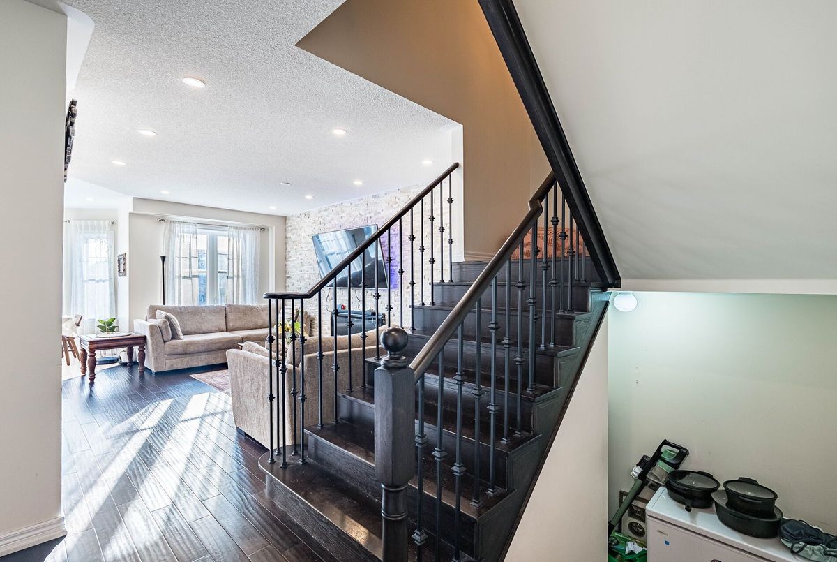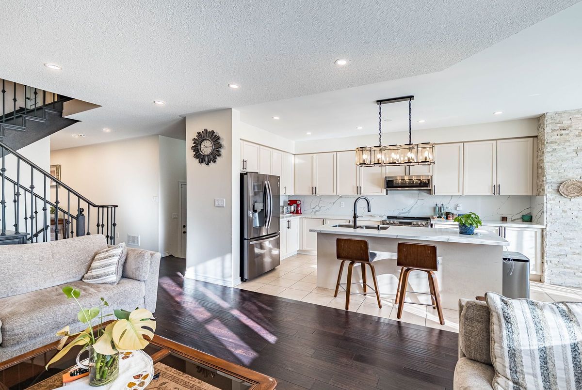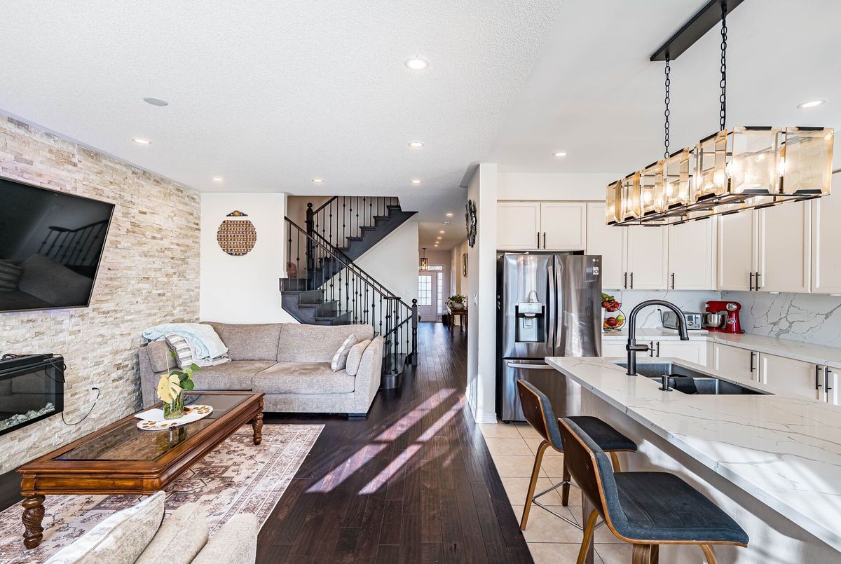 Exceptional Arista Homes-built residence featuring 3 bedrooms, 3 baths, and a functional den. The open-concept layout showcases an upgraded kitchen with extended cabinetry and stainless steel appliances, complemented by hand-scraped hardwood flooring and hardwood stairs with iron pickets. Freshly painted interiors create a bright and inviting atmosphere. The spacious primary suite includes a full ensuite for added comfort. Additional highlights include central vac, basement washroom rough-in, and a cold room. Situated within walking distance to Downtown Milton, parks, restaurants, and the Escarpment, this home offers a desirable blend of lifestyle, convenience, and long-term value.