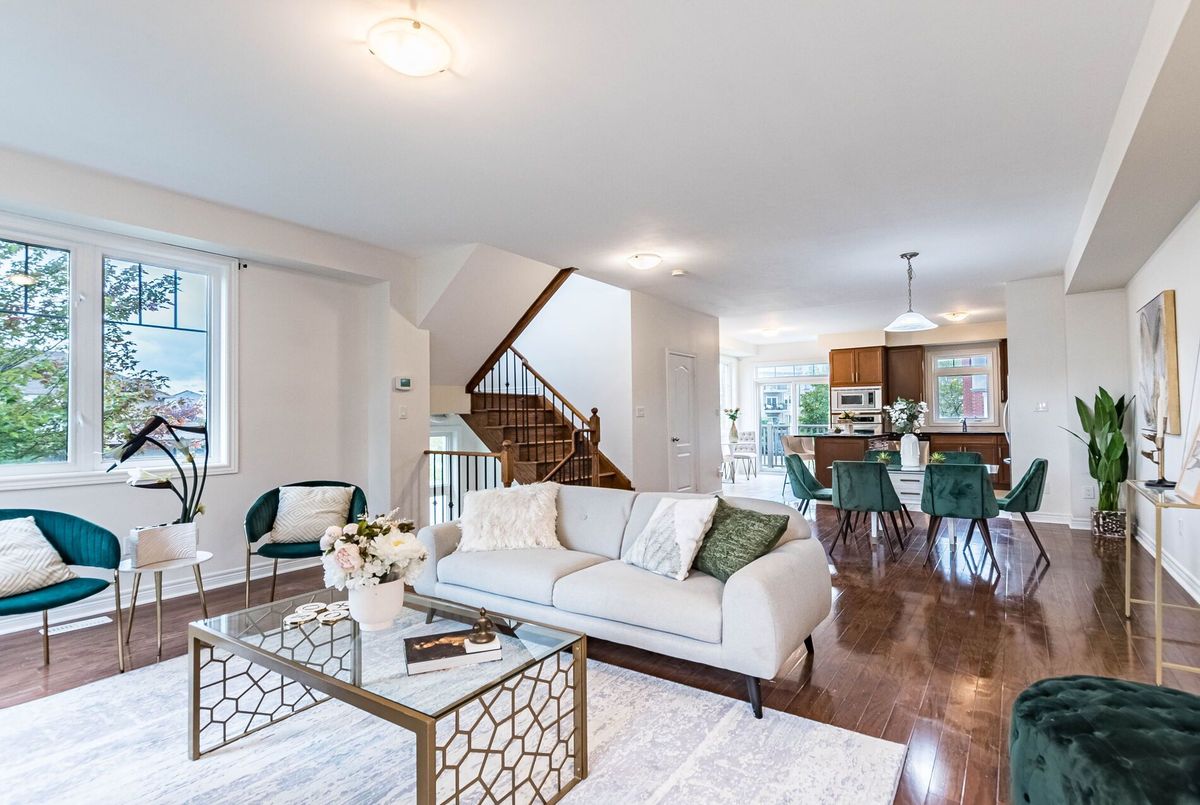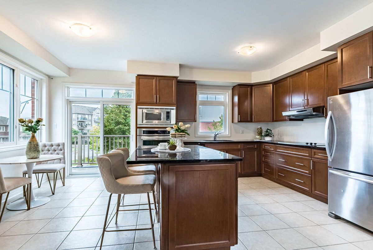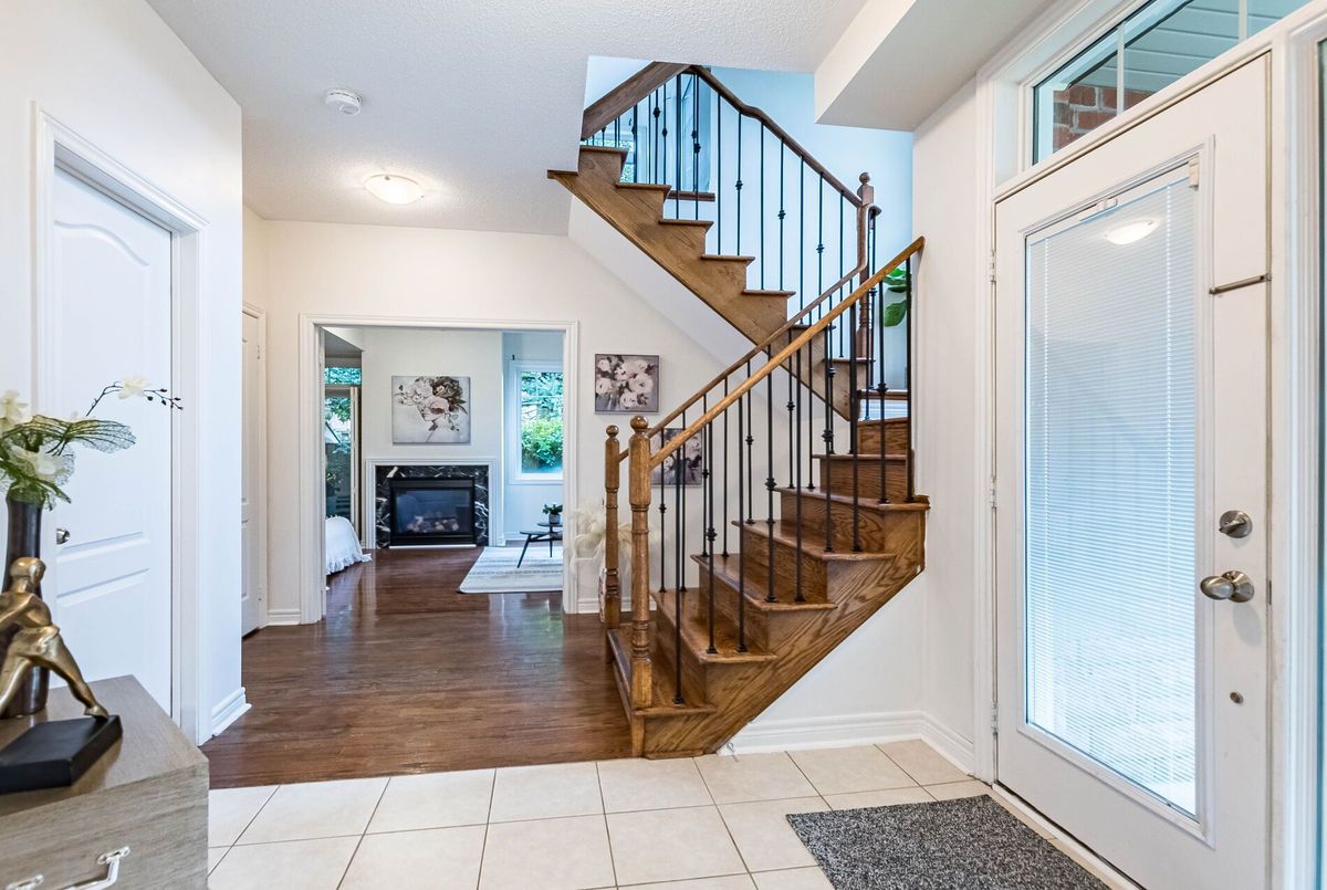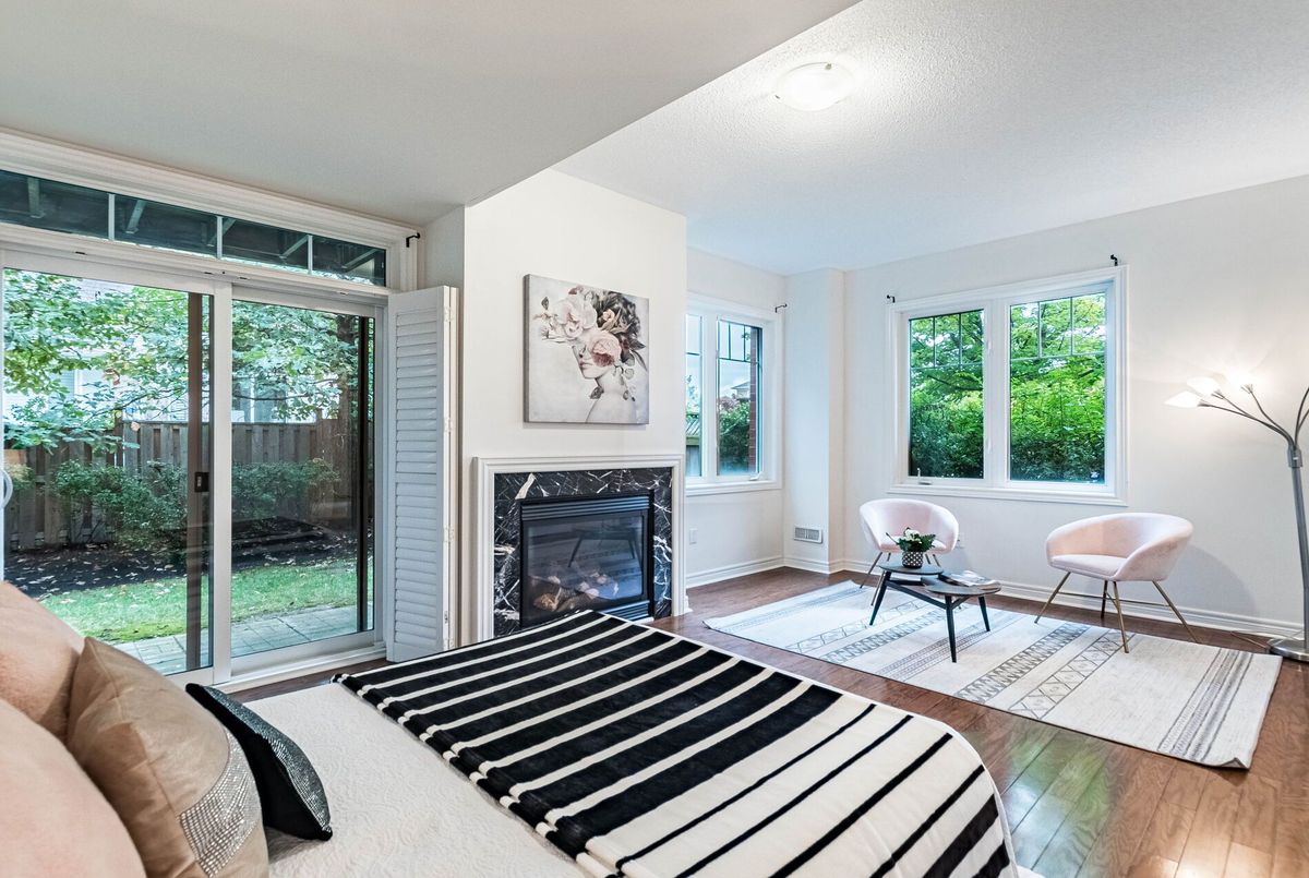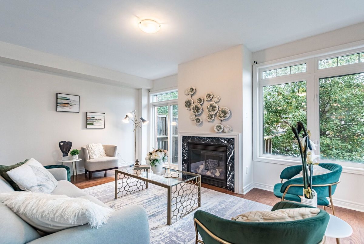 <<< Stunning, Large Executive Townhome, 2,115 sqft. END UNIT, Shows 10+++ >>> 3 +1 Bedrooms. The Main floor previously used as 4th bedroom currently use as an Office), 3 Full Bath + 1 Powder Rm. <<< Wrapped around with Large Windows. Lots of Natural Lights. Beautiful Modern Open Concept, 9 ft Ceiling, Inside Access from Garage >>>Highly Desirable Neighborhood, 3 Spacious Bedrooms with Large Windows <<< Ground Level features a 4 PC Bath, Large Office on main floor can be used as 4th BEDROOM/In-Law Suite, Walk-Out to Beautiful Garden >>>, Well Designed Living Rm/Dining Rm Features Fireplace for Enjoyment.<<< Modern Kitchen with Granite Countertop and Eat-In, Easily walk-out to Wrapped Around Large Balcony for Additional Outdoor Space to Enjoy. <<< Very Convenient Location! Close to Park, Groceries, Shops, Library, Public Transport, Majoy Hwys & Shopping. Must See to Appreciate.