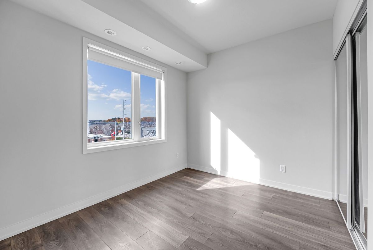 Welcome to modern living in the heart of prestigious Bram West! This stunning 1 Bedroom + 1 Den condo is only 2 years new and located on the top floor, offering unobstructed views of Mississauga Road and an abundance of natural light throughout. Step inside this sun-filled, super bright, and spacious suite featuring 9 ft ceilings, fresh neutral paint, and no carpet for a clean, modern aesthetic. The open-concept layout flows seamlessly from the living area to the designer kitchen, complete with stainless steel appliances, quartz countertops, and sleek cabinetry-perfect for both everyday living and entertaining.The large primary bedroom offers generous closet space, while the closed-off den provides the ideal option for a home office or second bedroom. Enjoy the convenience of in-suite laundry and an owned underground parking spot located close to the elevator for easy access.This beautifully maintained condo is perfect for first-time buyers, professionals, or investors looking for a turnkey property in one of Brampton's most sought-after communities. Located minutes from Highways 401 & 407, top-rated schools, shopping, restaurants, parks, banks, and all major amenities-this prime address offers the best of comfort and convenience. Experience modern elegance and effortless living in Bram West, where style, location, and value meet. Don't miss the opportunity to call this bright, modern condo your next home!