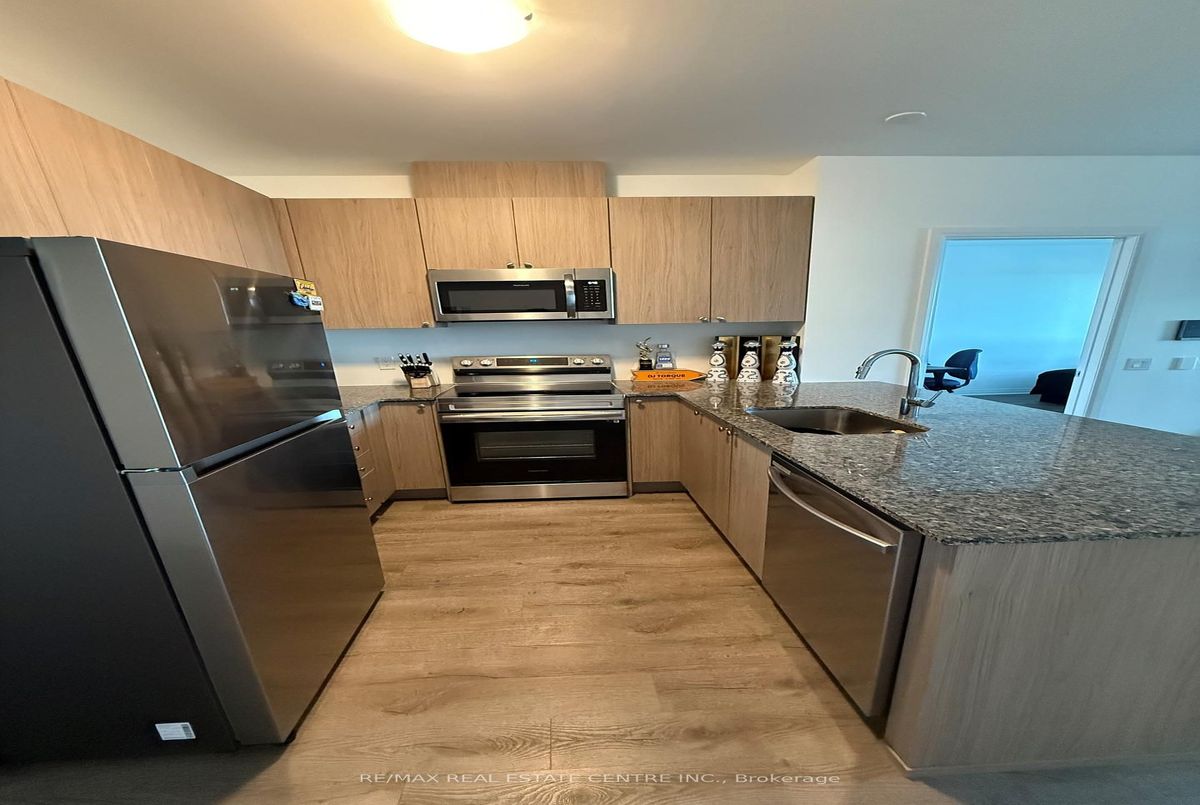 App 1000 Sq.ft plus almost 200 sq.ft balcony, one of the best layout in the building, south exposure, enjoy the view of Niagara escarpment siting in big balcony with a cup of coffee, just an year old unit, family size living room and kitchen with upgraded granite countertops, island built in appliances, modern cabinets, good size primary bedrooms offering walk in closet and ensuite bath big windows in both rooms. Building amenities include; Fitness studio, lounge, rooftop terrace, parcel room automate parcel delivery lockers & 24h concierge. Great location near parks, grocery, Niagara escarpment, Mattamy National Cycling Centre and Milton Hospital. Very close future Wilfred Laurier University and Cosestoga College campuses in the new Milton Education Village.