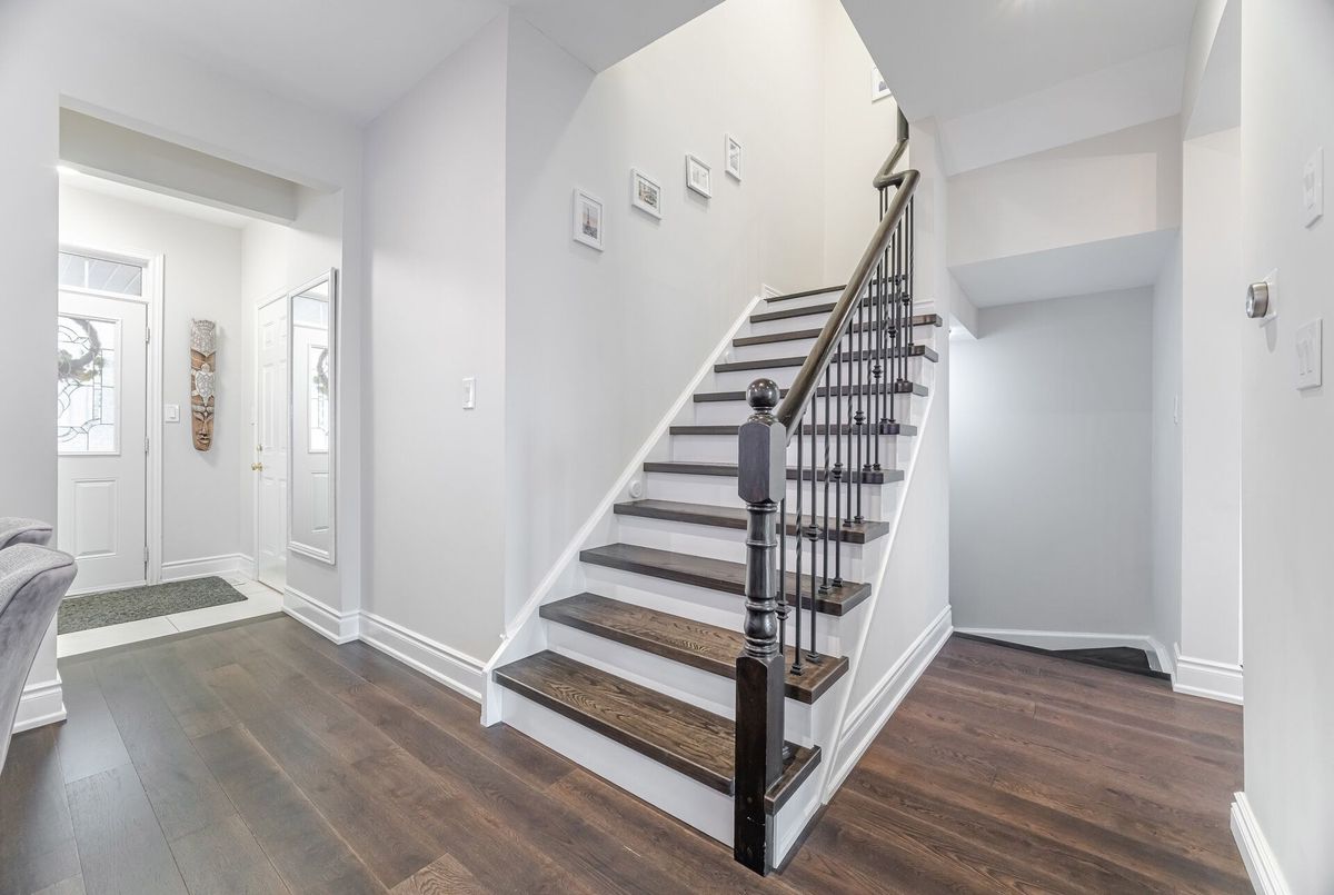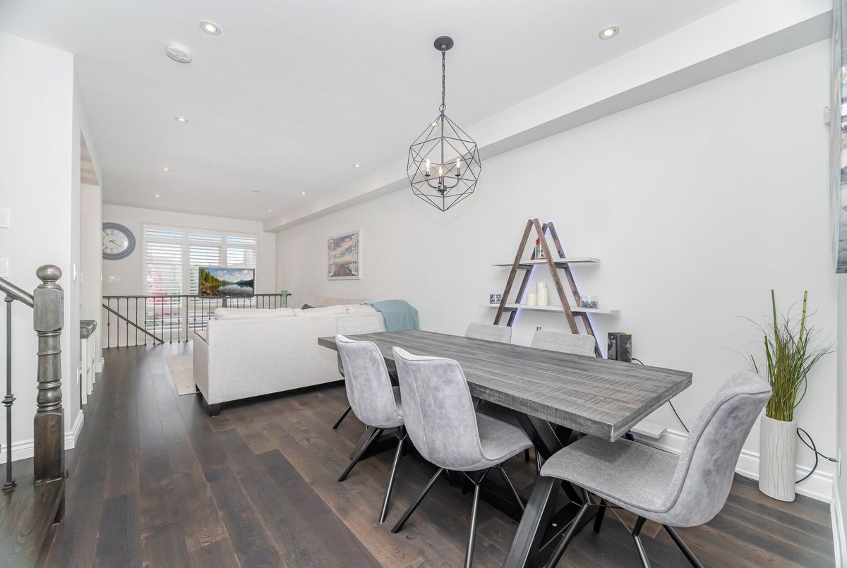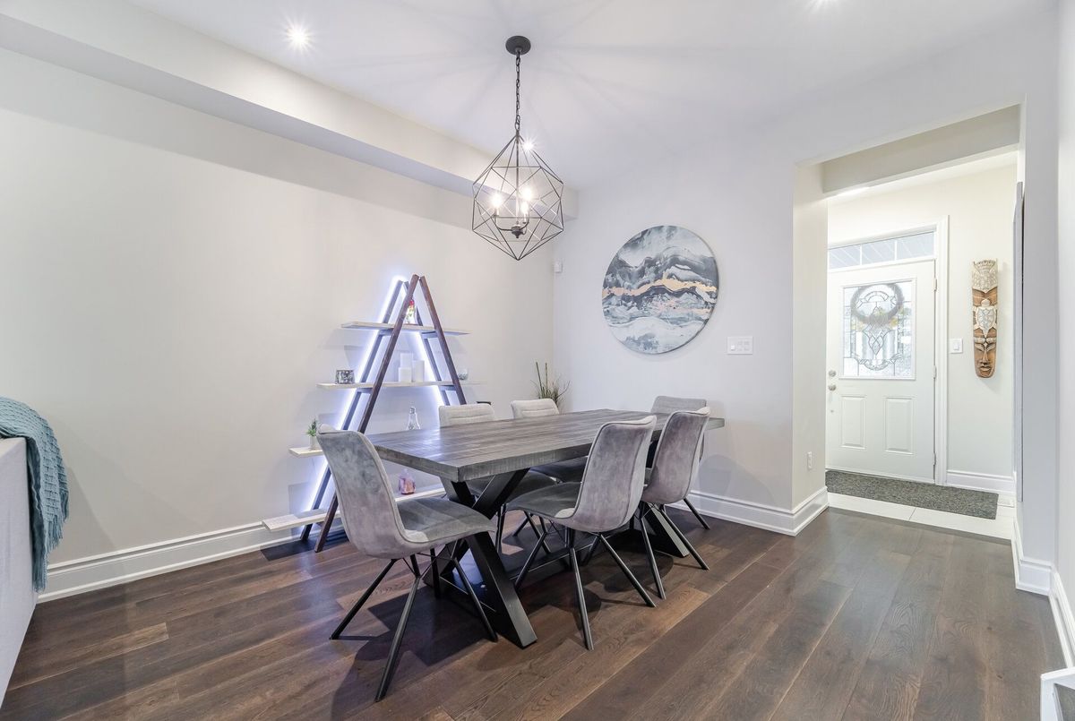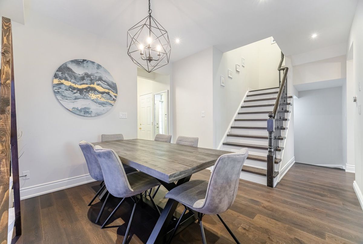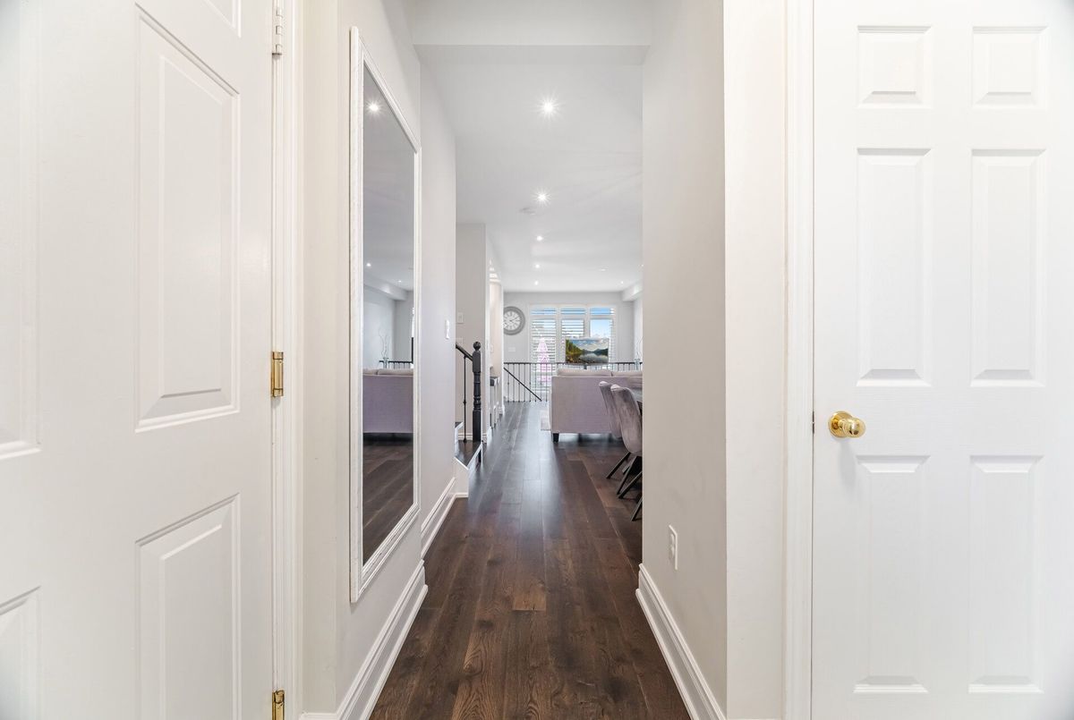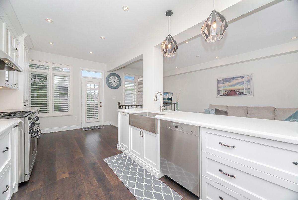 One-of-a-kind designer showpiece in prestigious Bronte Creek! This exceptional executive townhouse redefines luxury living, thoughtfully renovated from top to bottom with high-end, custom finishes that set it apart from the rest. A bright and welcoming foyer with direct garage access offers a stylish and functional entryway, setting the tone for the elegant interior. Enjoy carpet-free living with engineered hardwood flooring throughout the main and second floors as well as the 9ft high ceilings, paired with an open-concept layout that's perfect for both everyday living and entertaining. The chef-inspired kitchen features Caesarstone quartz countertops, solid wood cabinetry, and high-end stainless steel appliances all designed with a sharp eye for quality and style. Upstairs, the solid wood staircase leads to a serene primary suite complete with a walk-in closet and a spa-like ensuite boasting a standalone tub, frameless glass shower, Hansgrohe shower head, and Toto toilet. All bathrooms throughout the home have been tastefully updated to maintain a cohesive, upscale look. Two additional sun-filled spacious bedrooms offer comfort and versatility, convenient 2nd floor laundry room, while the fully finished basement expands your living space with a fourth bedroom, a modern full bathroom, a cozy rec room, plenty of storage space and a dedicated office nook ideal for working from home. Step outside to your own private, professionally landscaped backyard oasis perfect for entertaining or unwinding at the end of the day. Extended driveway fits 2 vehicles. Located in the highly sought-after Bronte Creek community, this rare gem is surrounded by nature, scenic trails, top-rated schools, and every amenity you need.