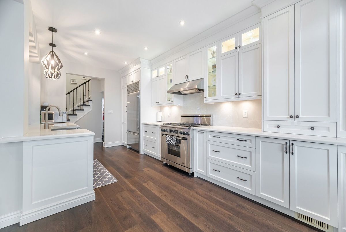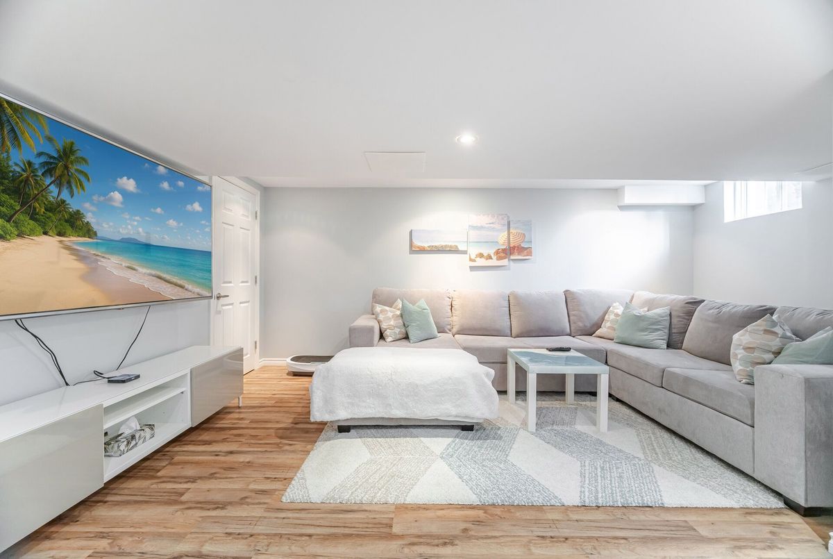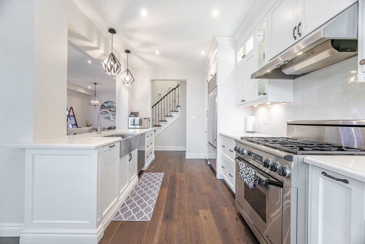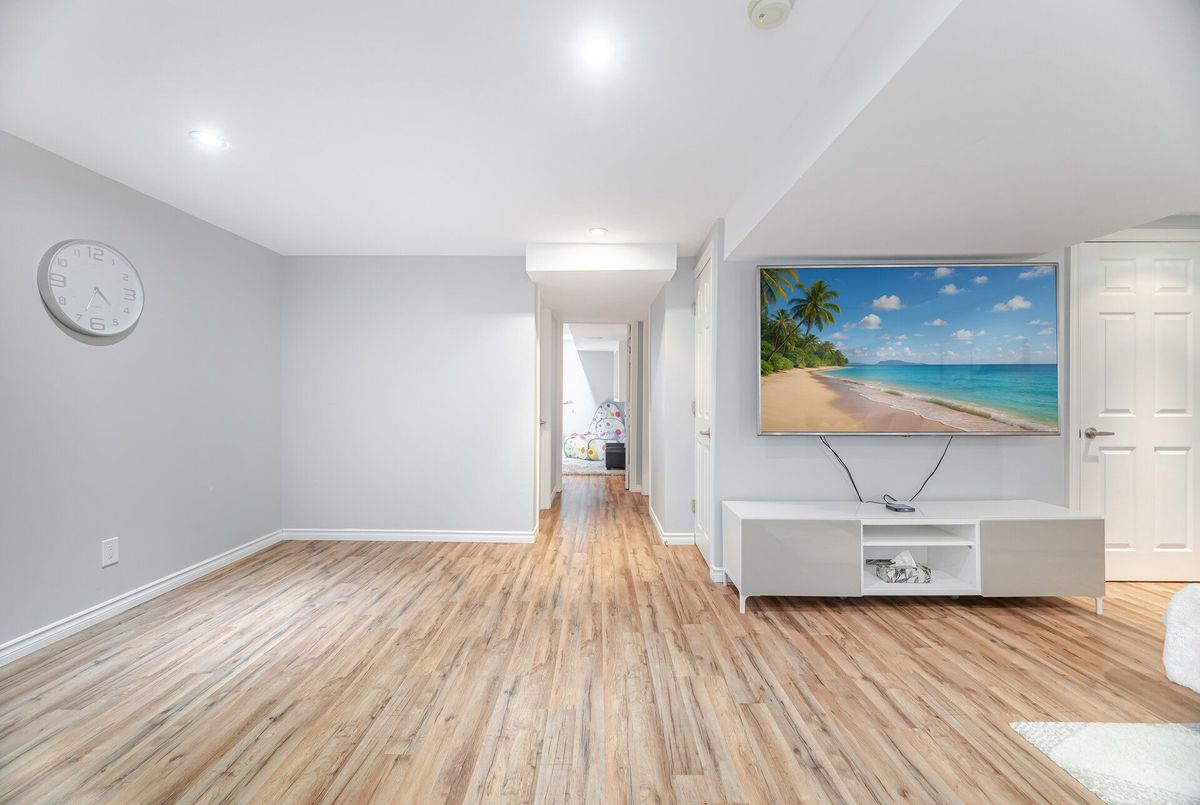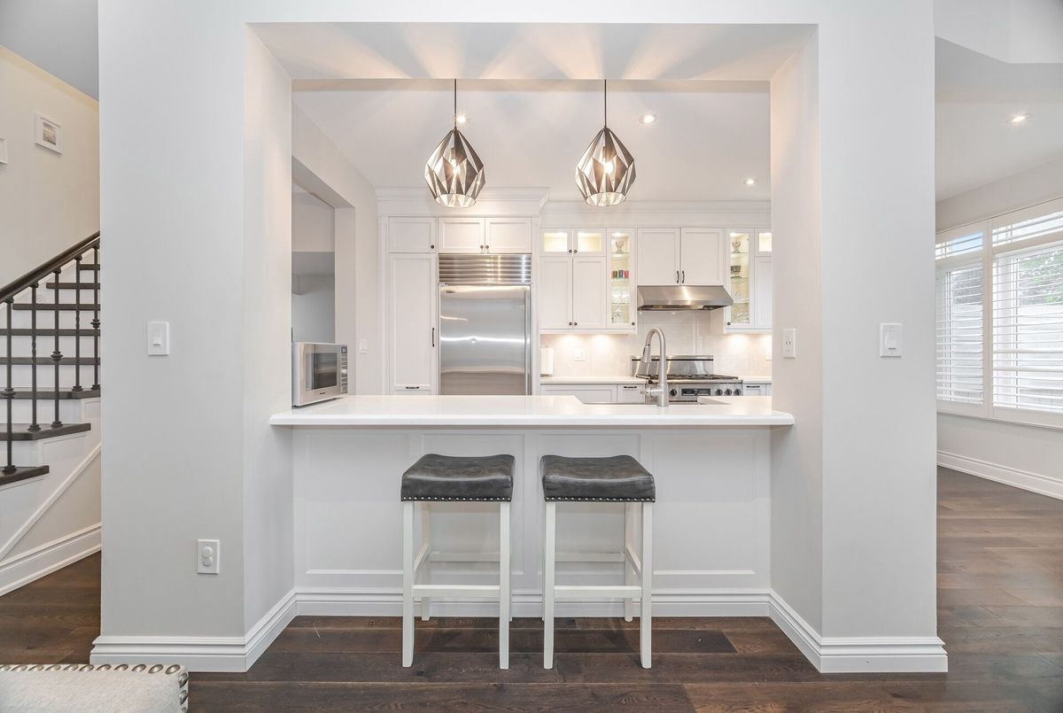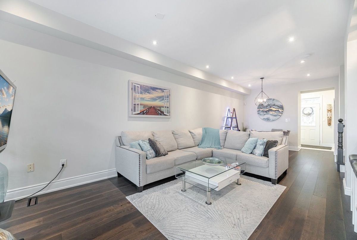 One-of-a-kind designer showpiece in prestigious Bronte Creek! This exceptional executive townhouse redefines luxury living, thoughtfully renovated from top to bottom with high-end, custom finishes that set it apart from the rest. A bright and welcoming foyer with direct garage access offers a stylish and functional entryway, setting the tone for the elegant interior. Enjoy carpet-free living with engineered hardwood flooring throughout the main and second floors as well as the 9ft high ceilings, paired with an open-concept layout that's perfect for both everyday living and entertaining. The chef-inspired kitchen features Caesarstone quartz countertops, solid wood cabinetry, and high-end stainless steel appliances all designed with a sharp eye for quality and style. Upstairs, the solid wood staircase leads to a serene primary suite complete with a walk-in closet and a spa-like ensuite boasting a standalone tub, frameless glass shower, Hansgrohe shower head, and Toto toilet. All bathrooms throughout the home have been tastefully updated to maintain a cohesive, upscale look. Two additional sun-filled spacious bedrooms offer comfort and versatility, convenient 2nd floor laundry room, while the fully finished basement expands your living space with a fourth bedroom, a modern full bathroom, a cozy rec room, plenty of storage space and a dedicated office nook ideal for working from home. Step outside to your own private, professionally landscaped backyard oasis perfect for entertaining or unwinding at the end of the day. Extended driveway fits 2 vehicles. Located in the highly sought-after Bronte Creek community, this rare gem is surrounded by nature, scenic trails, top-rated schools, and every amenity you need.