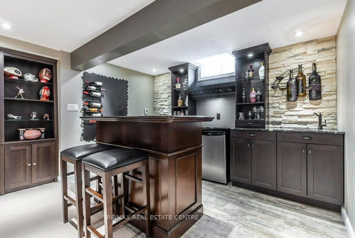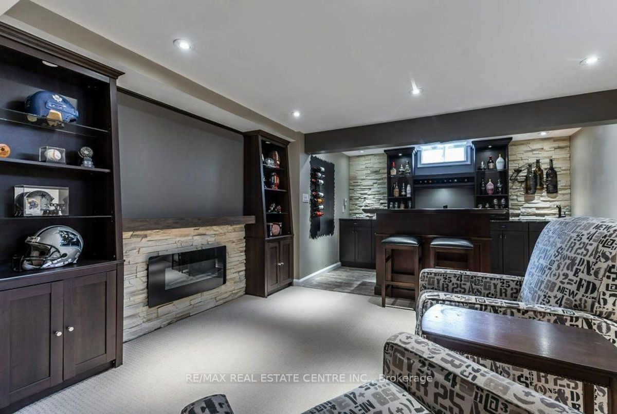 Beautiful three bedroom, three bathroom, 1890 square foot semi-detached plus a finished basement in a highly desired location. Inviting entranceway, bright with ceramic floor leading to a spacious living room. Quartz counters with inlaid double sink, breakfast bar, ceramic backsplash and floor opens to a large dining room with natural gas fireplace with door to the interlock patio and private, fenced backyard. The main level level has access to the garage. A few steps down to a convenient powder leading to a fabulous recreation room with luxurious bar with granite counters, stone wall feature, copper sink a heated floor and built in shelving. Watch the big game in front of the cozy electric fireplace. The upper level offers a sitting room/office that is open at the top of the stairs with a double door to a welcoming balcony for that morning coffee or evening glass. Three bedrooms, the primary bedroom with a four piece ensuite with soaker tub and separate shower. A four piece main bath and a laundry room complete this level. Notable features: shingles 2015, columns 2020, furnace 2020, central air 2023, water heater owned 2018, basement finishing 2014, workshop/utility room, storage room and a natural gas barbeque hookup. You'll the the convenience of being close to schools, shopping, parks and transit.